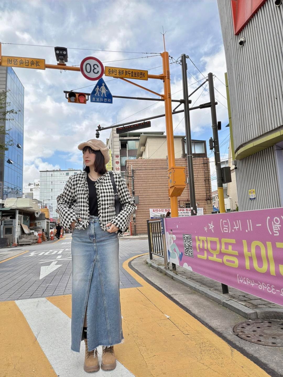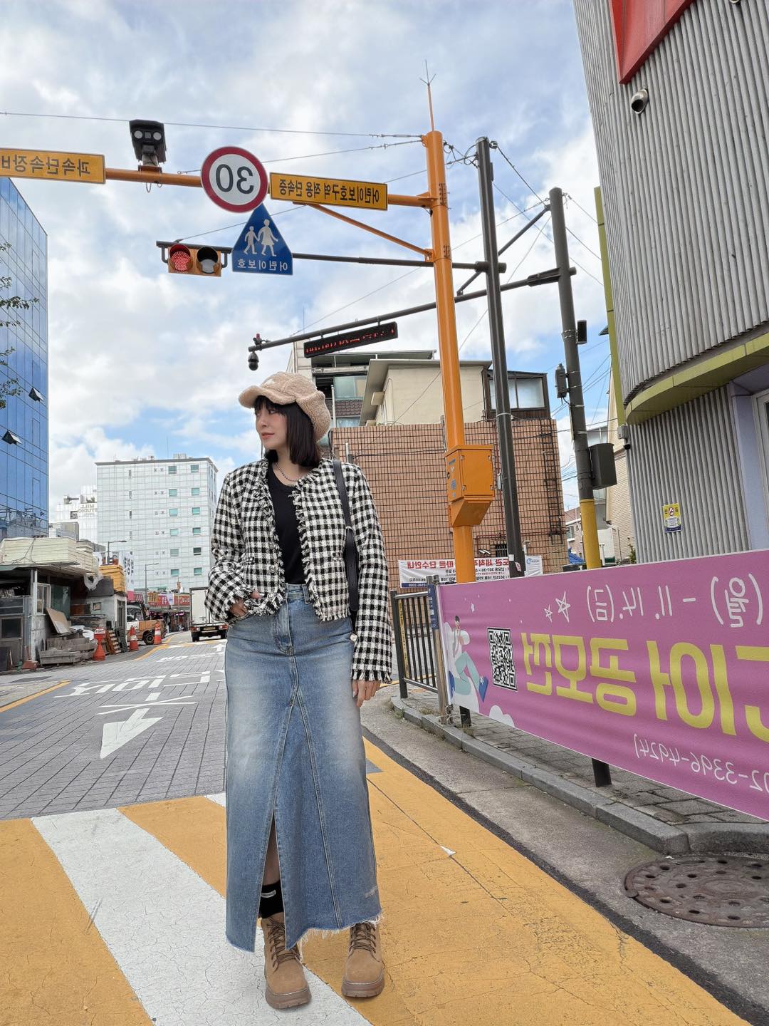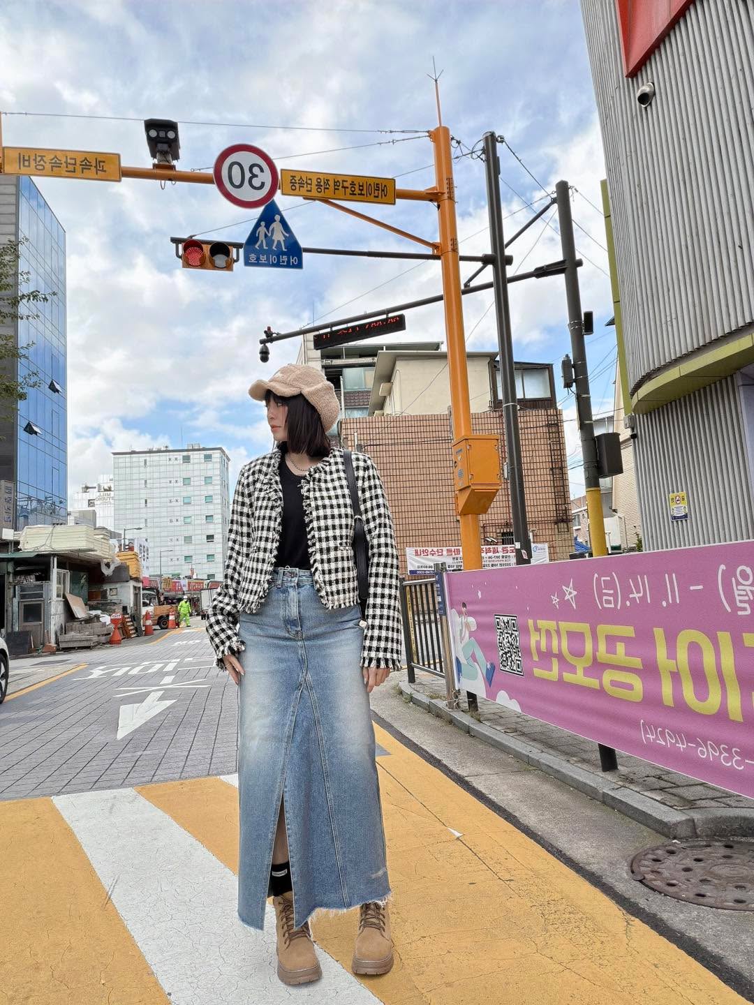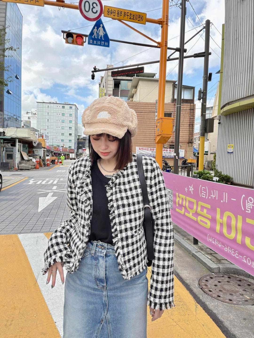 想帥一點就像你這樣搭牛仔裙+毛帽,