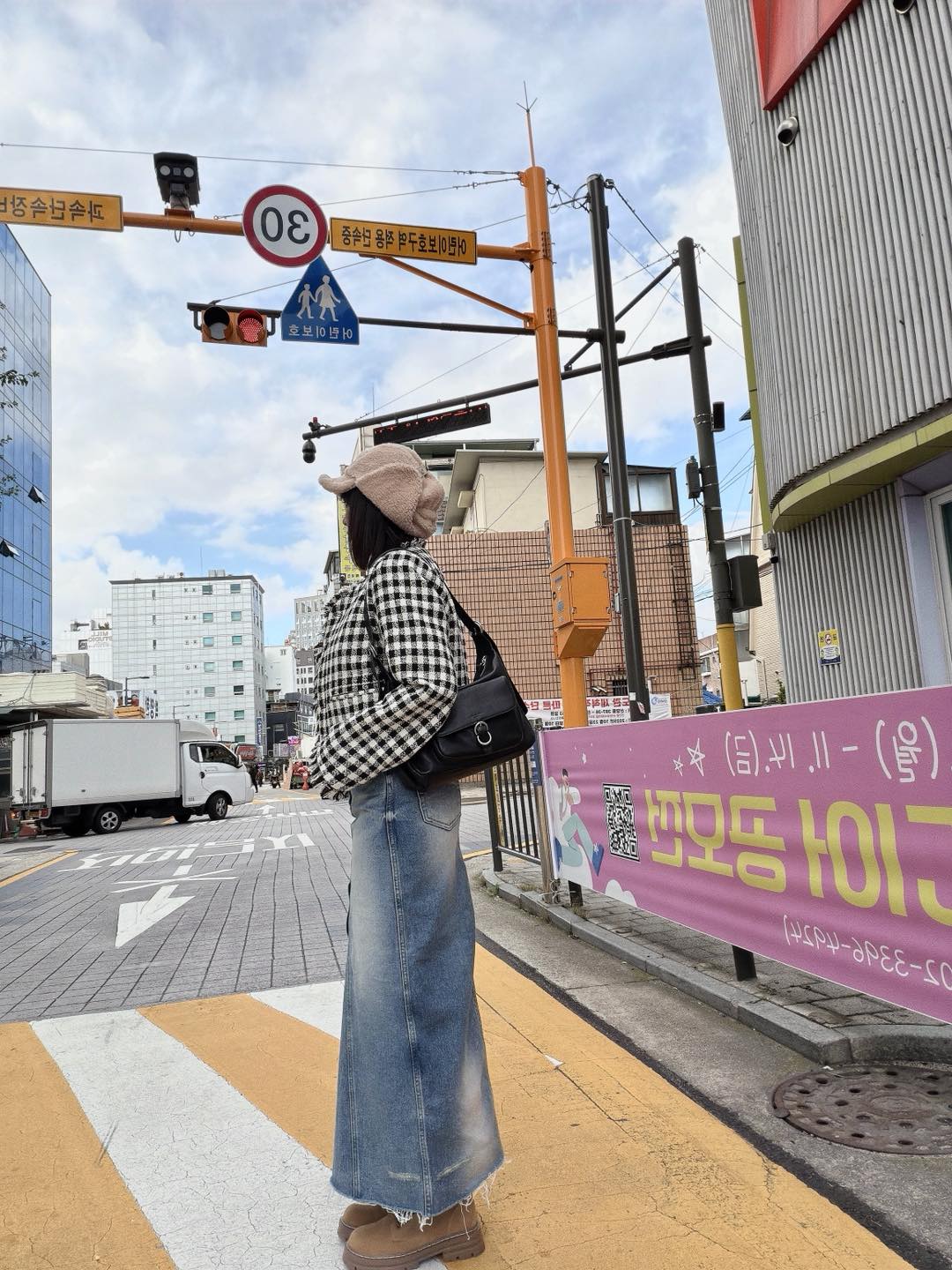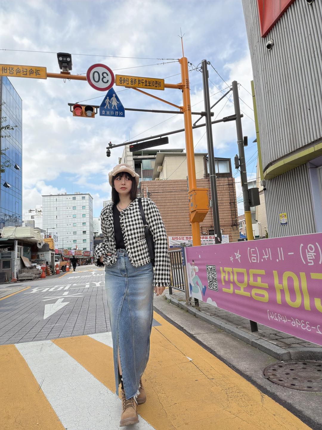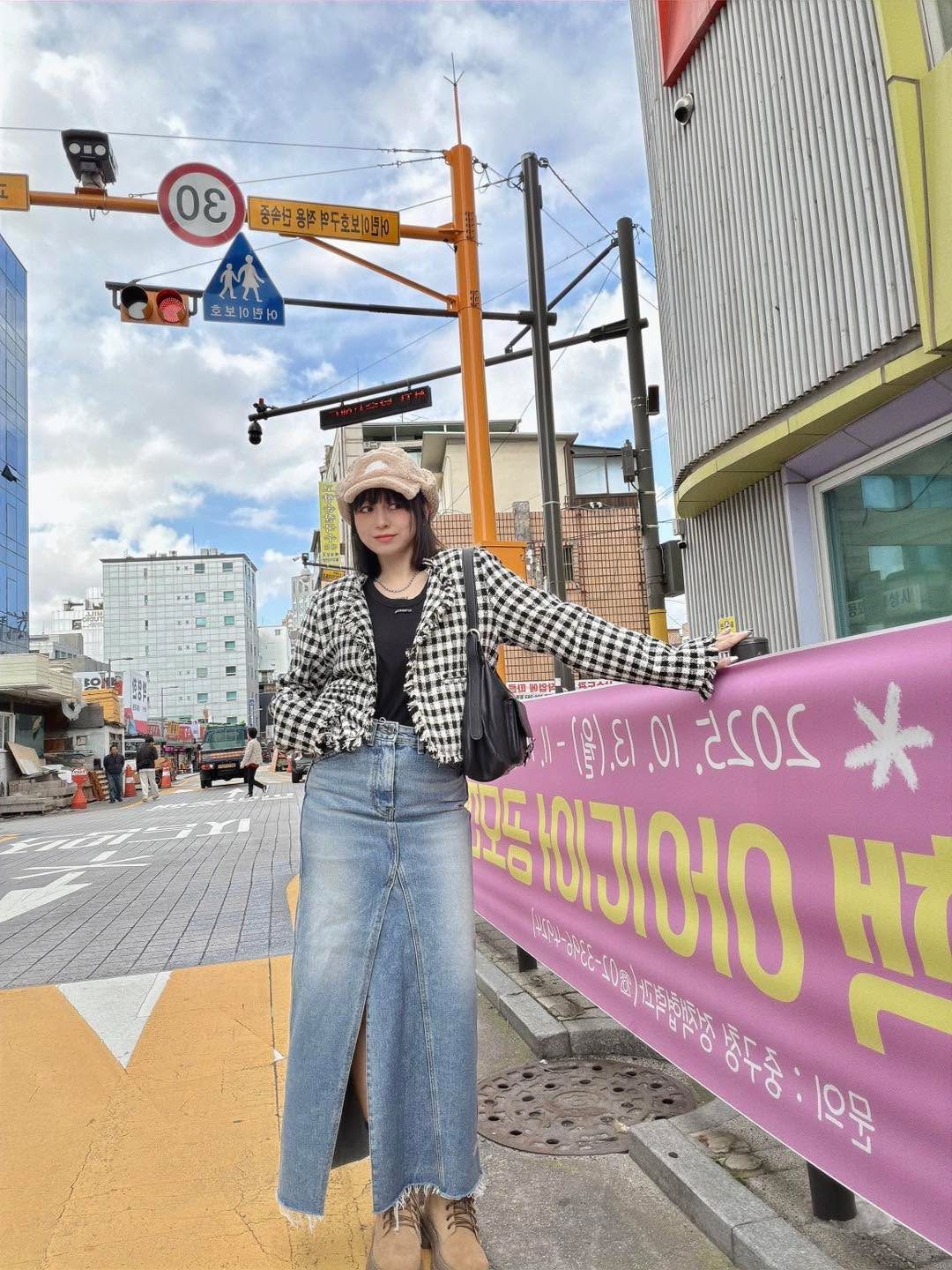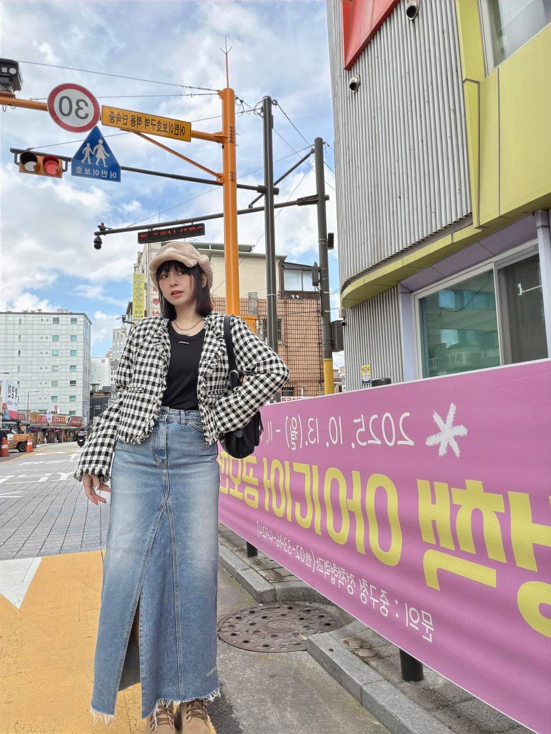 想帥一點就像你這樣搭牛仔裙+毛帽,