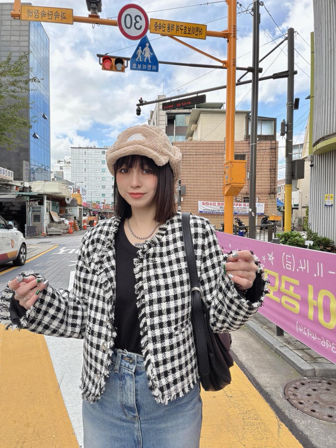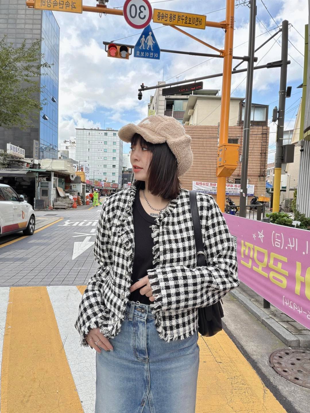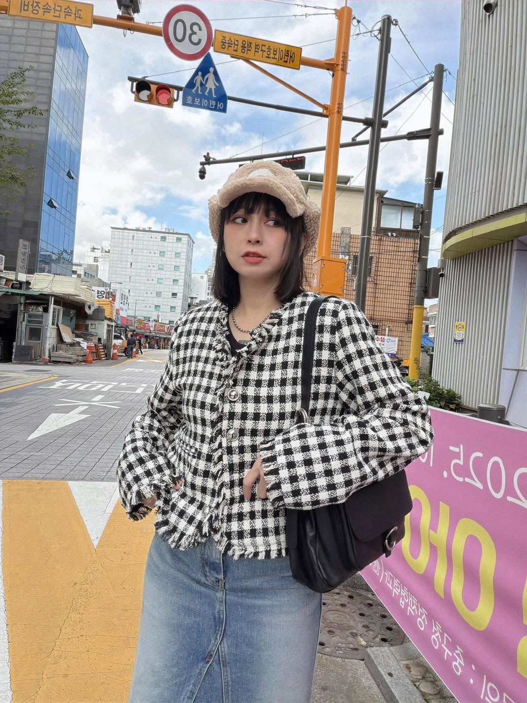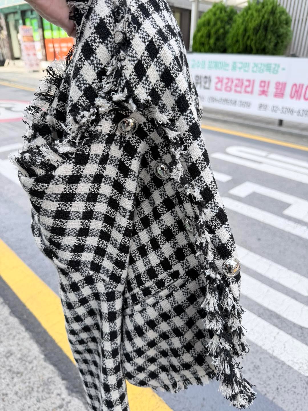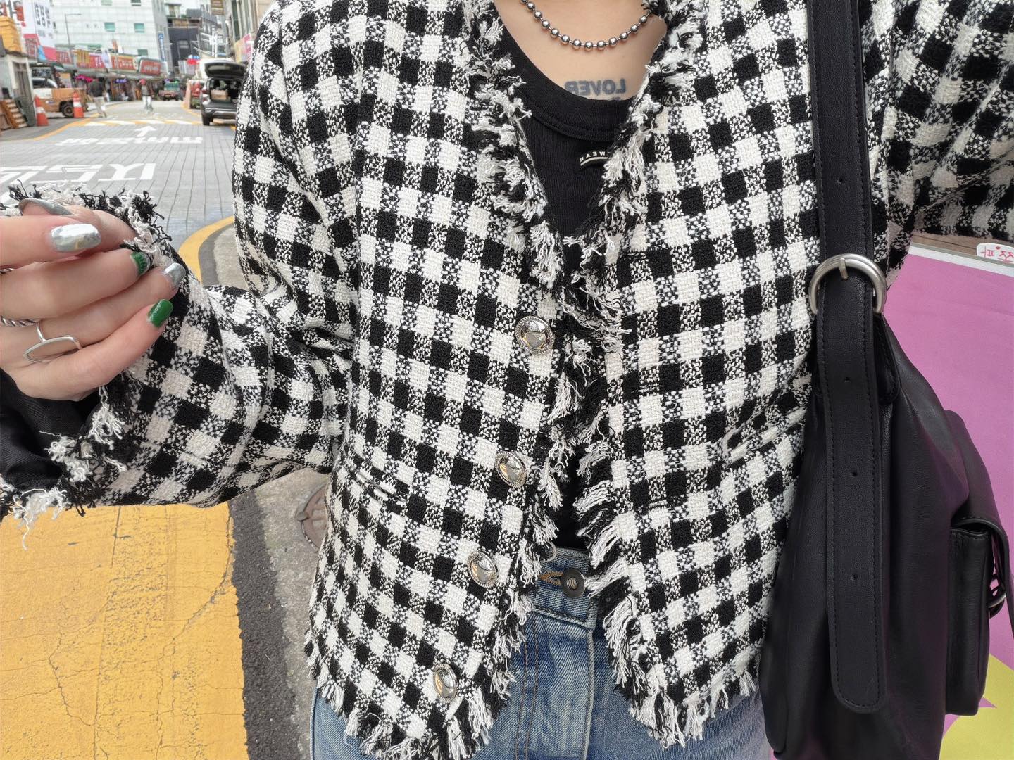 而在這件在領口、袖口、下襬都做了毛邊設計,讓整體更有街頭混法式的高級感。