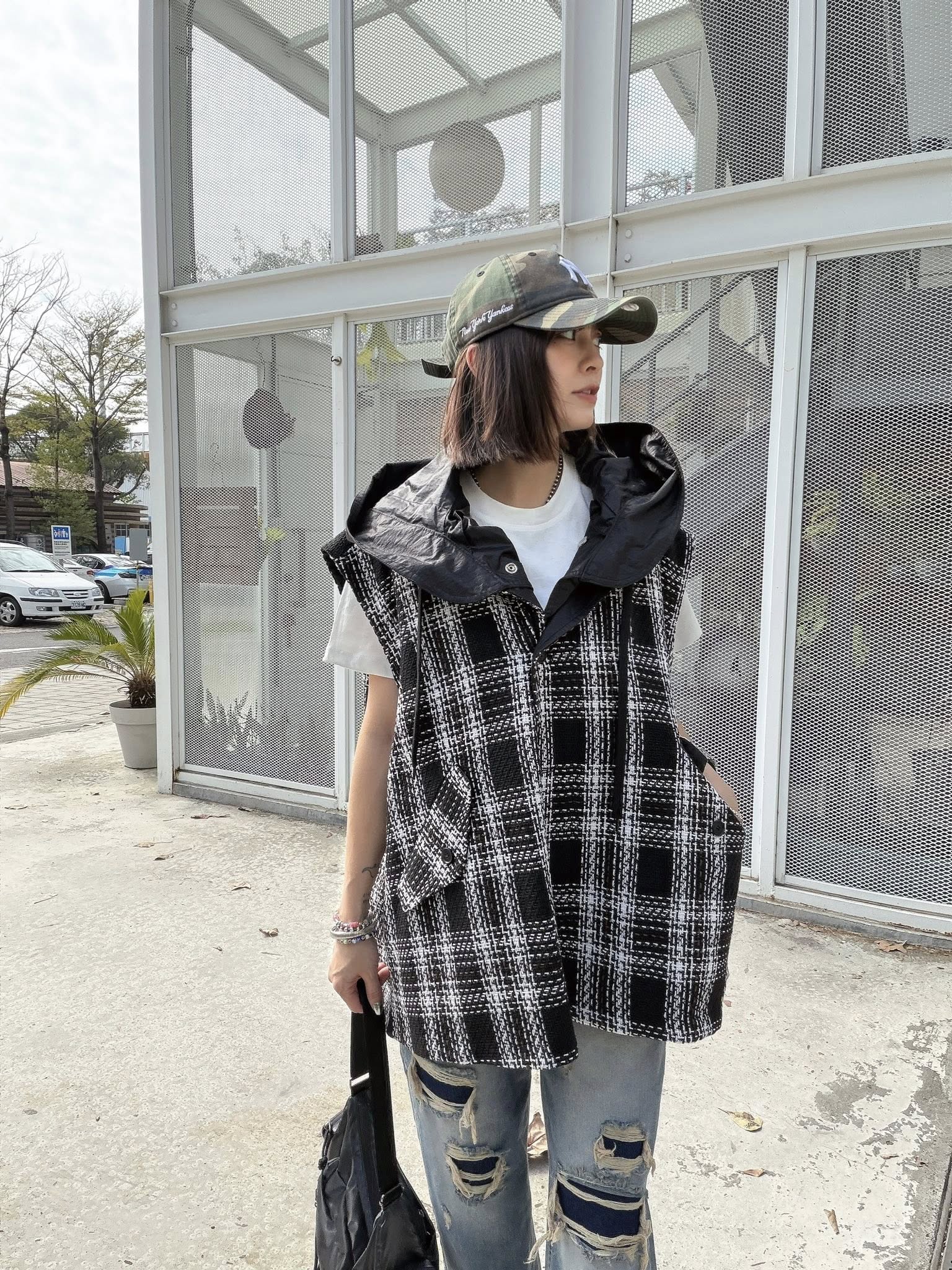- 韓國連線 BK83 2面穿/毛呢格紋 VS酷黑連帽可拆無袖外套 超強設計 #版型超美 買起來!真的 #兩面穿 #第一眼立刻愛上 NT. 2930