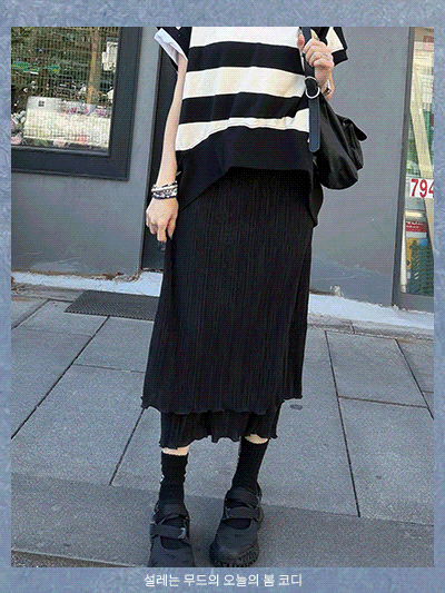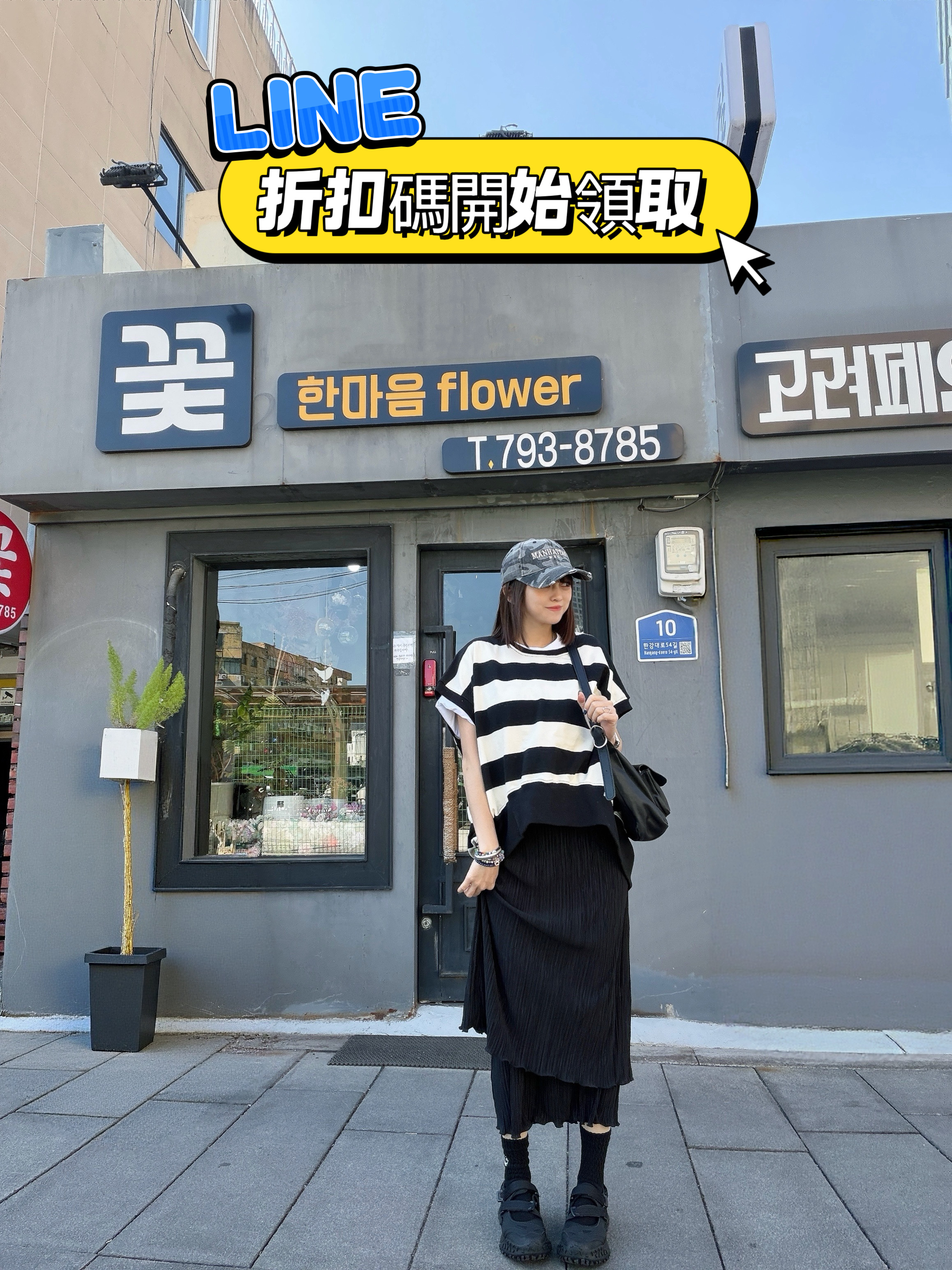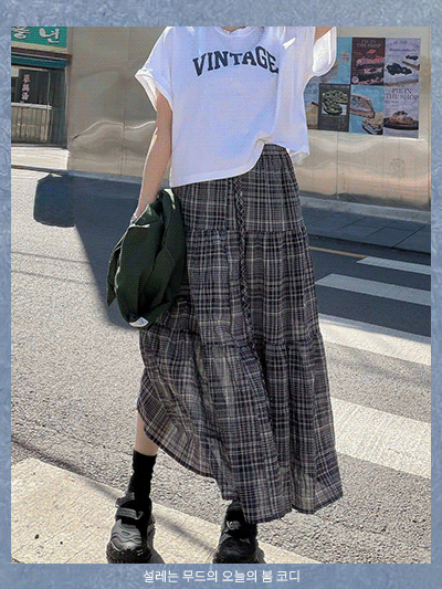 韓國連線 BL124 超輕薄細紋格顯瘦不澎長裙 NT. 980NT$ 1060 -