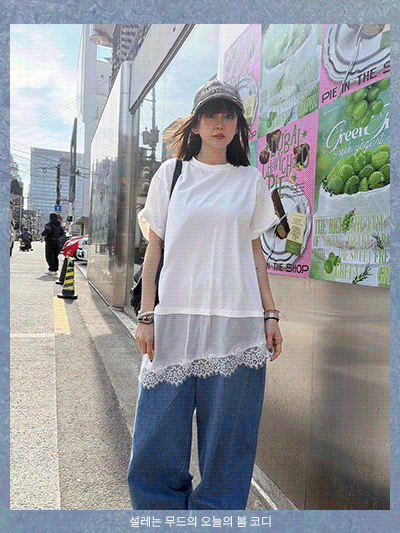韓國連線 BL118 (質感布料)下斜拼蕾絲開叉長T NT. 799NT$ 879 -