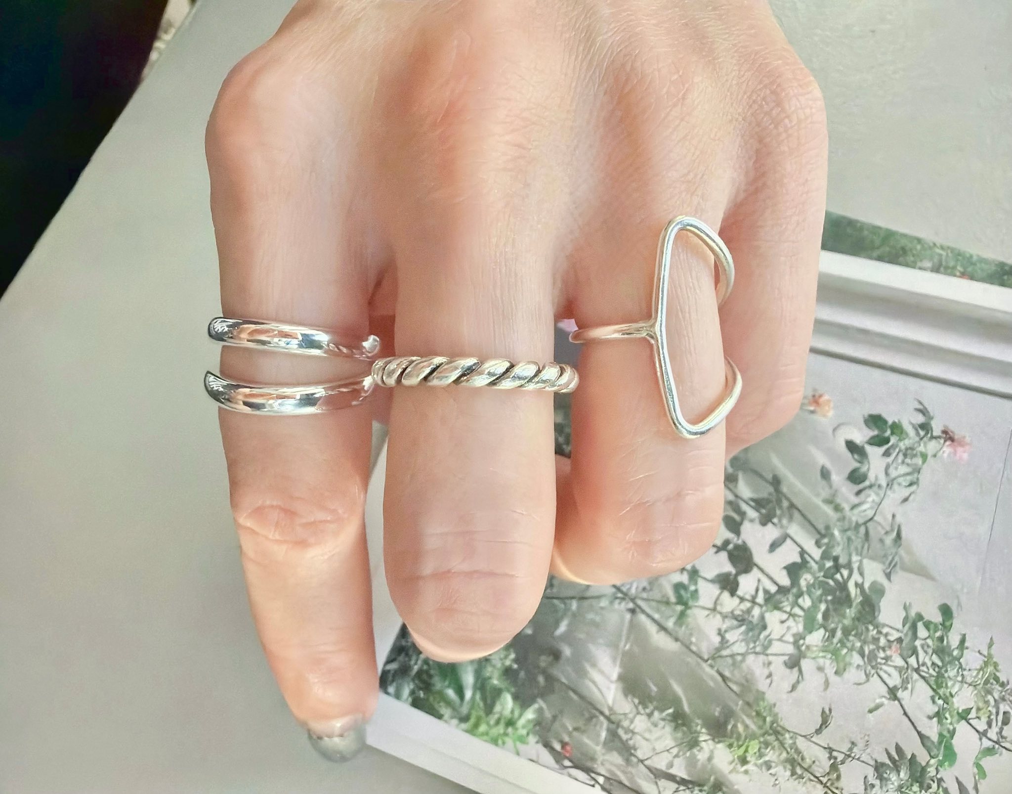 韓國連線 BJ08 雙環造型925純銀可調戒指