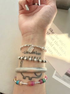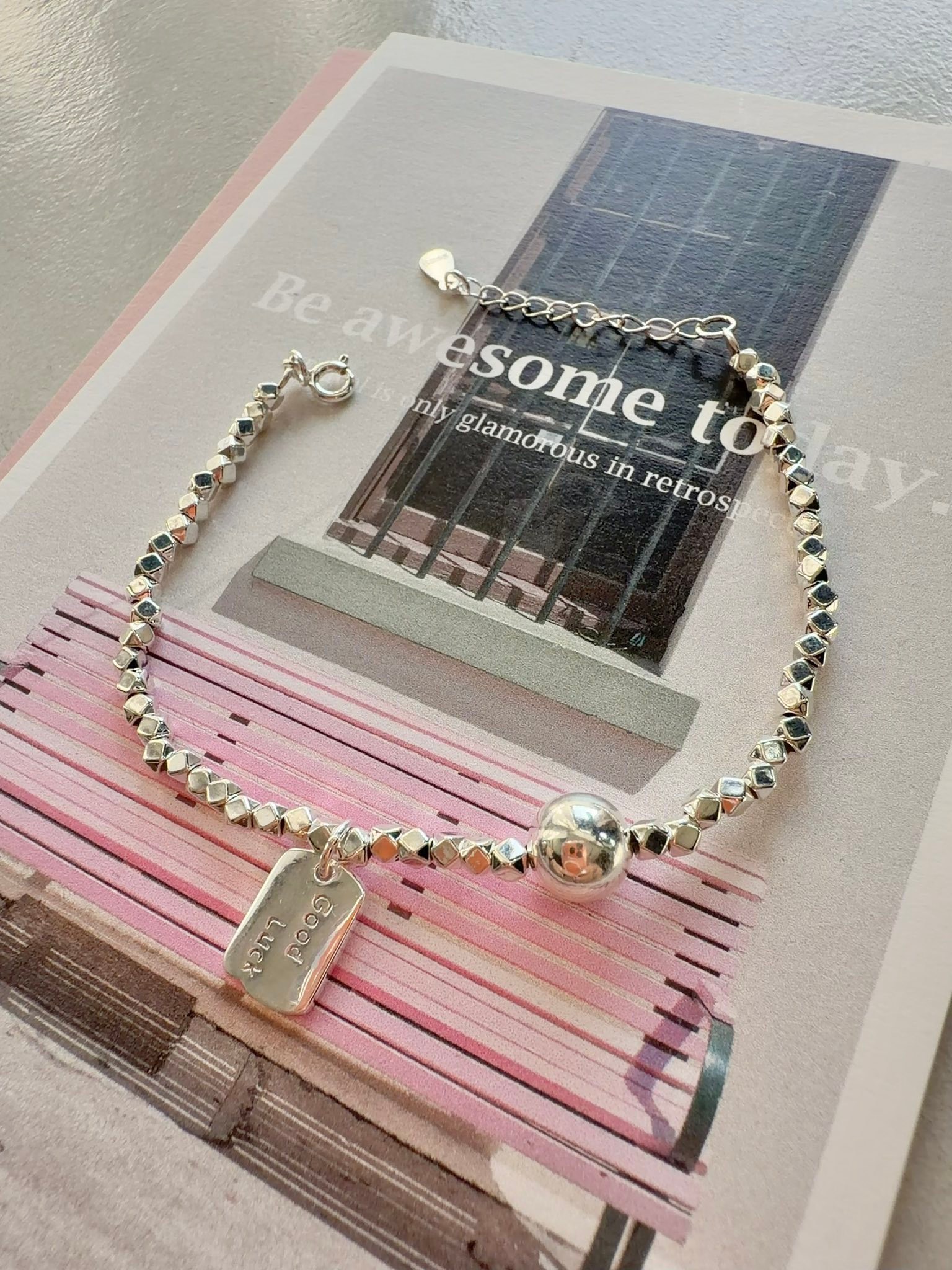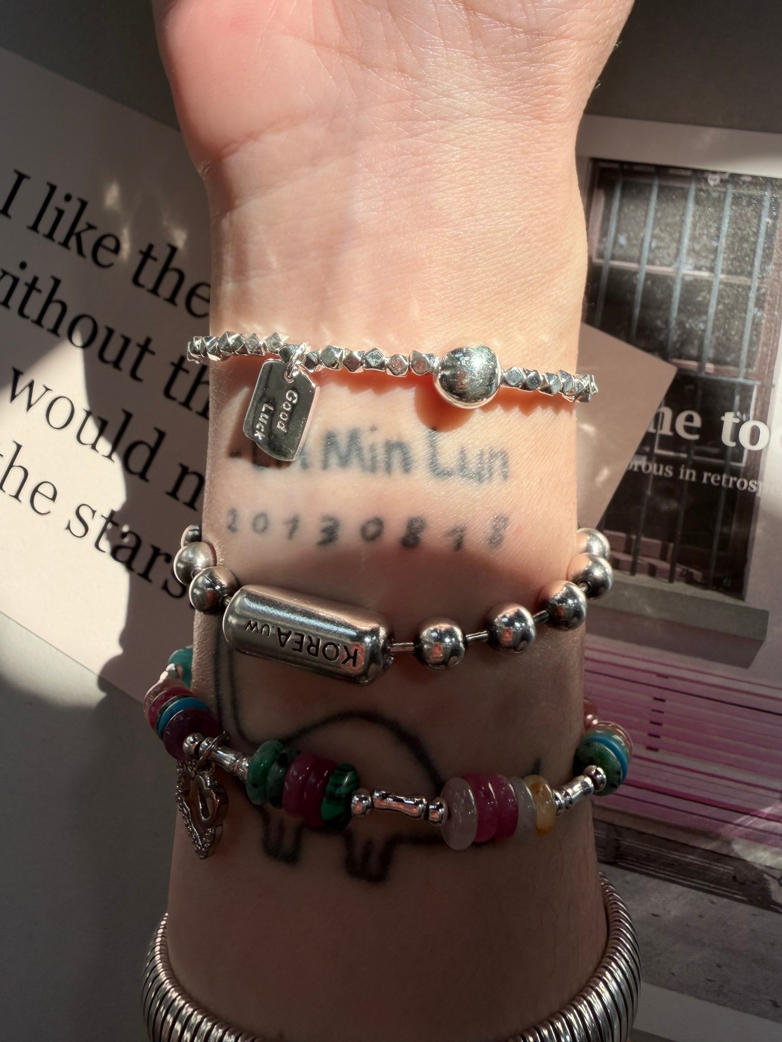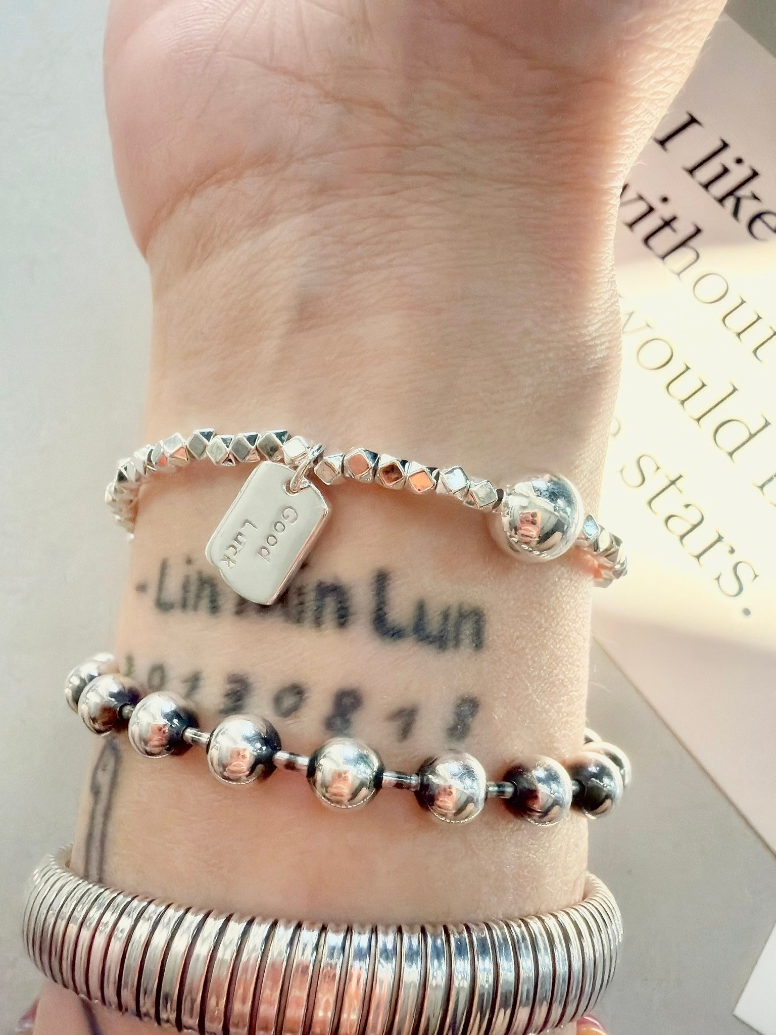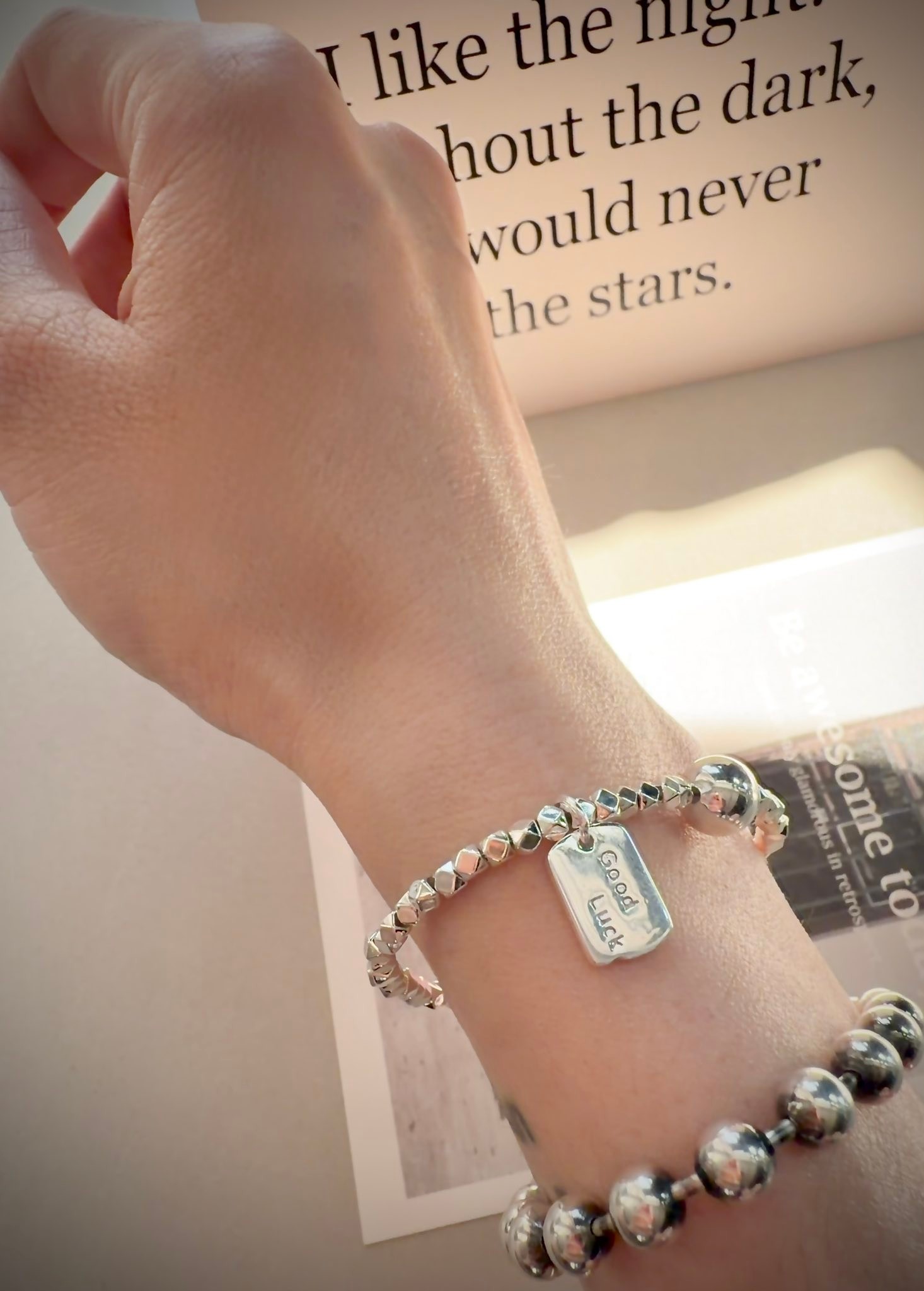 吊墜則是刻上「Good Luck」的小牌墜,像是一個隨身的 小小幸運符,每天配戴都能帶來好運與好心情