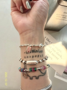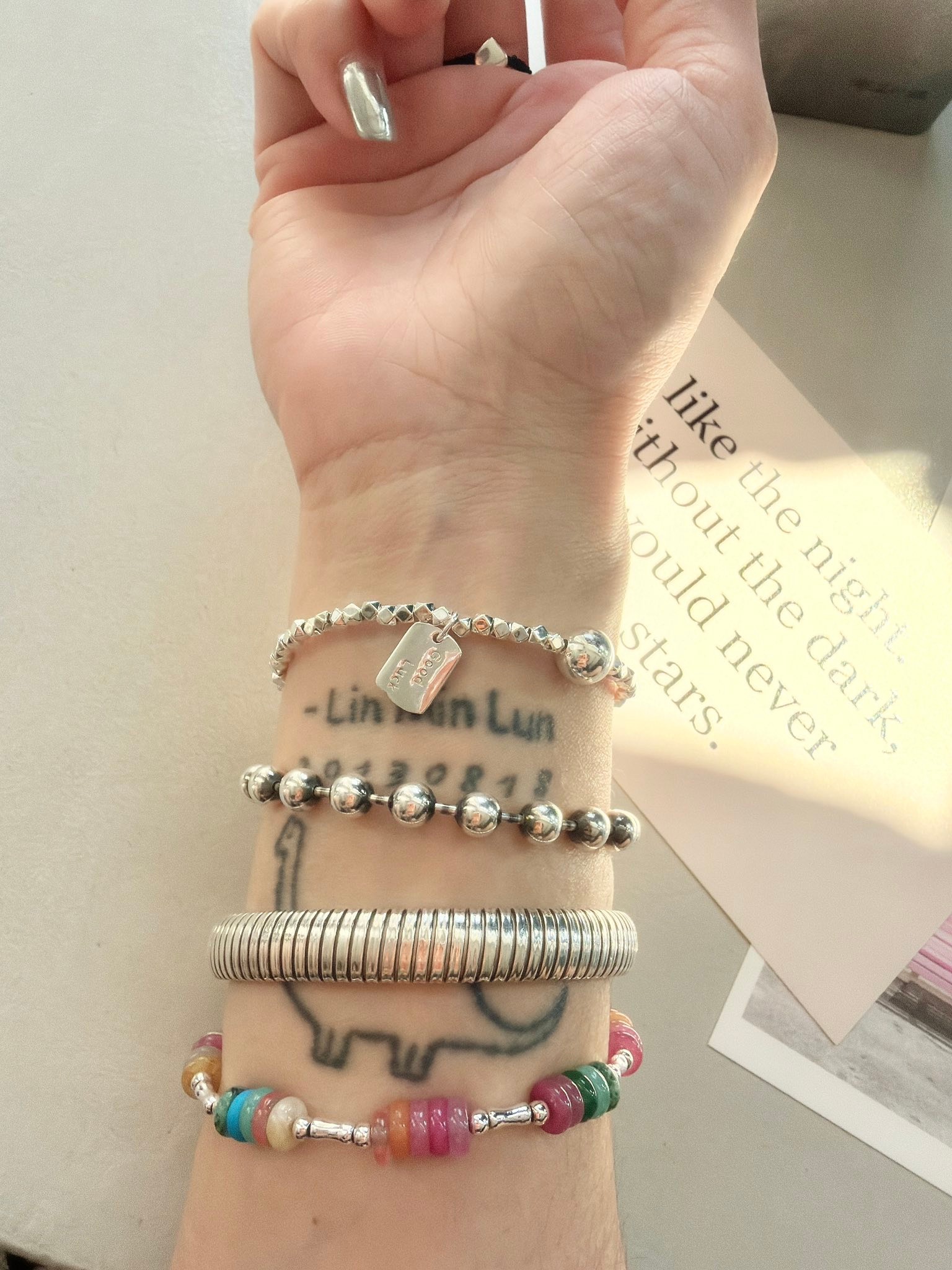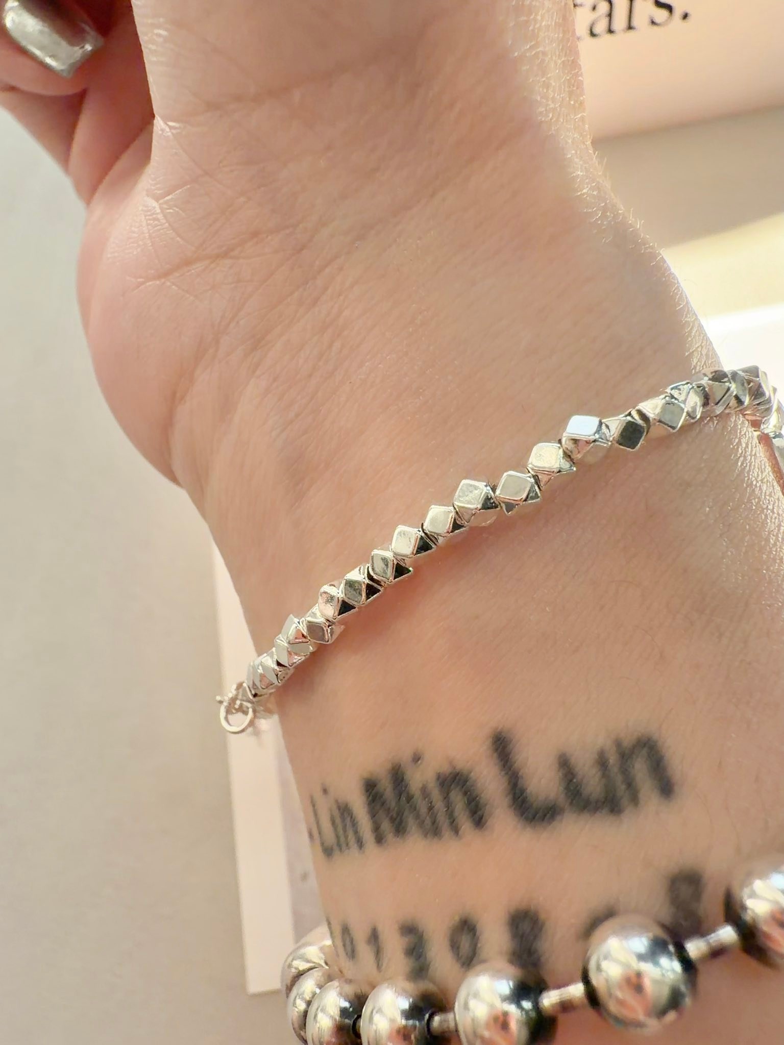 細緻的立體幾何銀珠 串成,光線一照就能反射出 低調卻非常精緻的光澤。