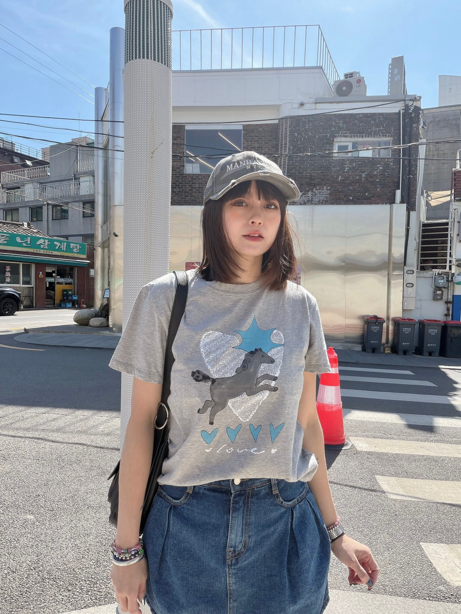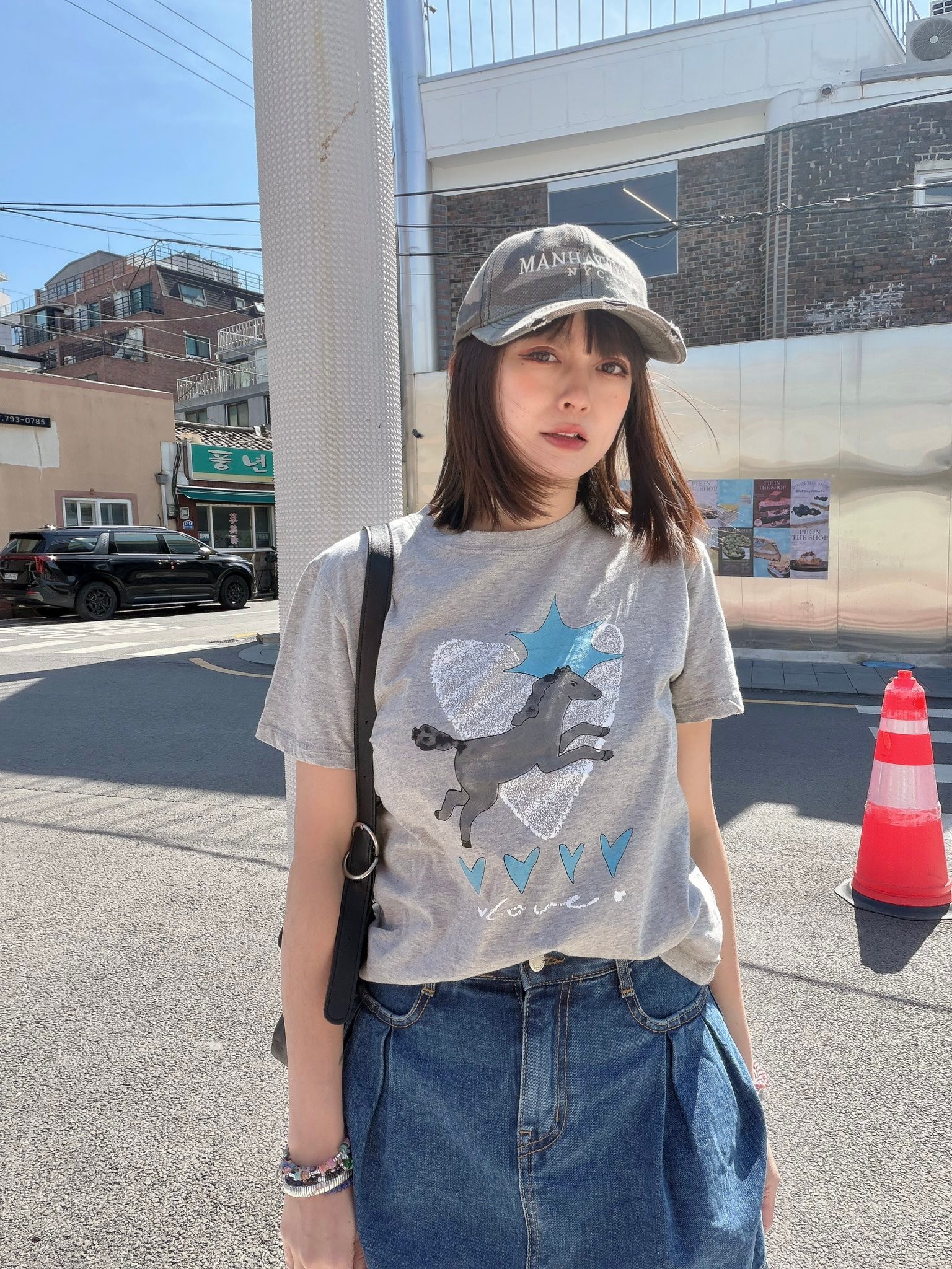 灰色底本來就很百搭,但加上正面的小馬圖案、愛心元素 和亮藍色點綴,