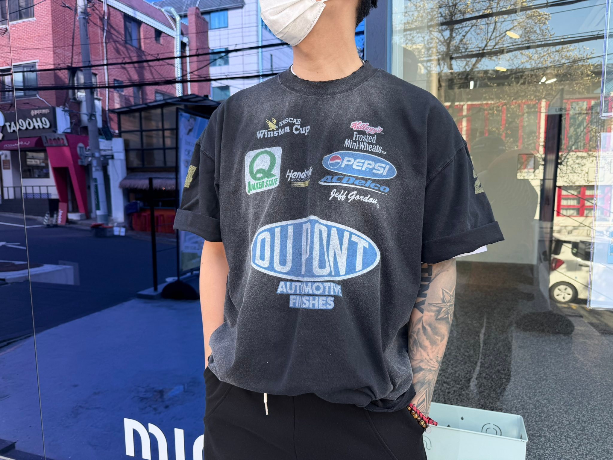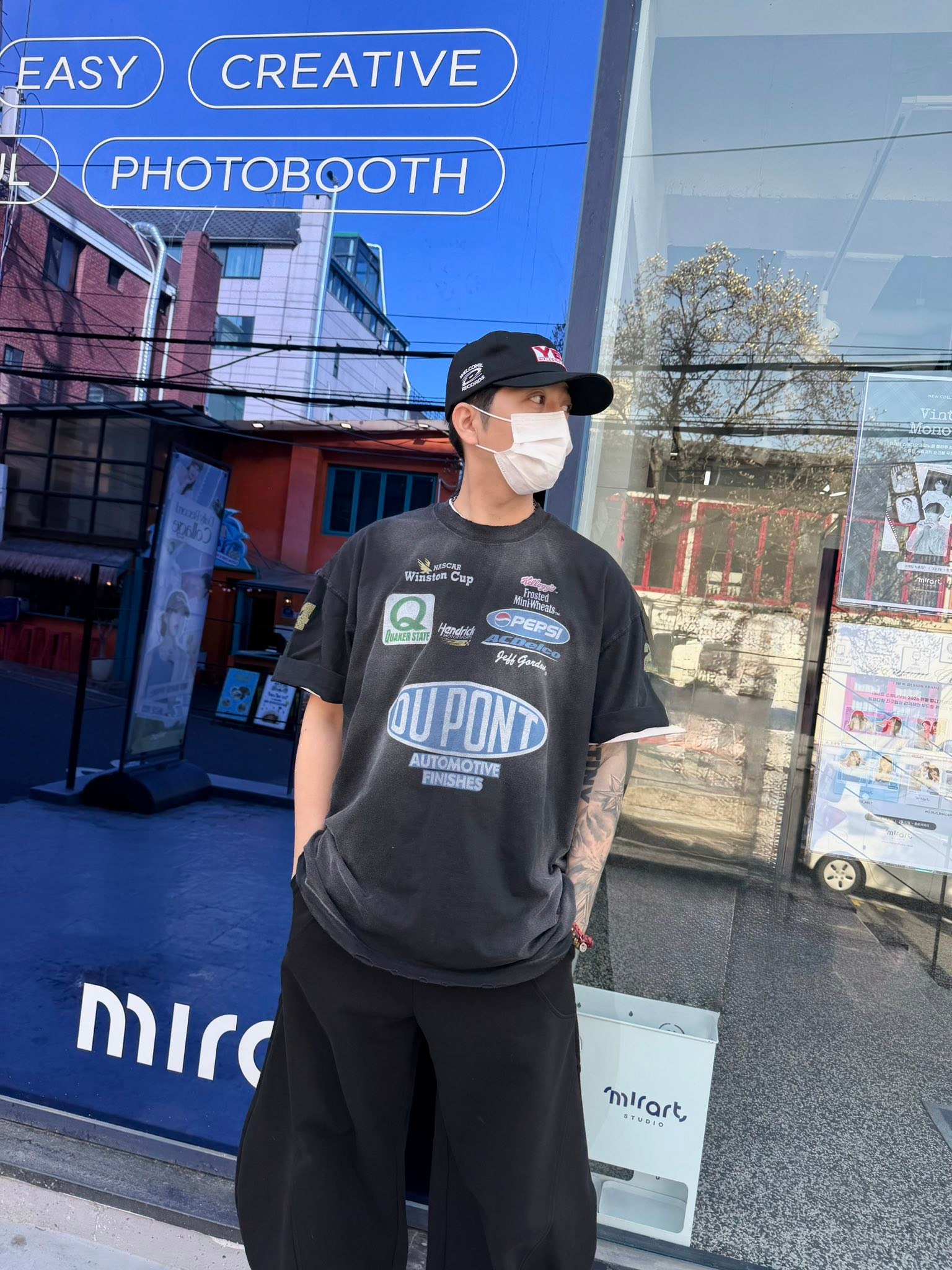韓國連線 BL127 復古洗舊破壞感賽車logo印花男T