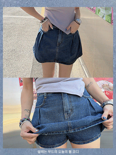 韓國連線 BL135 安全褲設計花苞打褶牛仔短裙