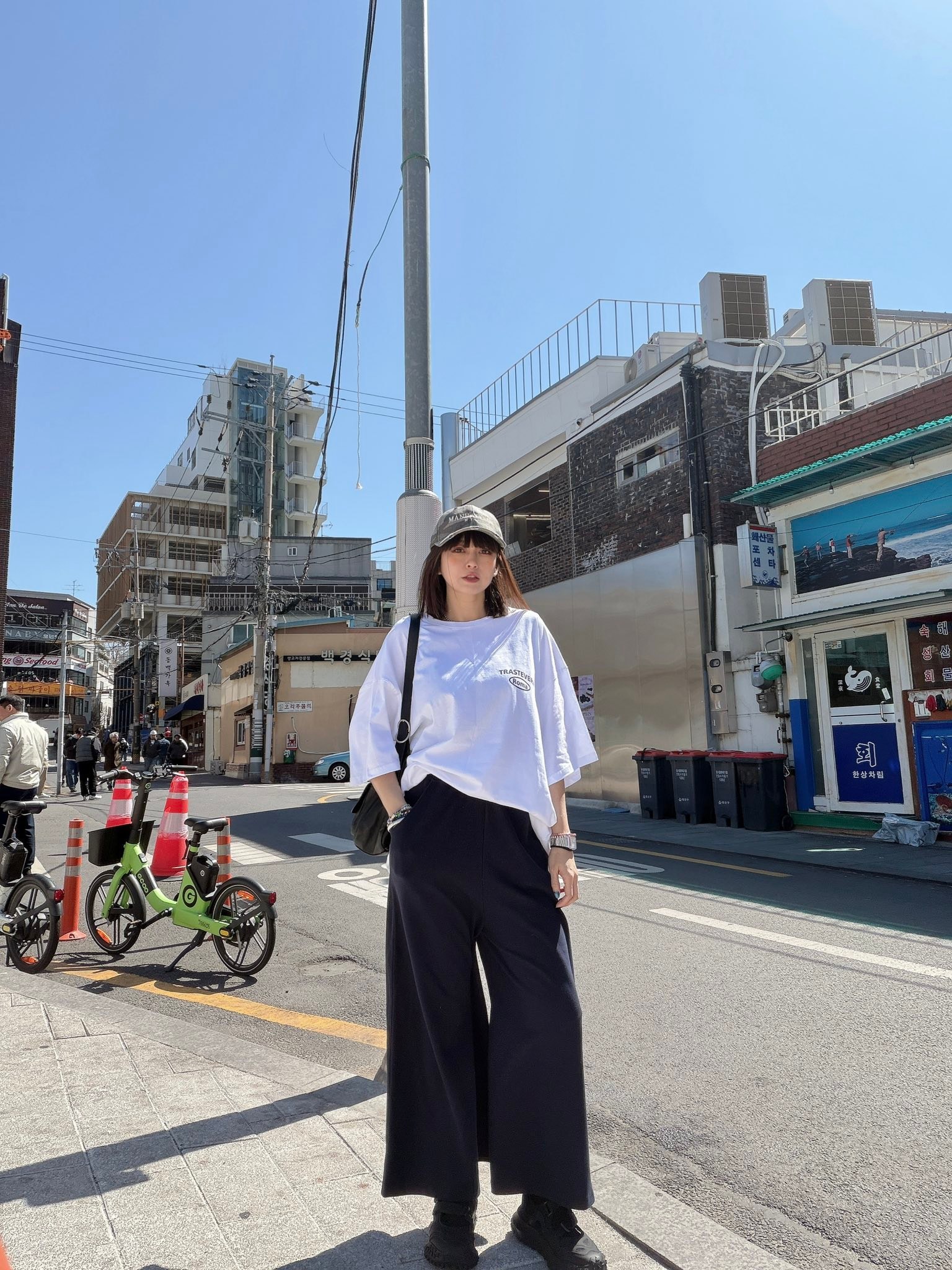 褲管採用大寬褲剪裁,從腰下自然展開,走動時會有很漂亮的飄感,