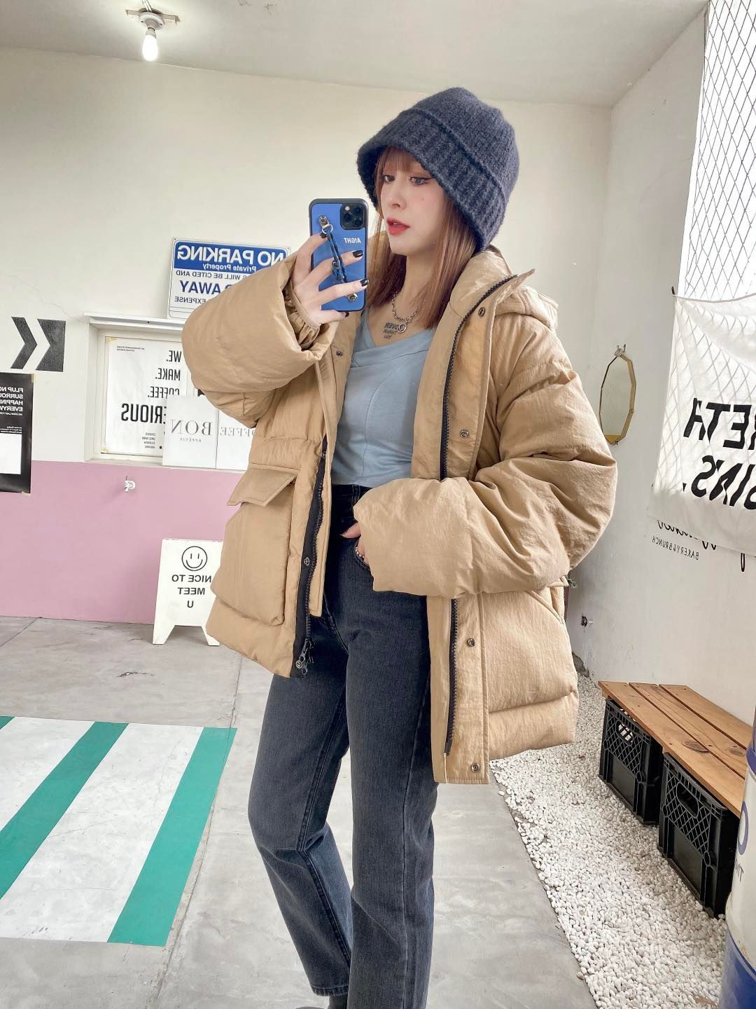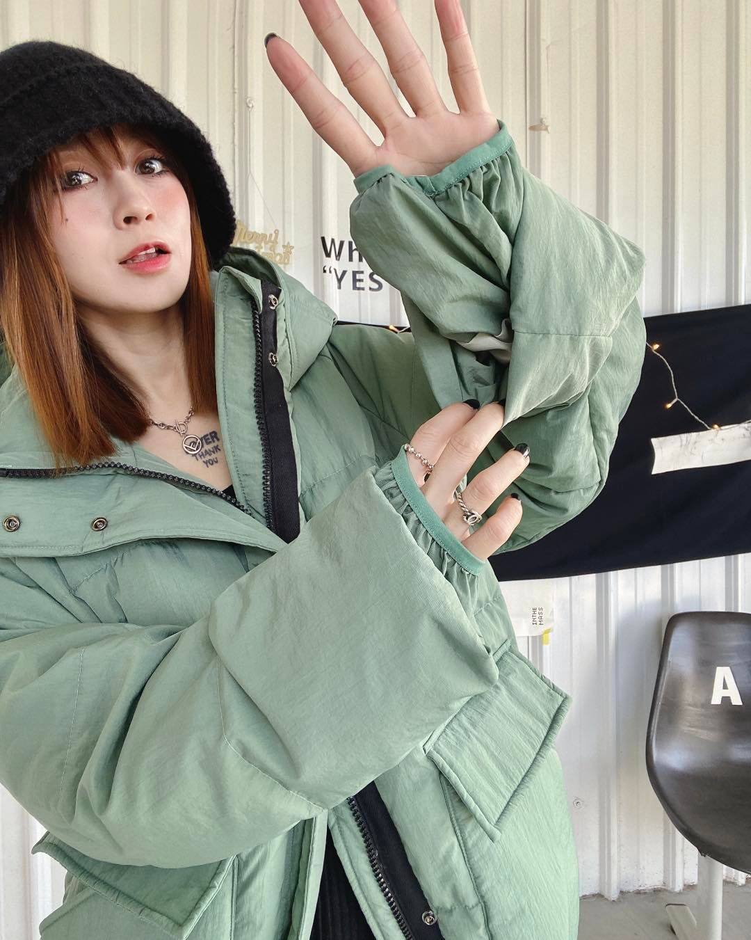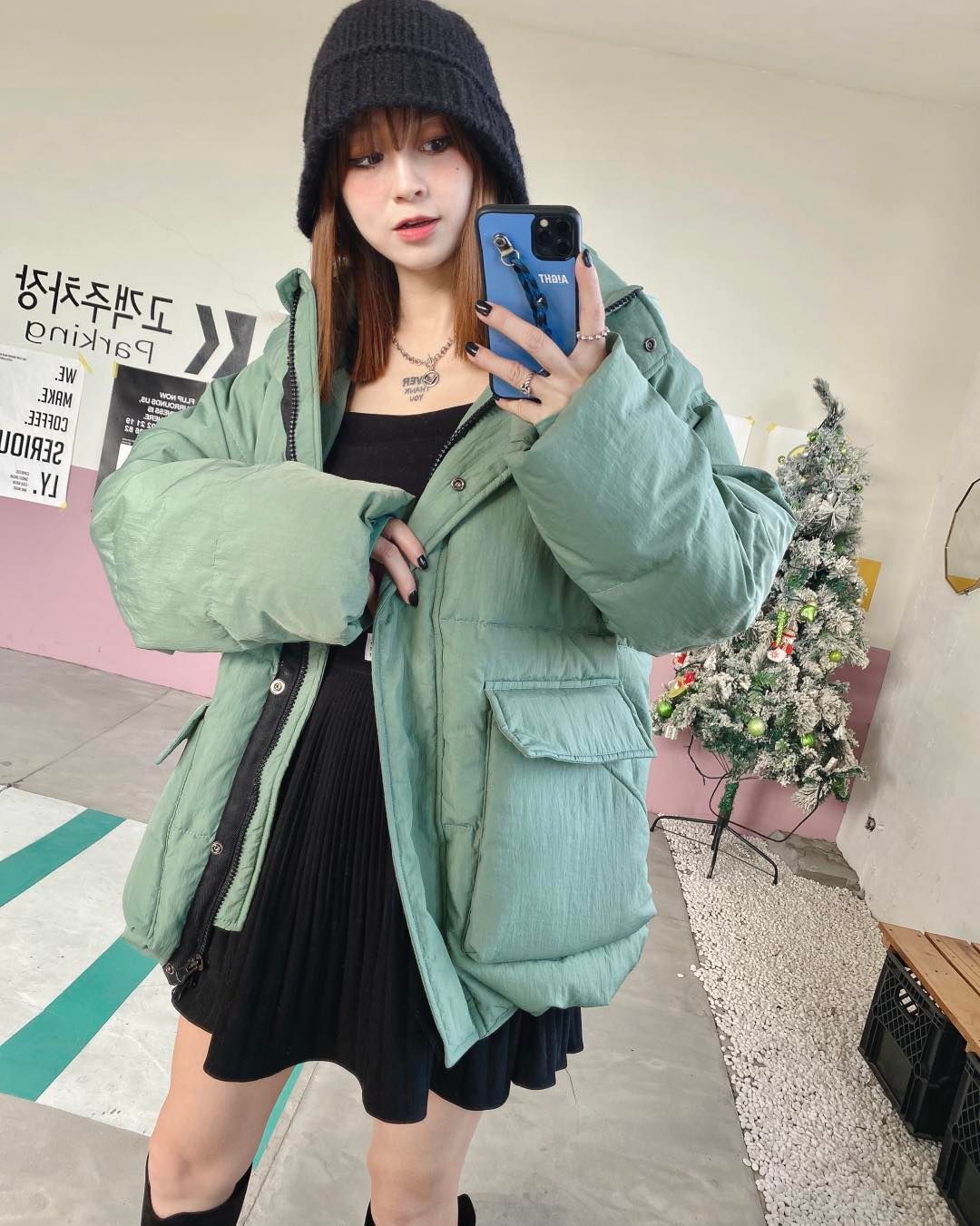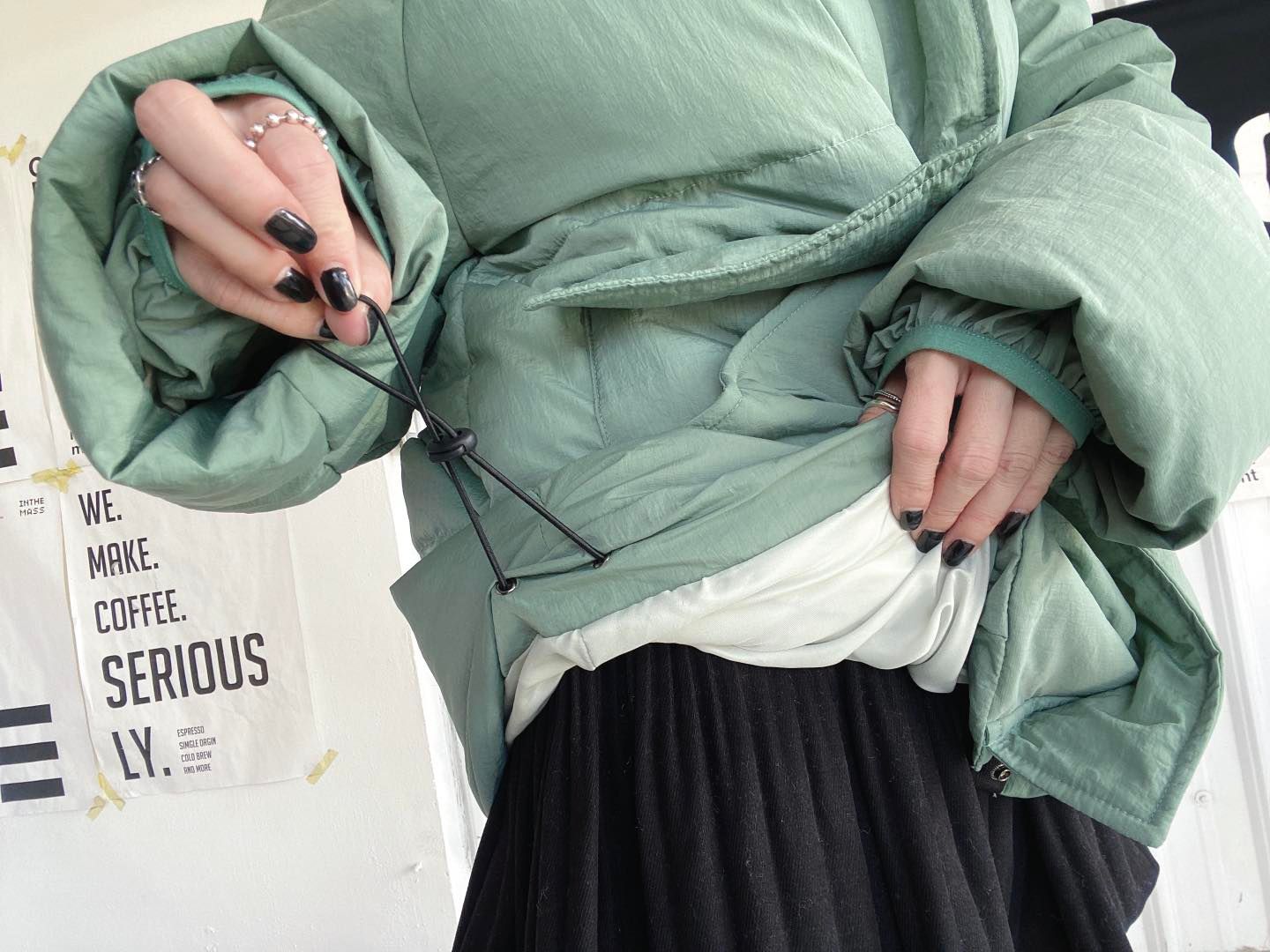 口袋也是雙層(側、上)粗獷的黑色拉鍊配色是我覺得穿起來很有個性的地方!