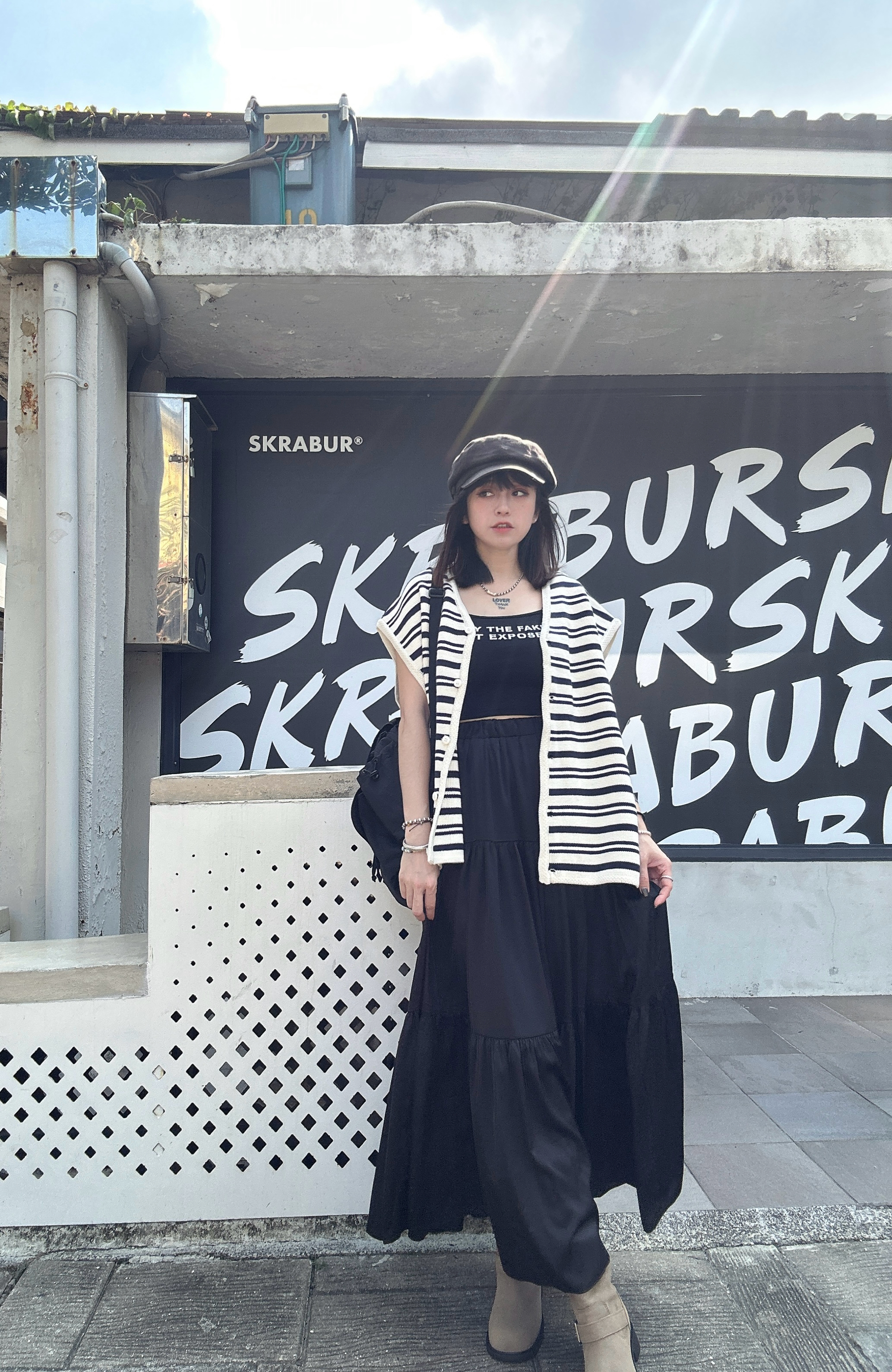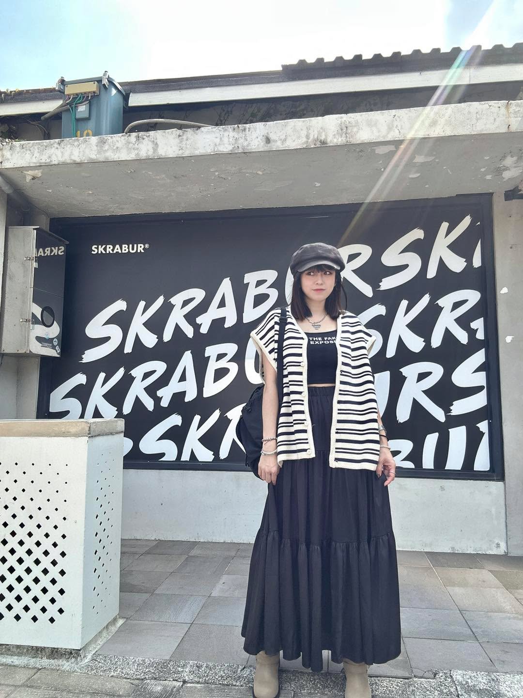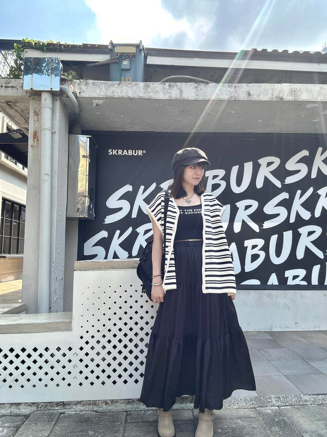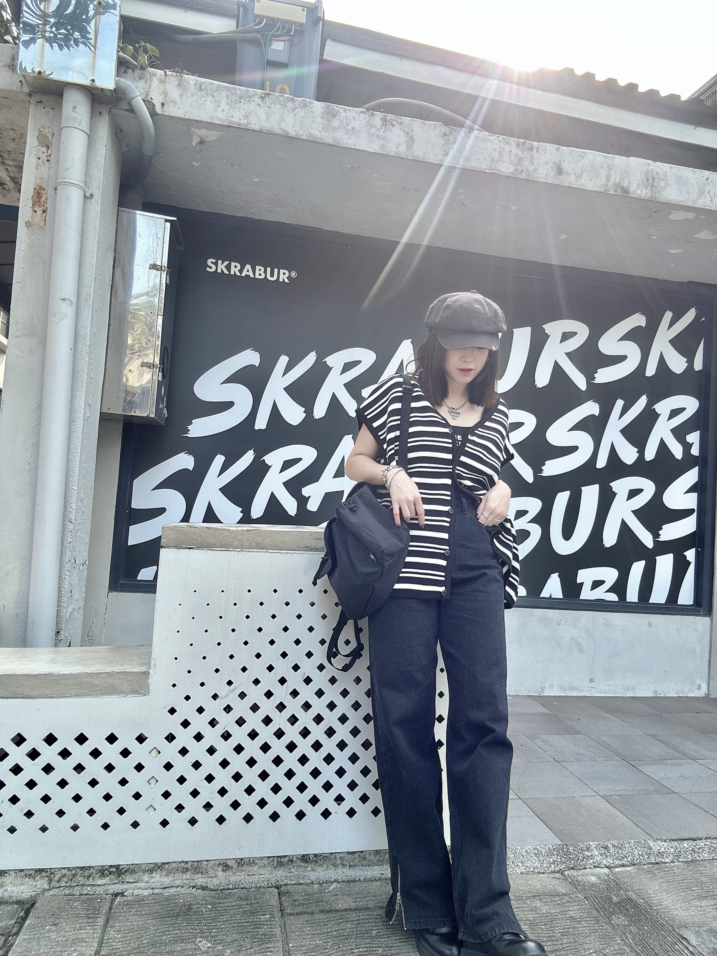 因為微涼天氣穿短袖罩著嘟嘟好!而且又有型Over Size的設計