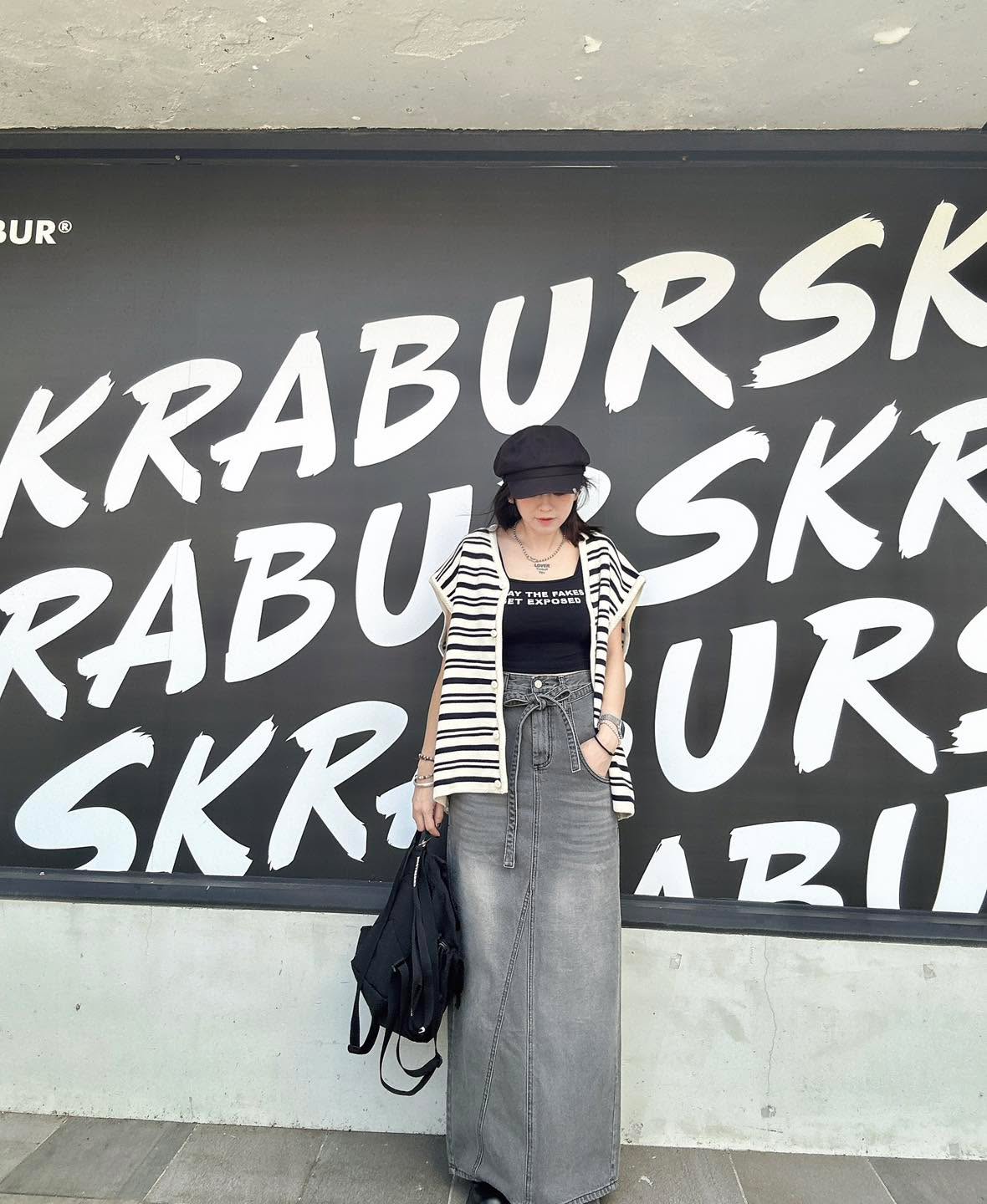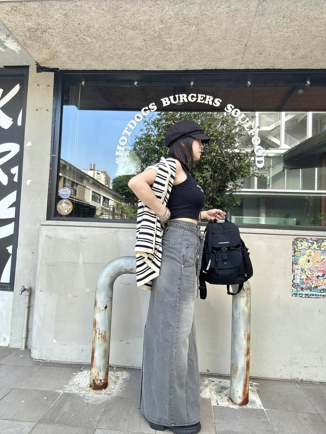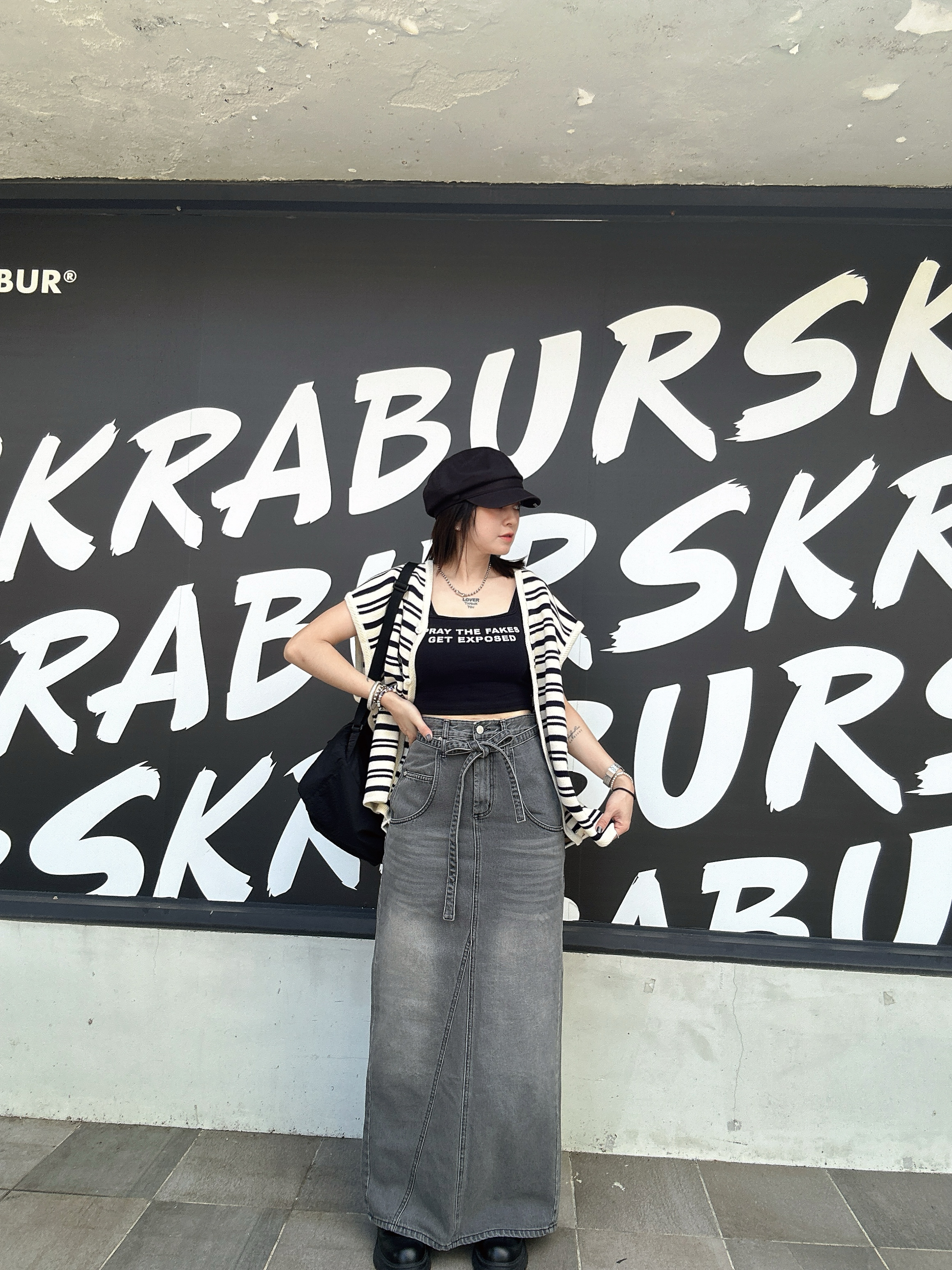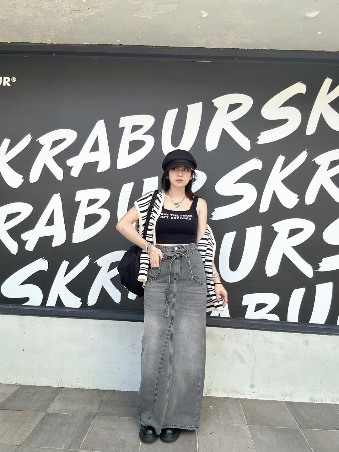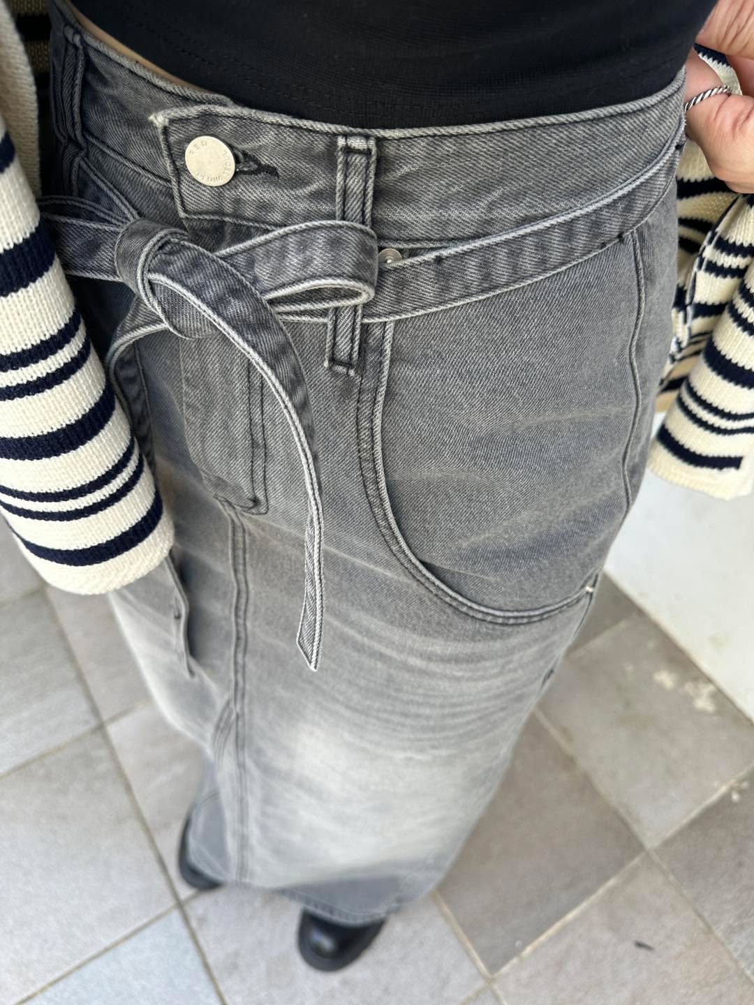 韓國連線 BH16 低口袋綁帶腰帶灰牛仔長裙