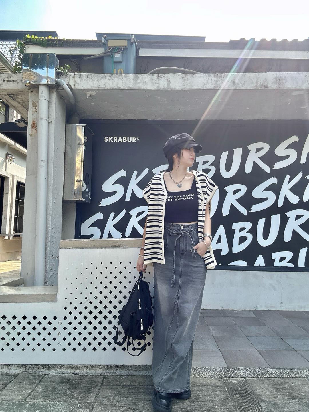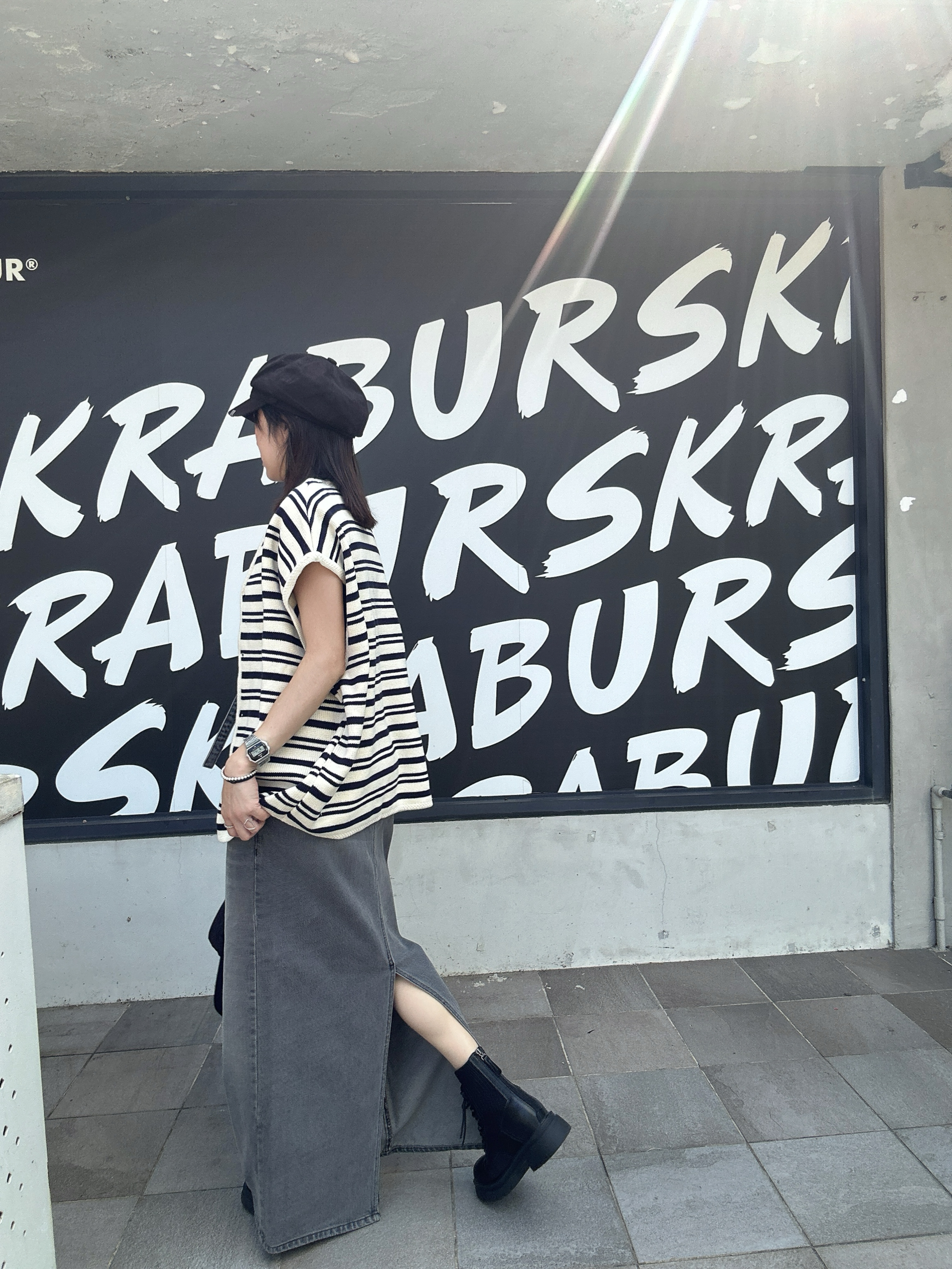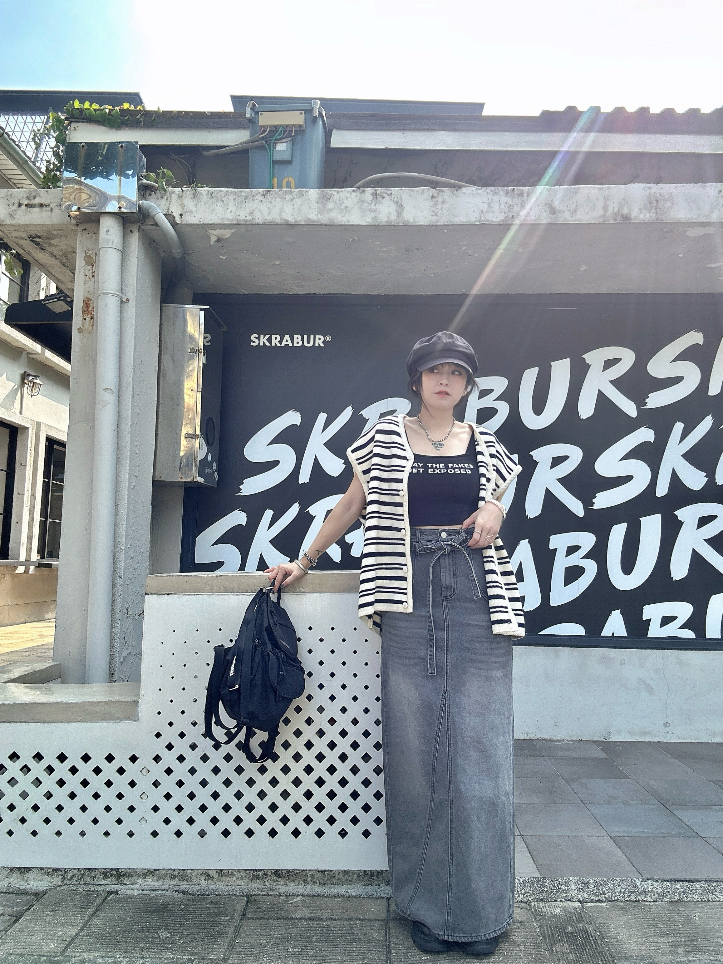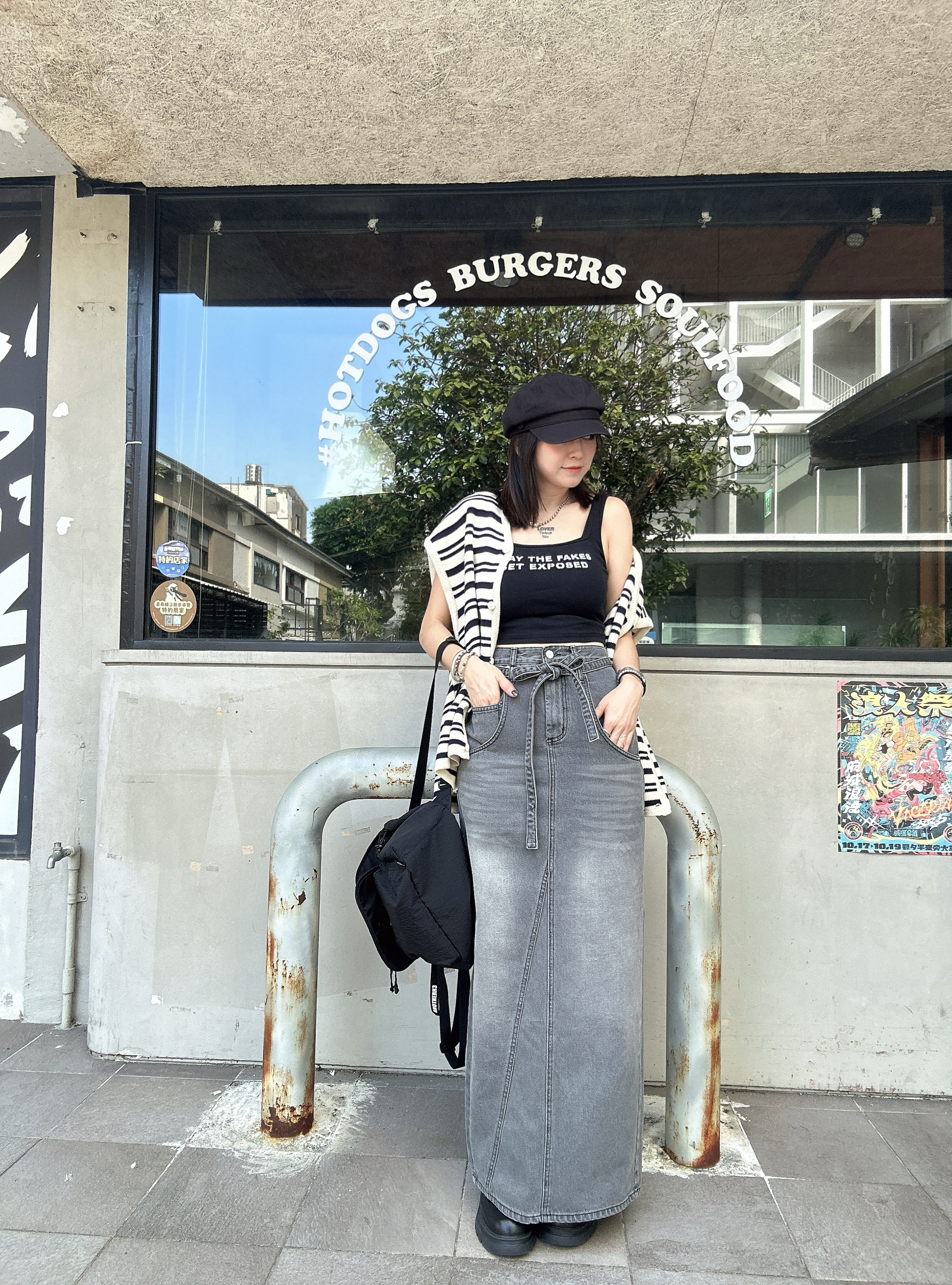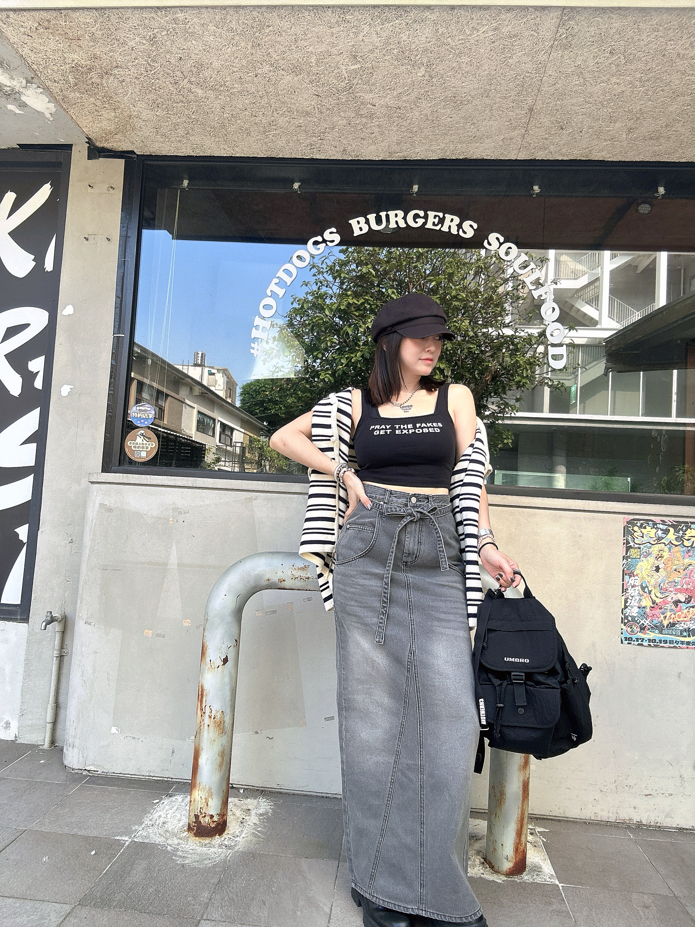 韓國連線 BH16 低口袋綁帶腰帶灰牛仔長裙