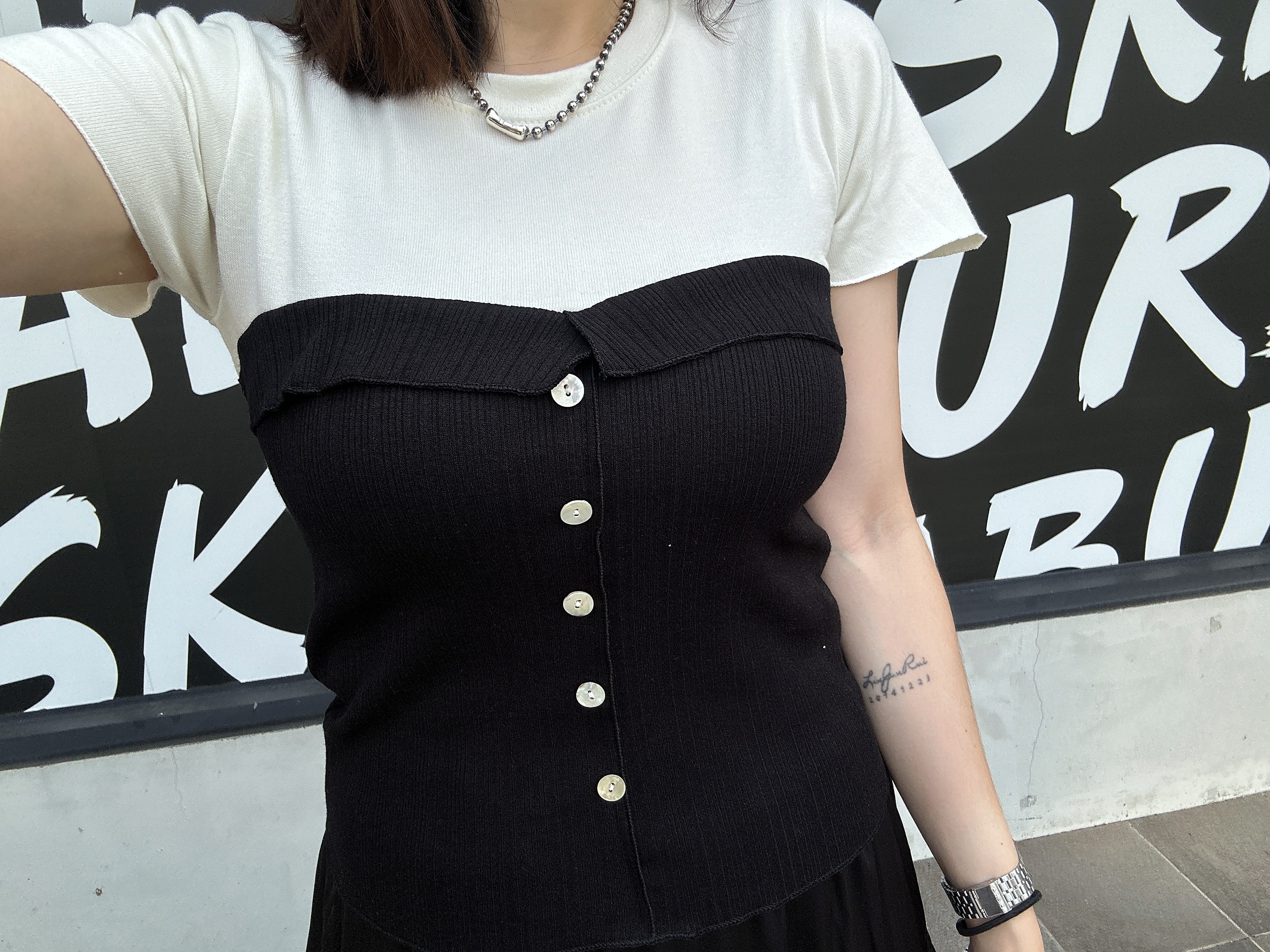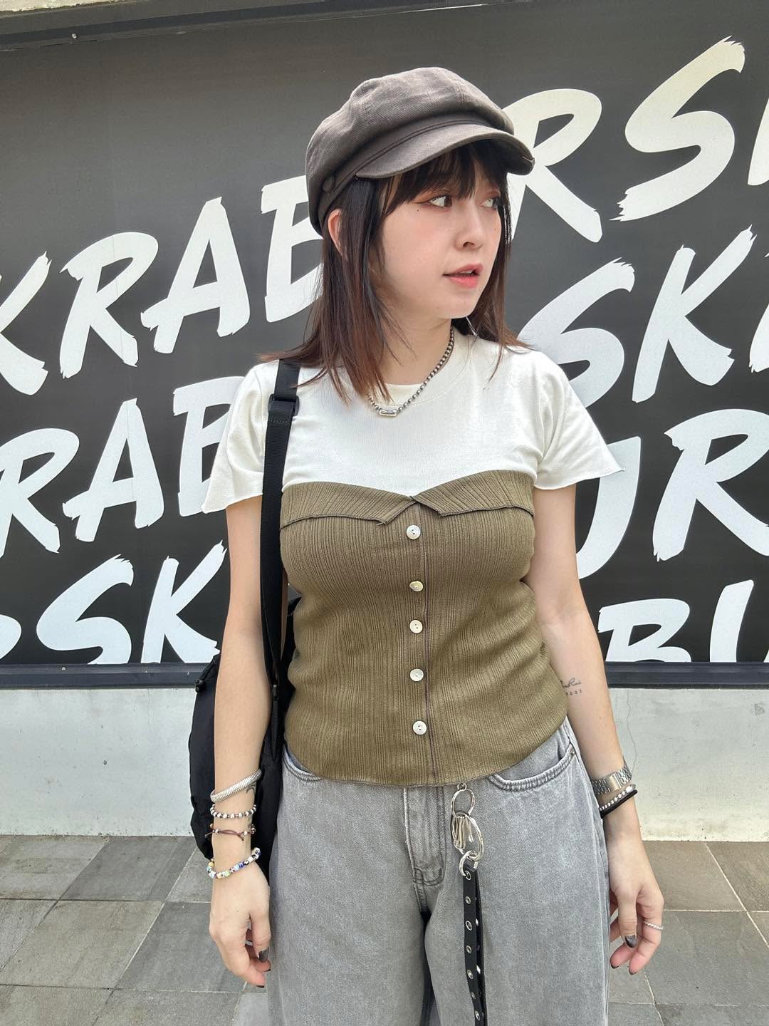 韓國連線 BH01 馬甲拼接造型彈性上衣