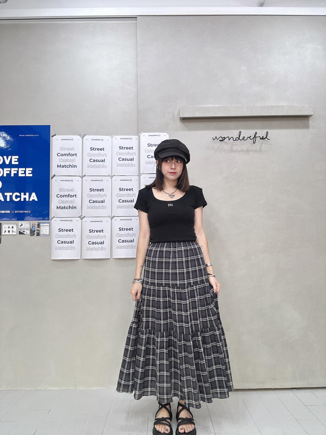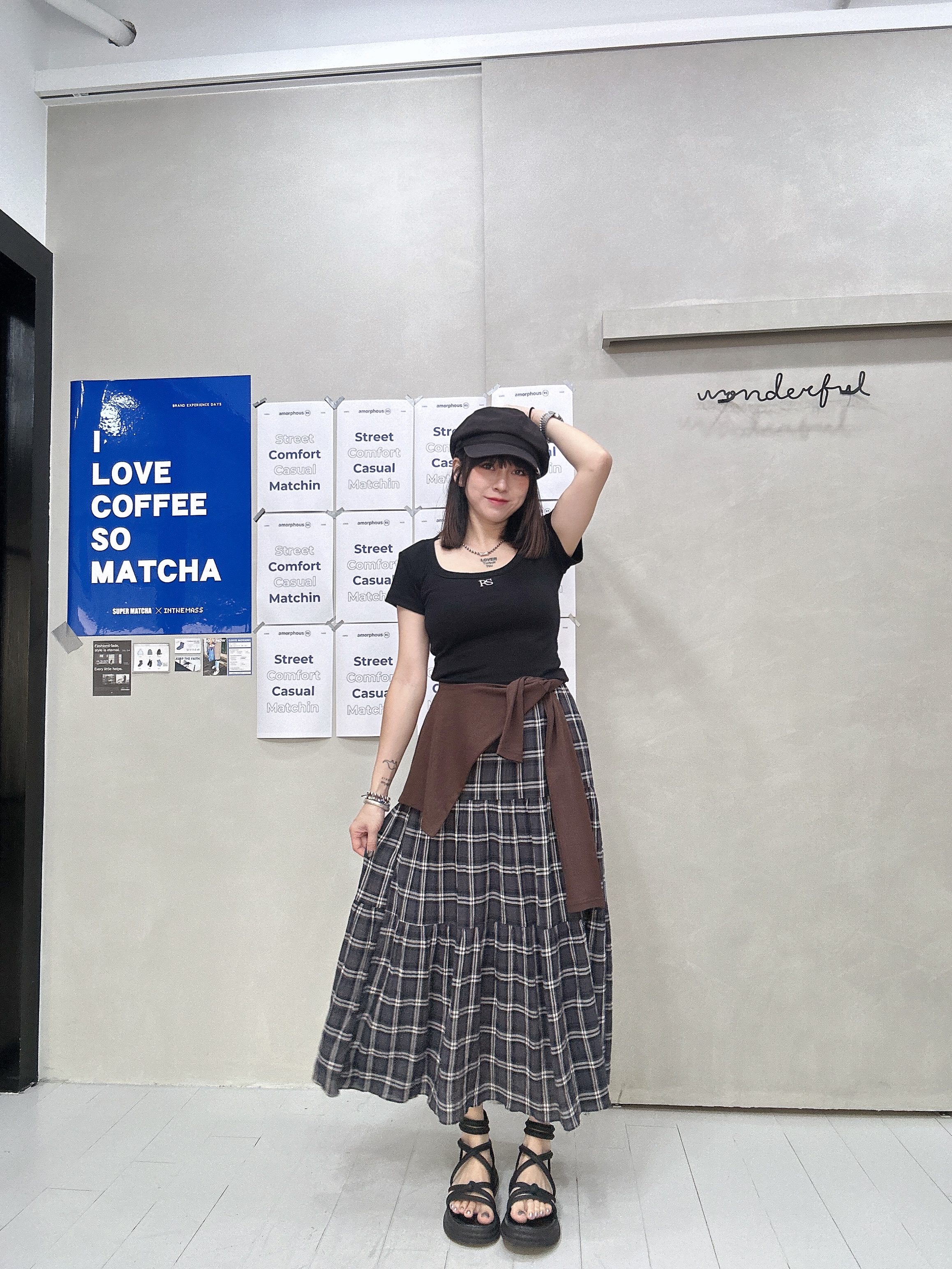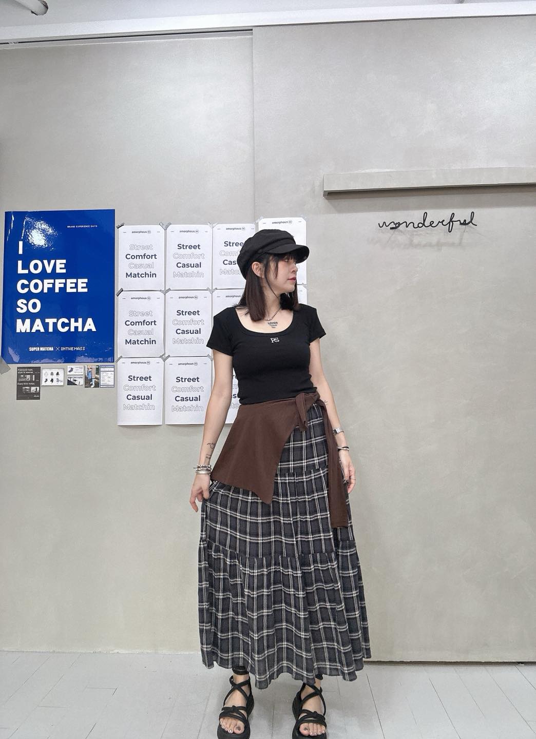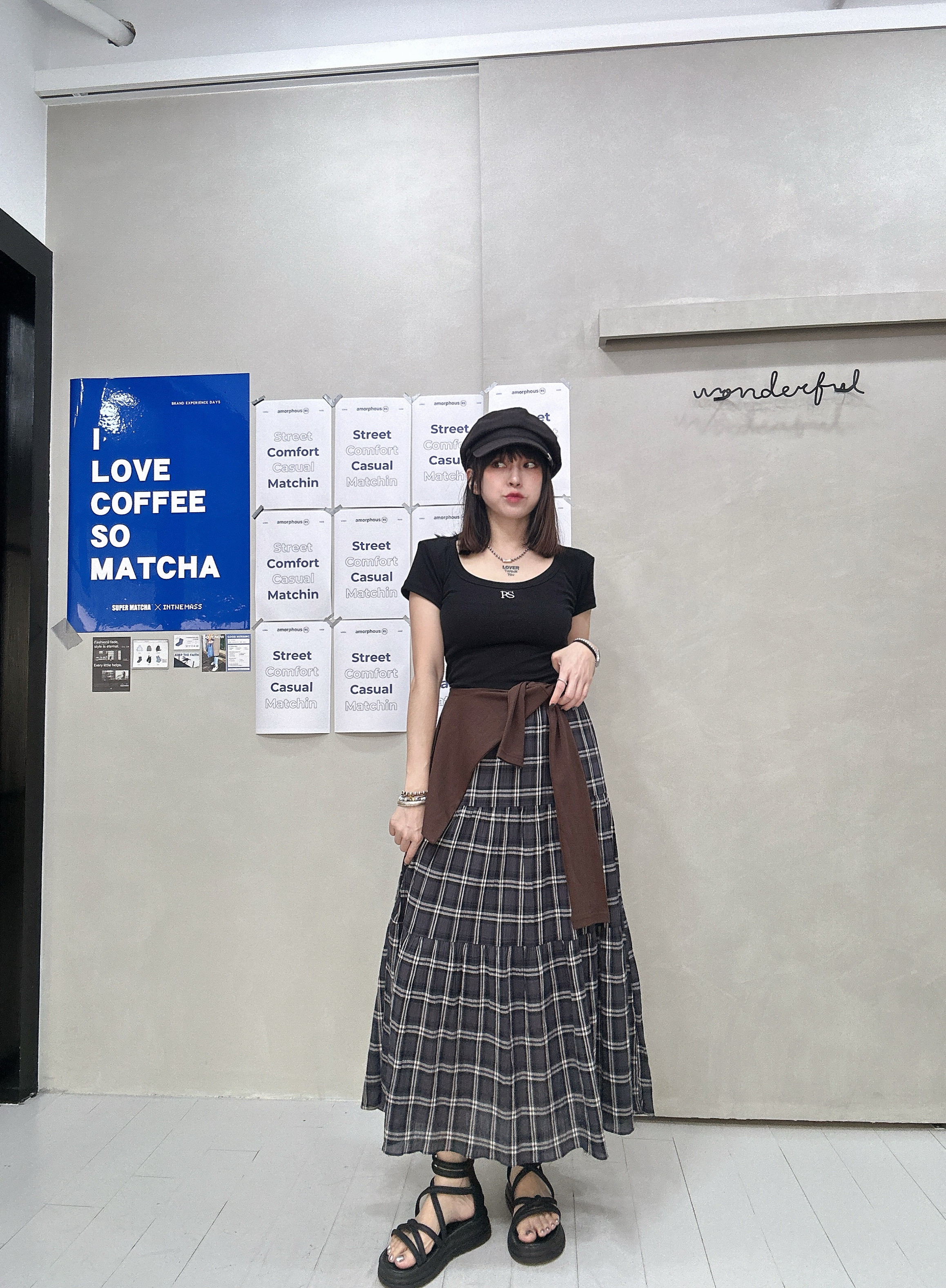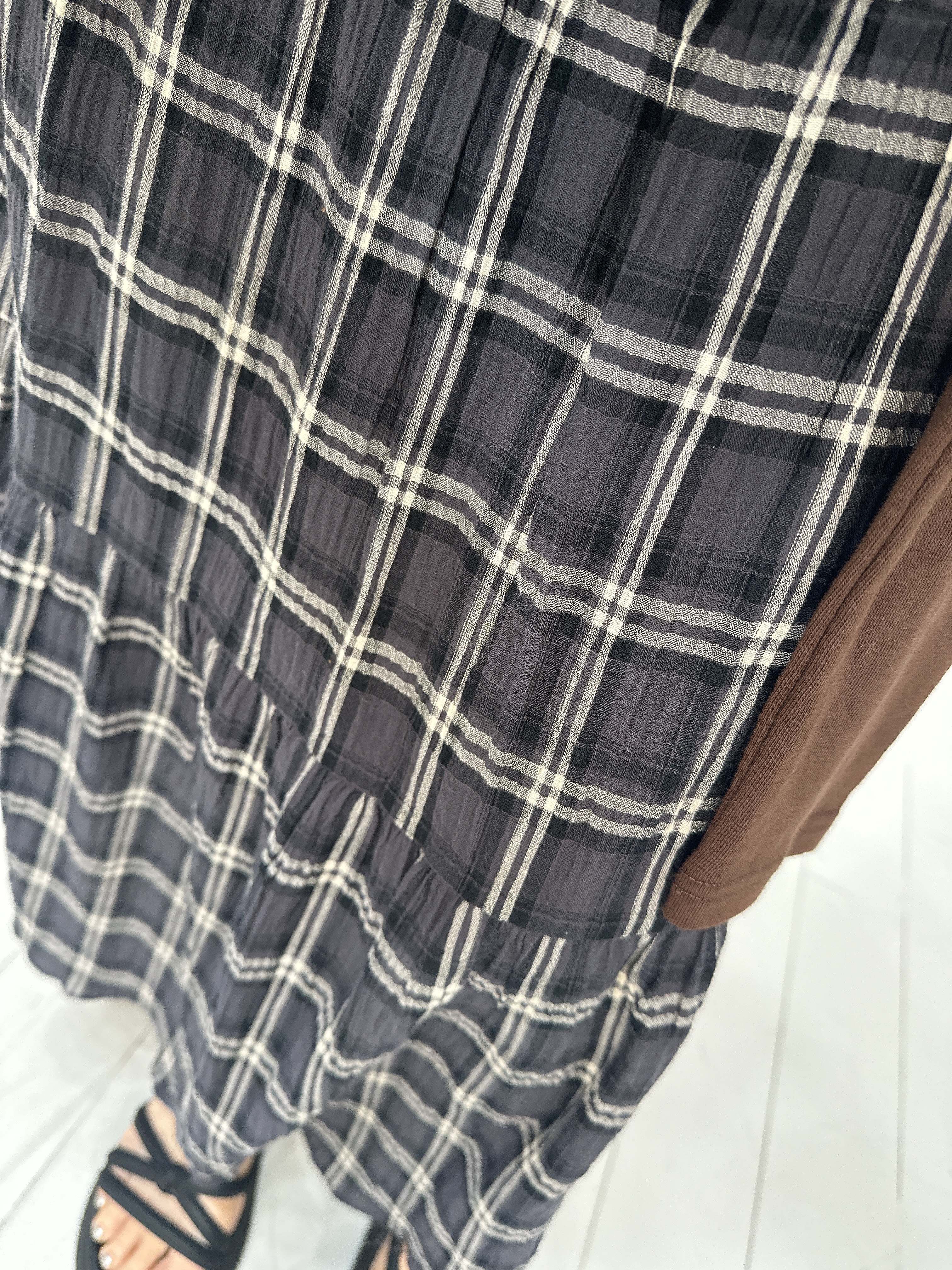韓國連線 BH08 質感灰格棉紗格紋裙