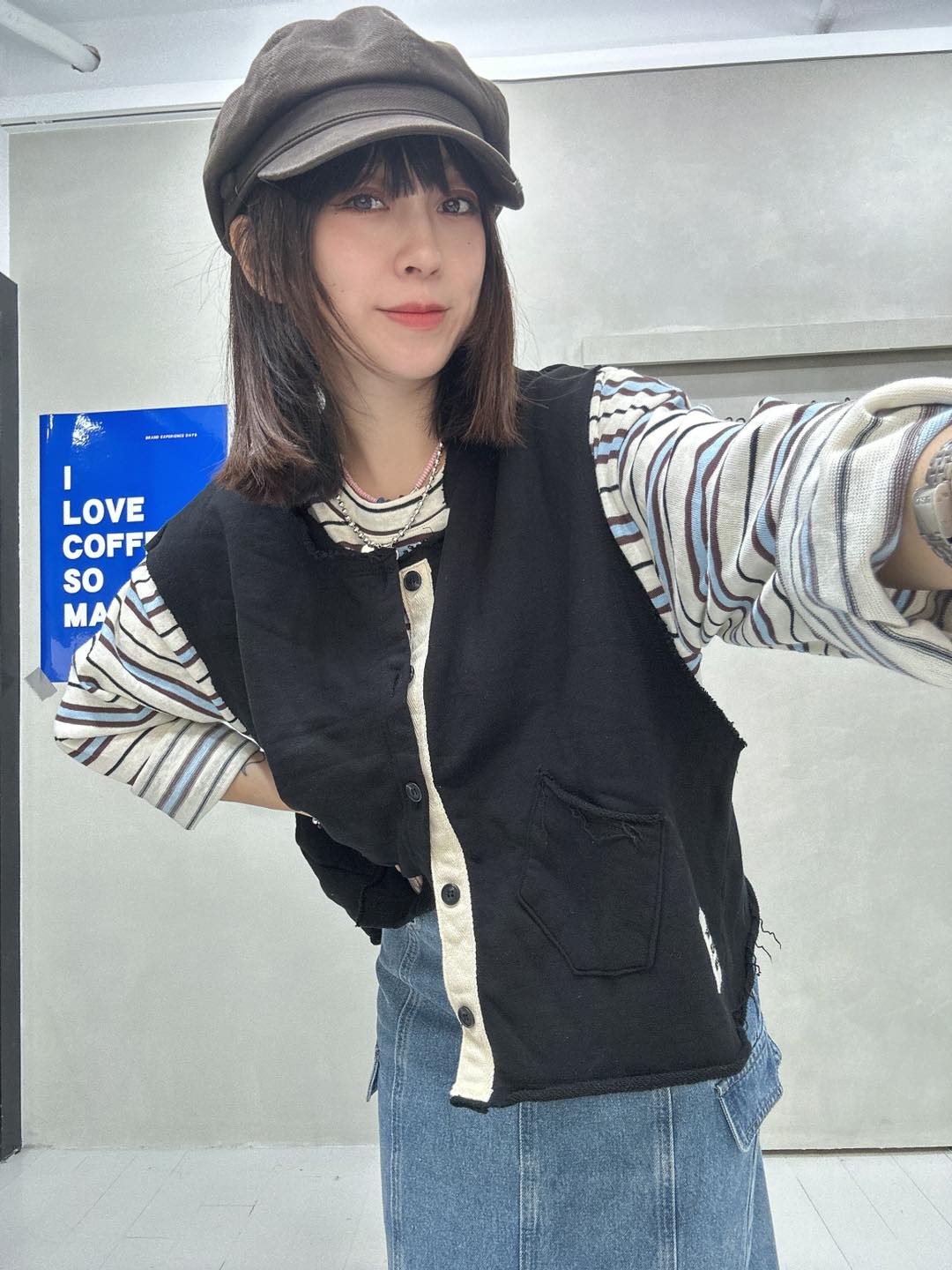 • 韓國連線 BH02 條文排扣長版無袖外套外罩 NT.$1430