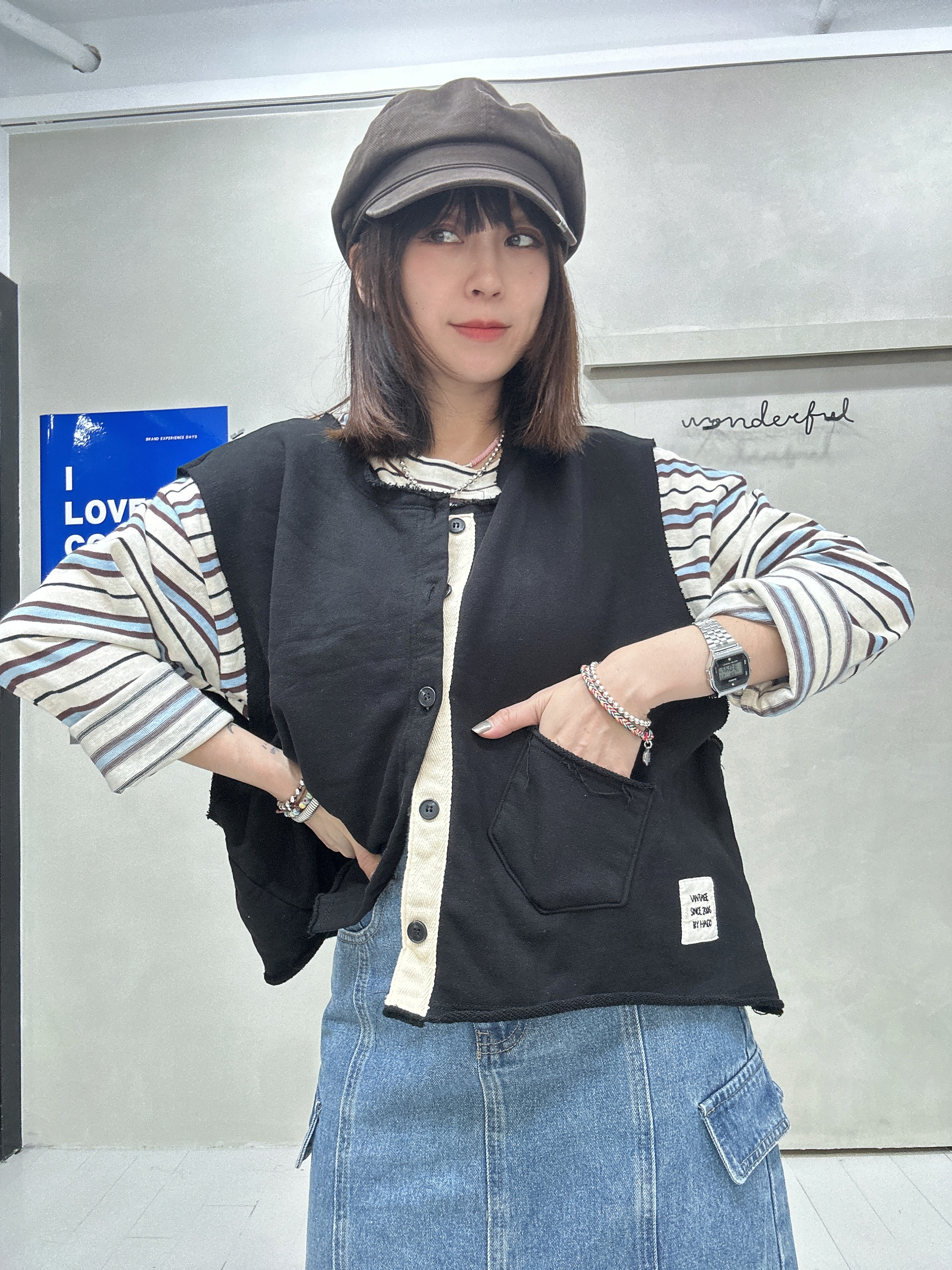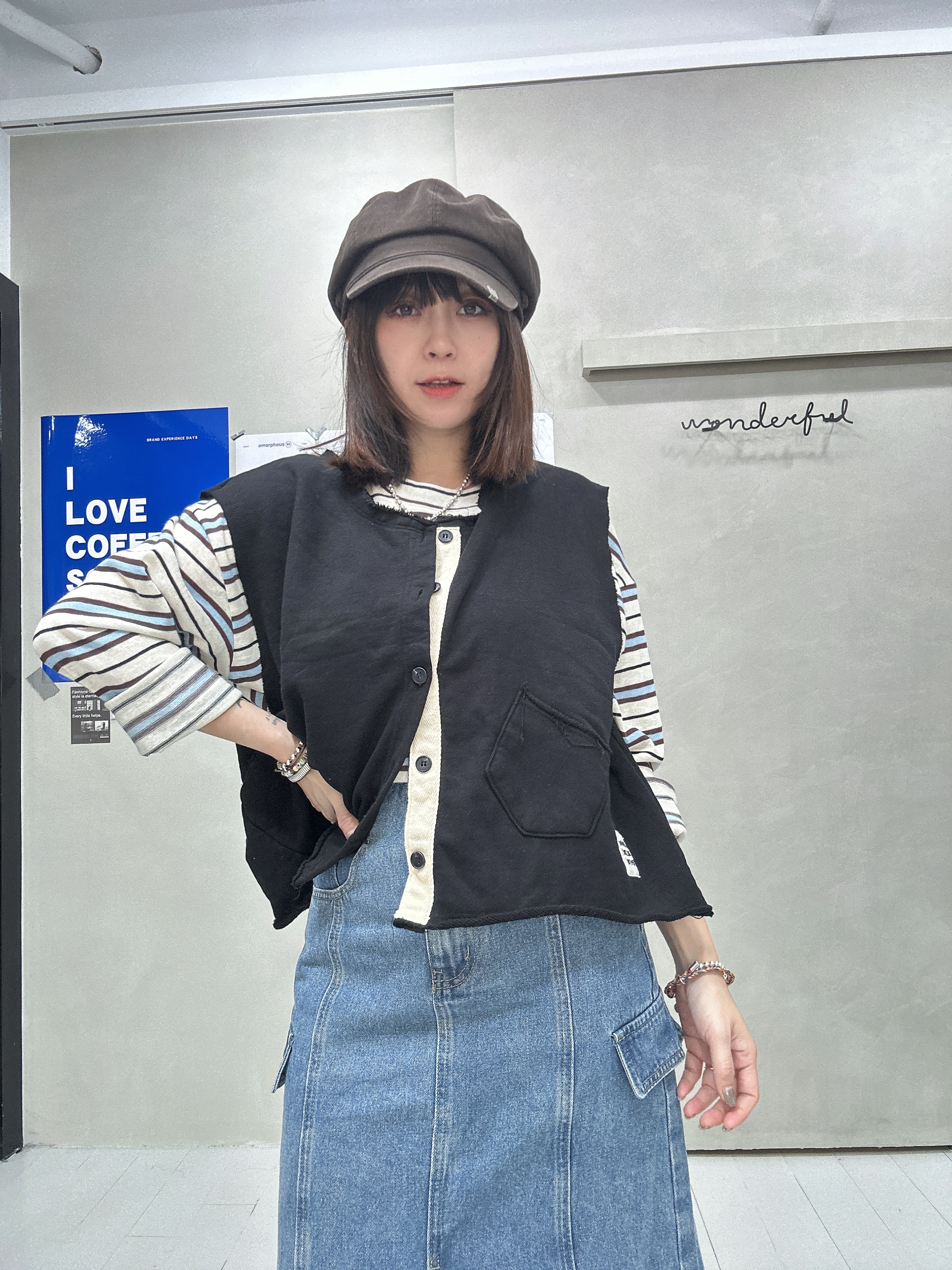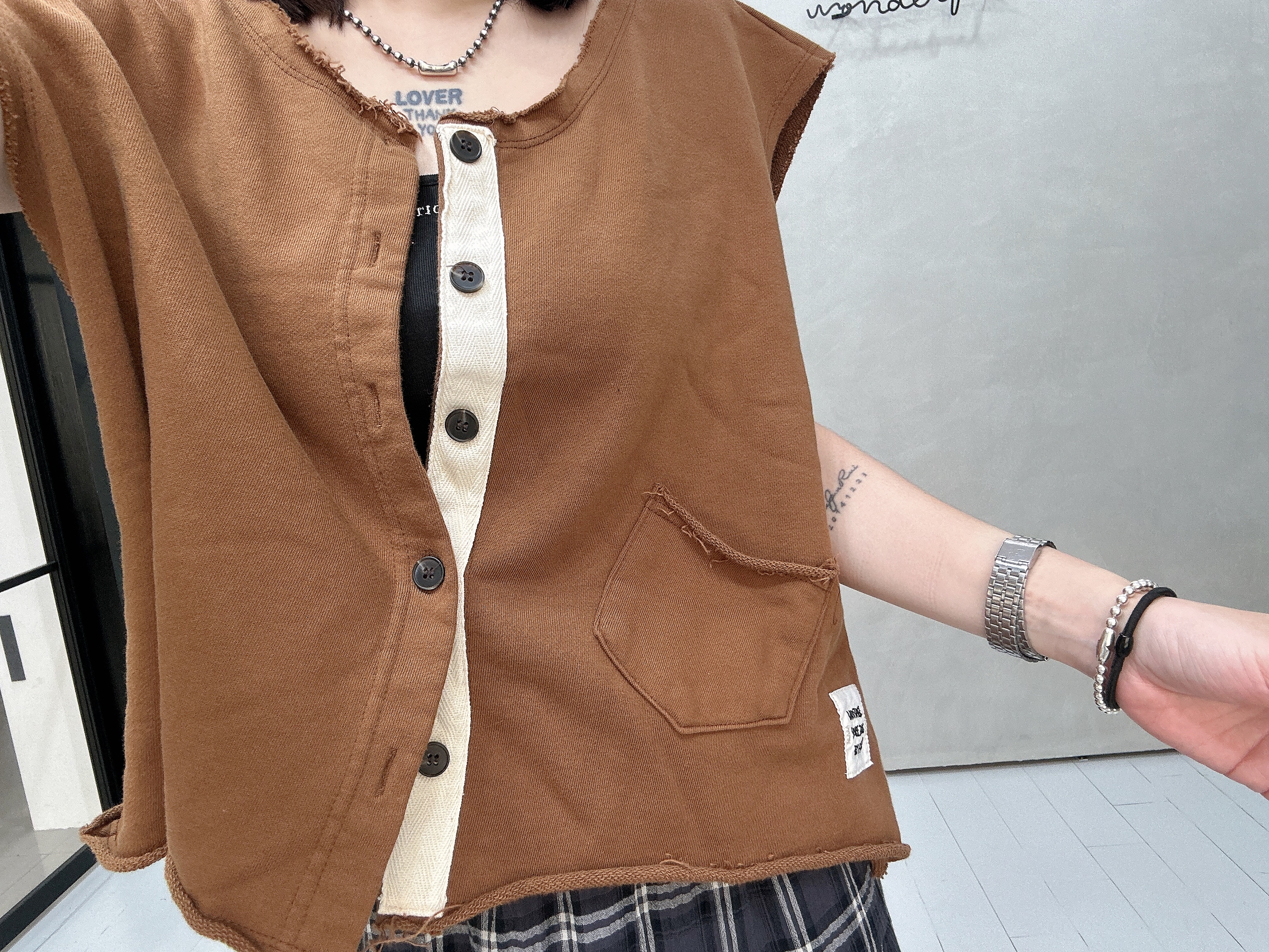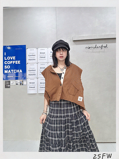 韓國連線 BH33 布貼無袖排扣外罩背心