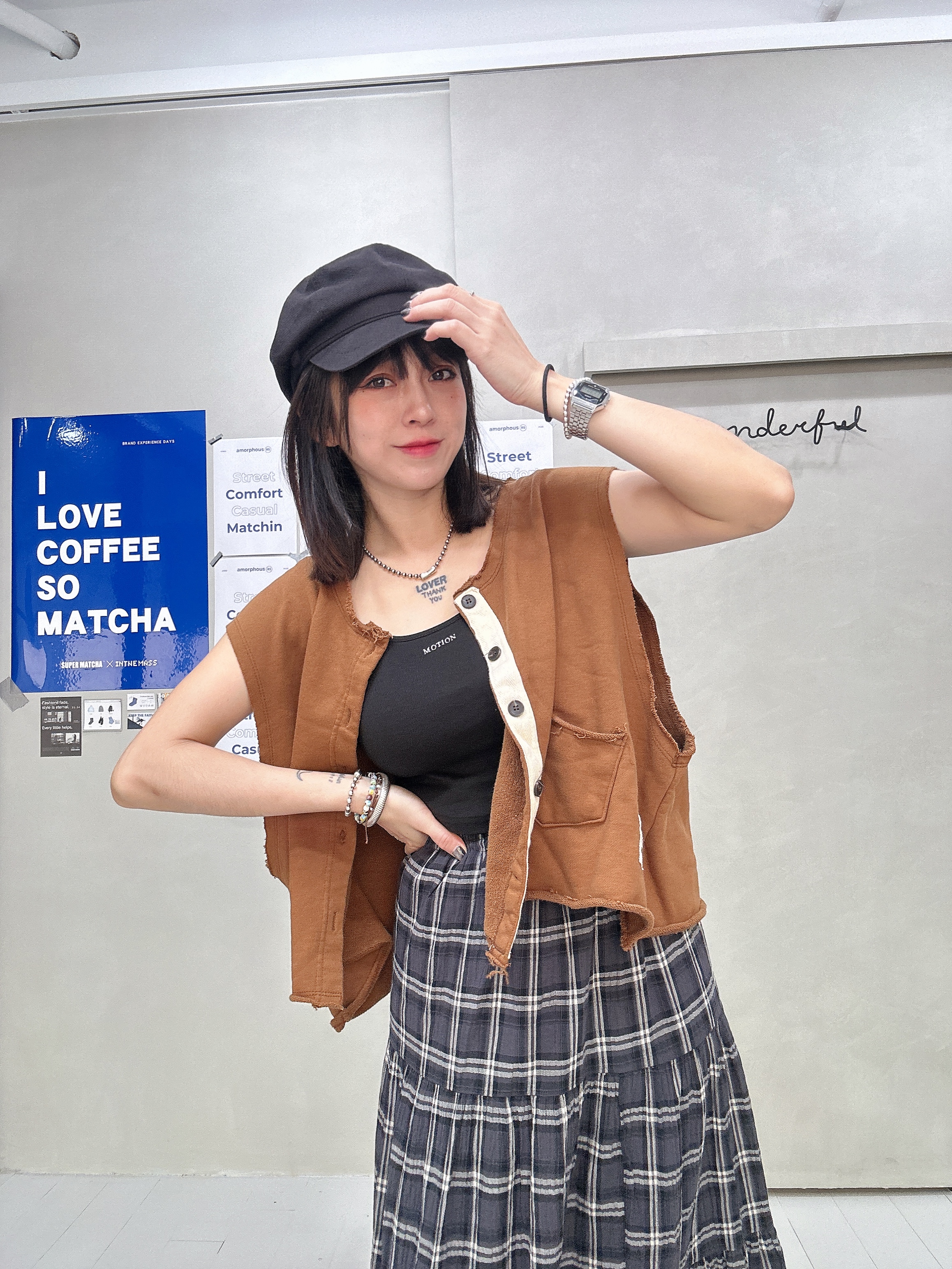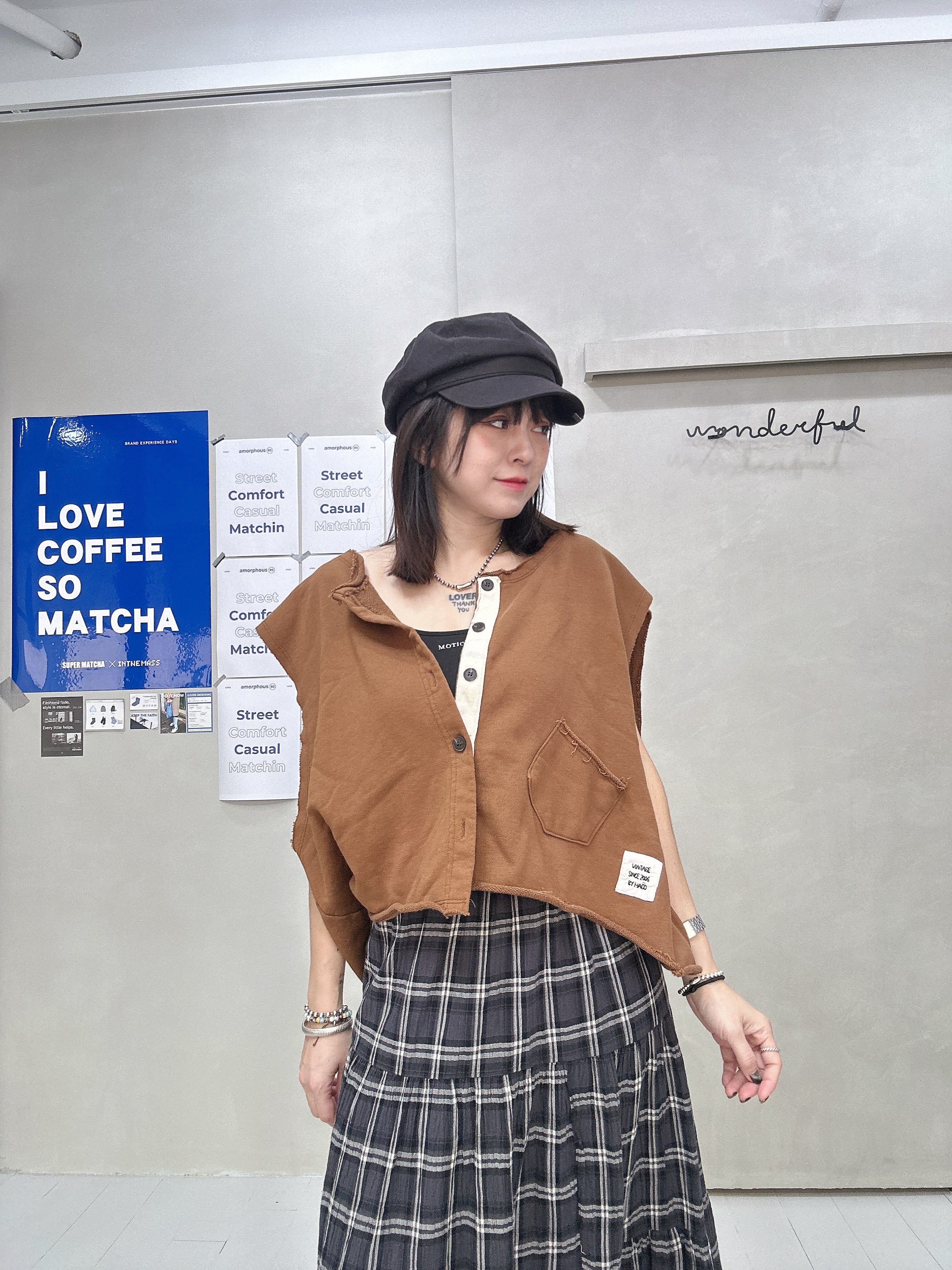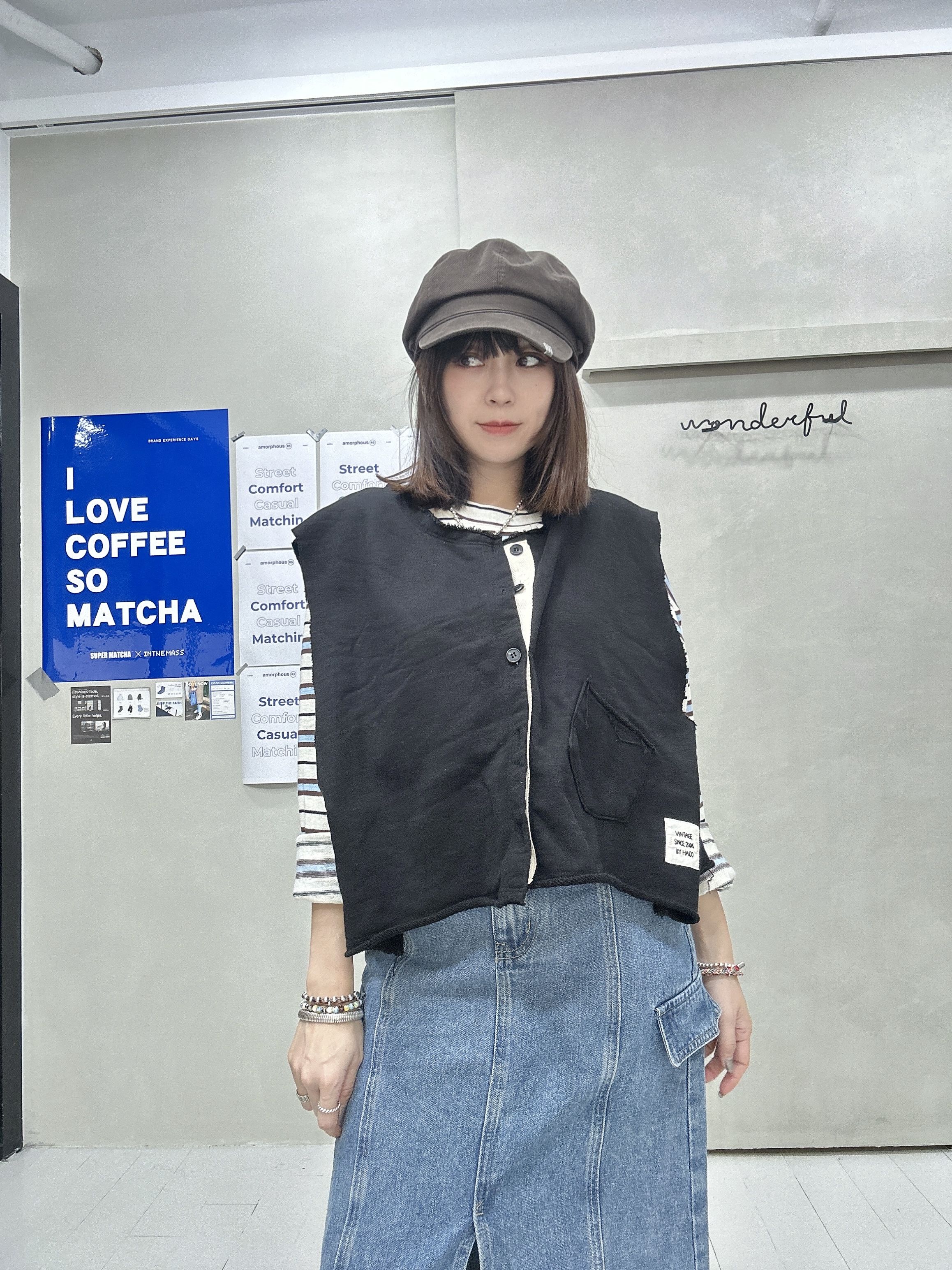 韓國連線 BH33 布貼無袖排扣外罩背心