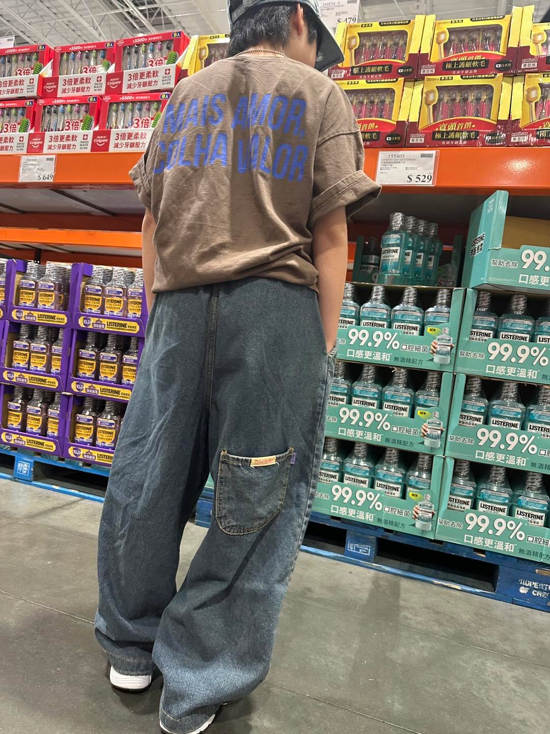#251018051☞ (大童)後口袋下抽繩牛仔寬褲