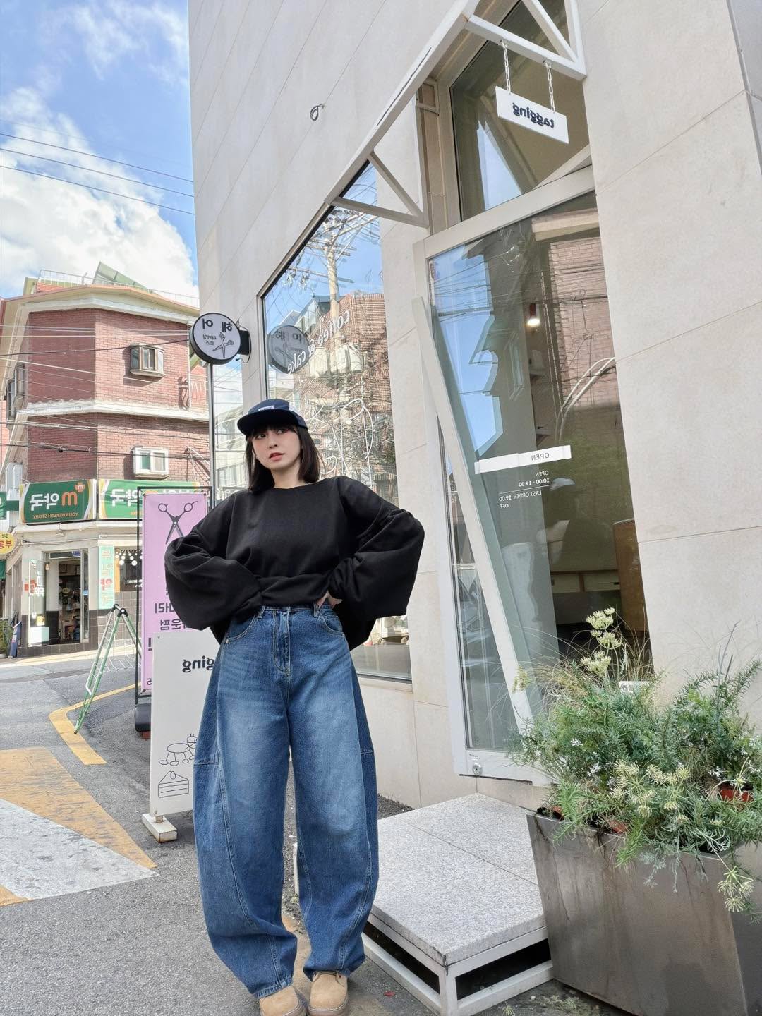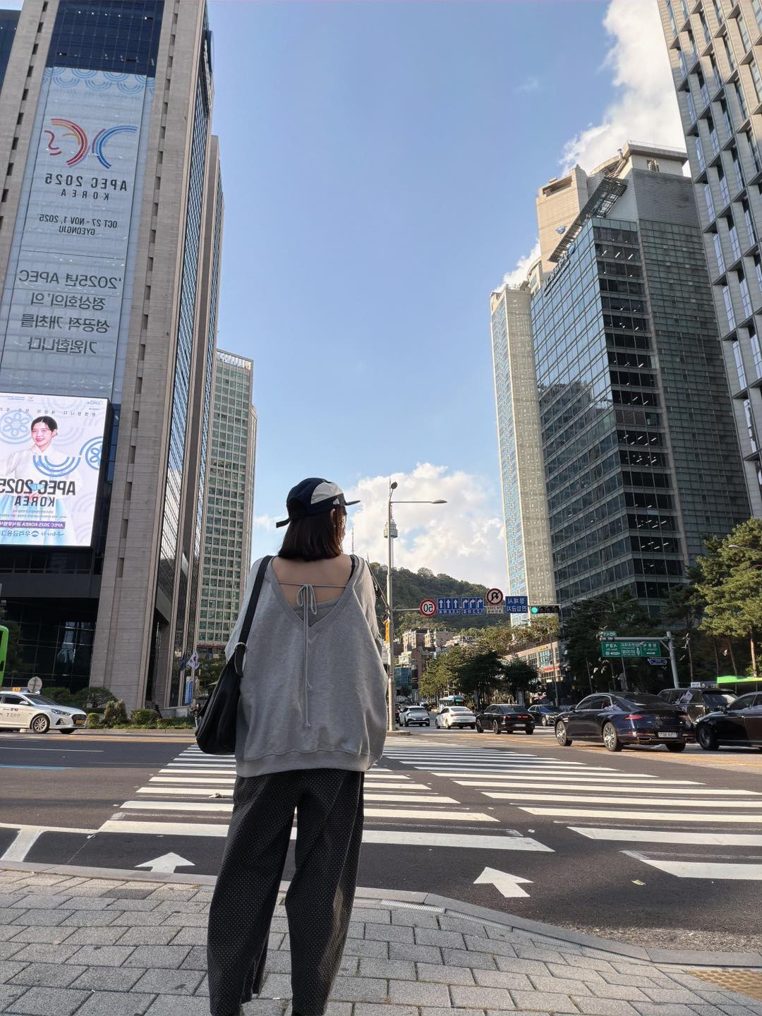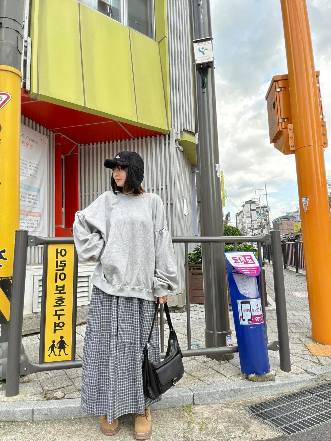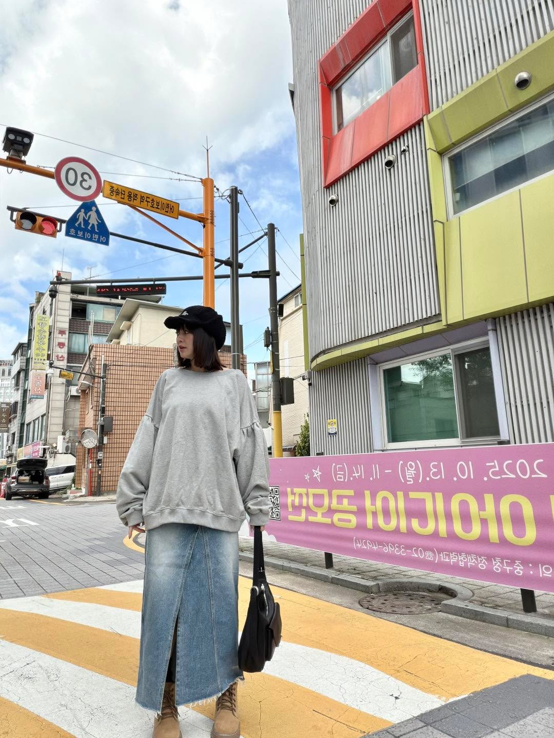 整件版型略帶空氣感,走路時會有那種「微蓬鬆」的韓味。