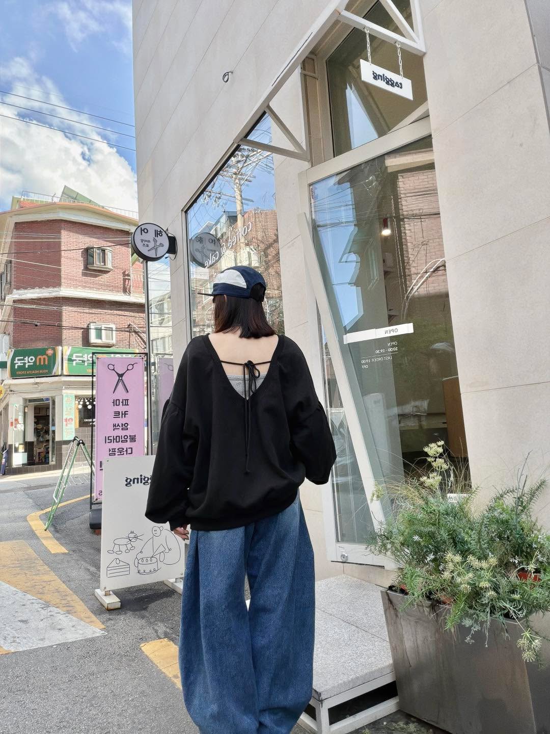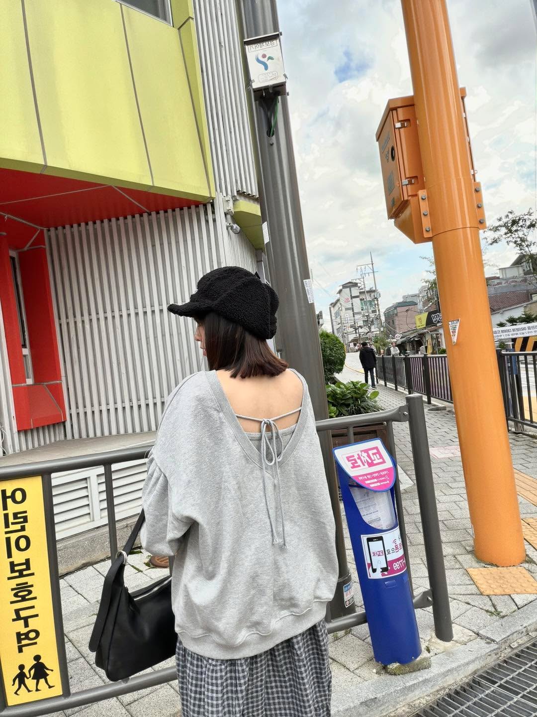 但一轉身~哇嗚~~~~反V領+綁帶設計立刻讓整體變得有亮點