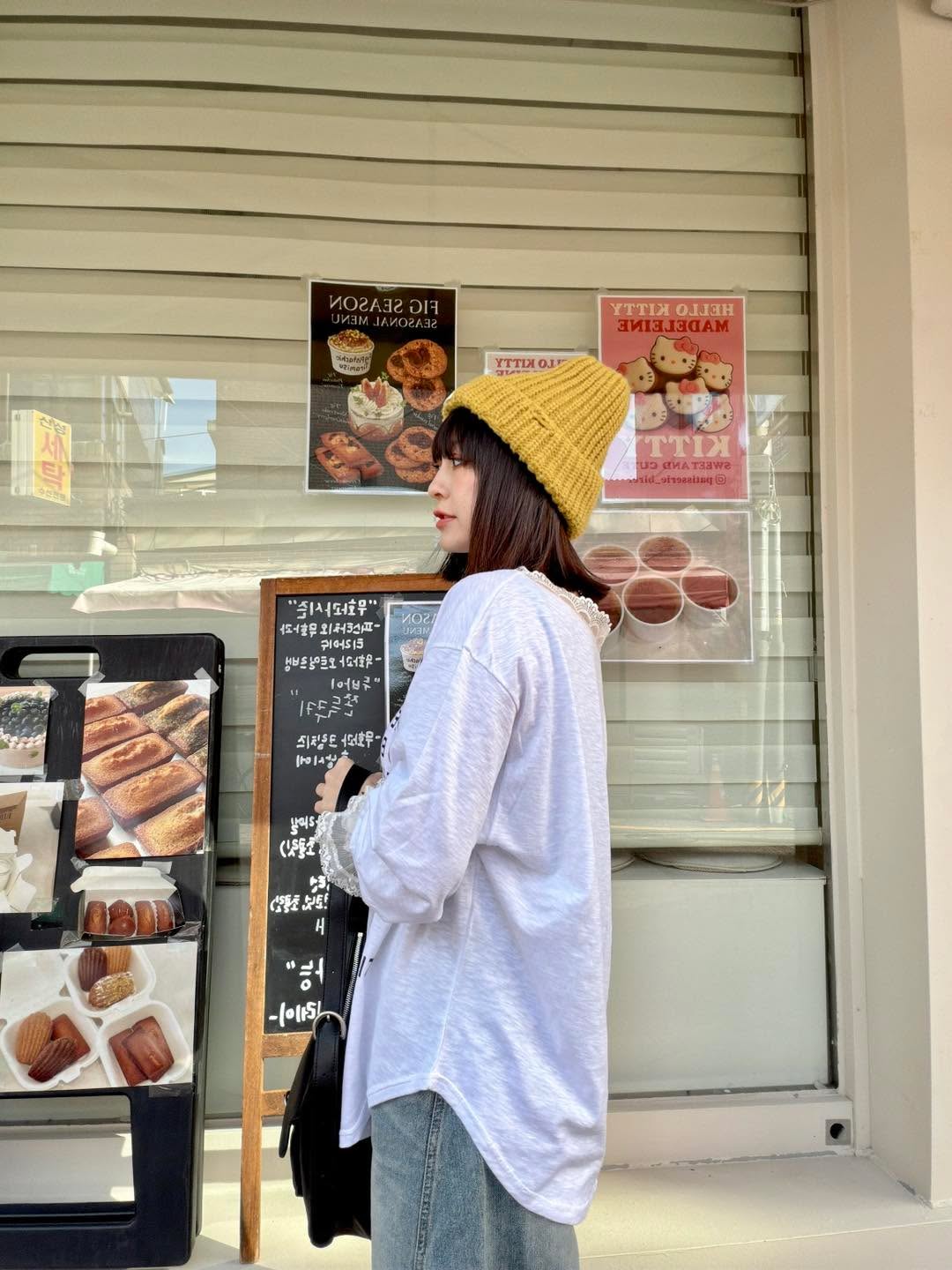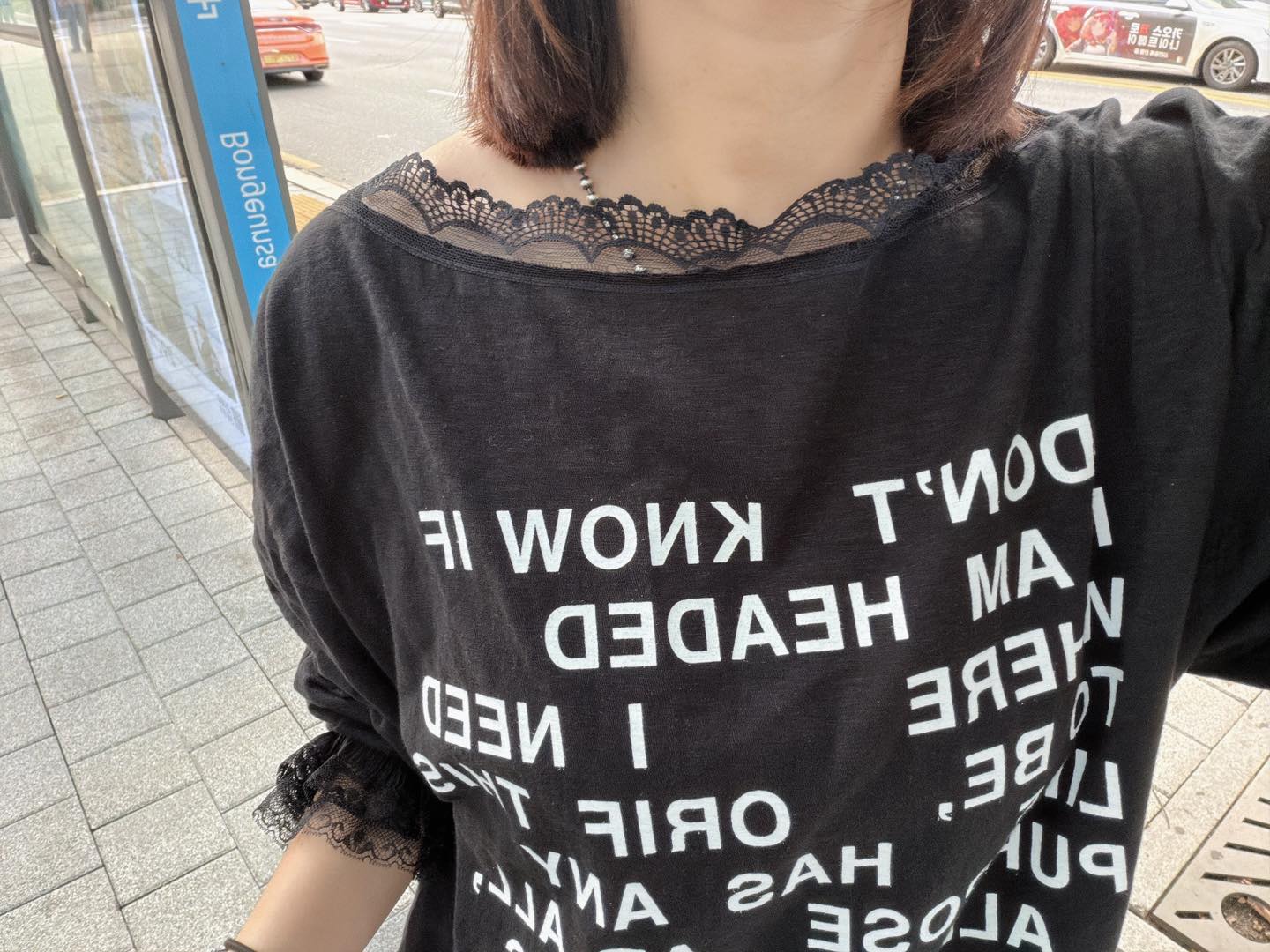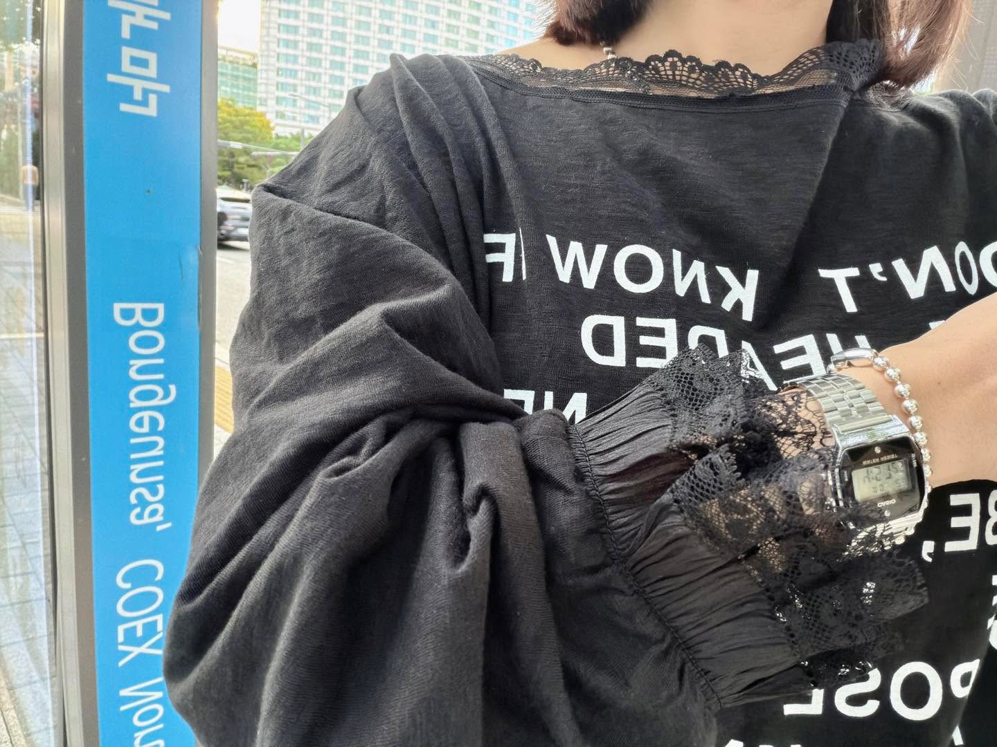 領口有點船型領、又拼上蕾絲,露出的隨性感~~~絕對是人氣NO.1