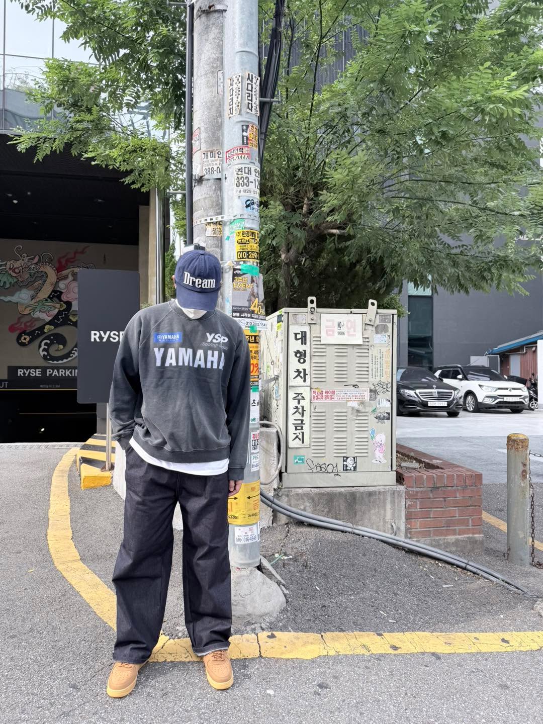 布料是厚磅丹寧棉,有挺度但不僵硬,摸起來扎實有份量感 #是那種能穿好幾年的經典款。