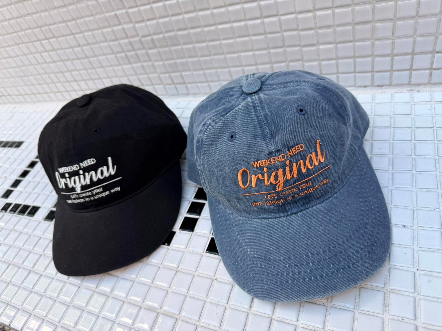 超愛牛仔藍那頂就偏復古感,加上橘色刺繡,撞色的質感特別亮眼