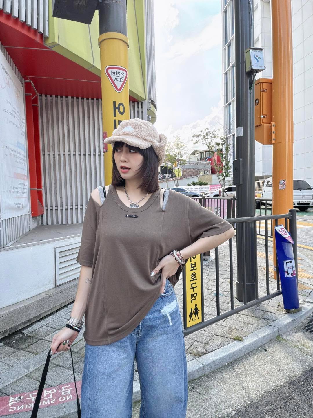 #胸口的小logo織標是韓系感重點細節,讓這件簡單T看起來更像設計師單品。