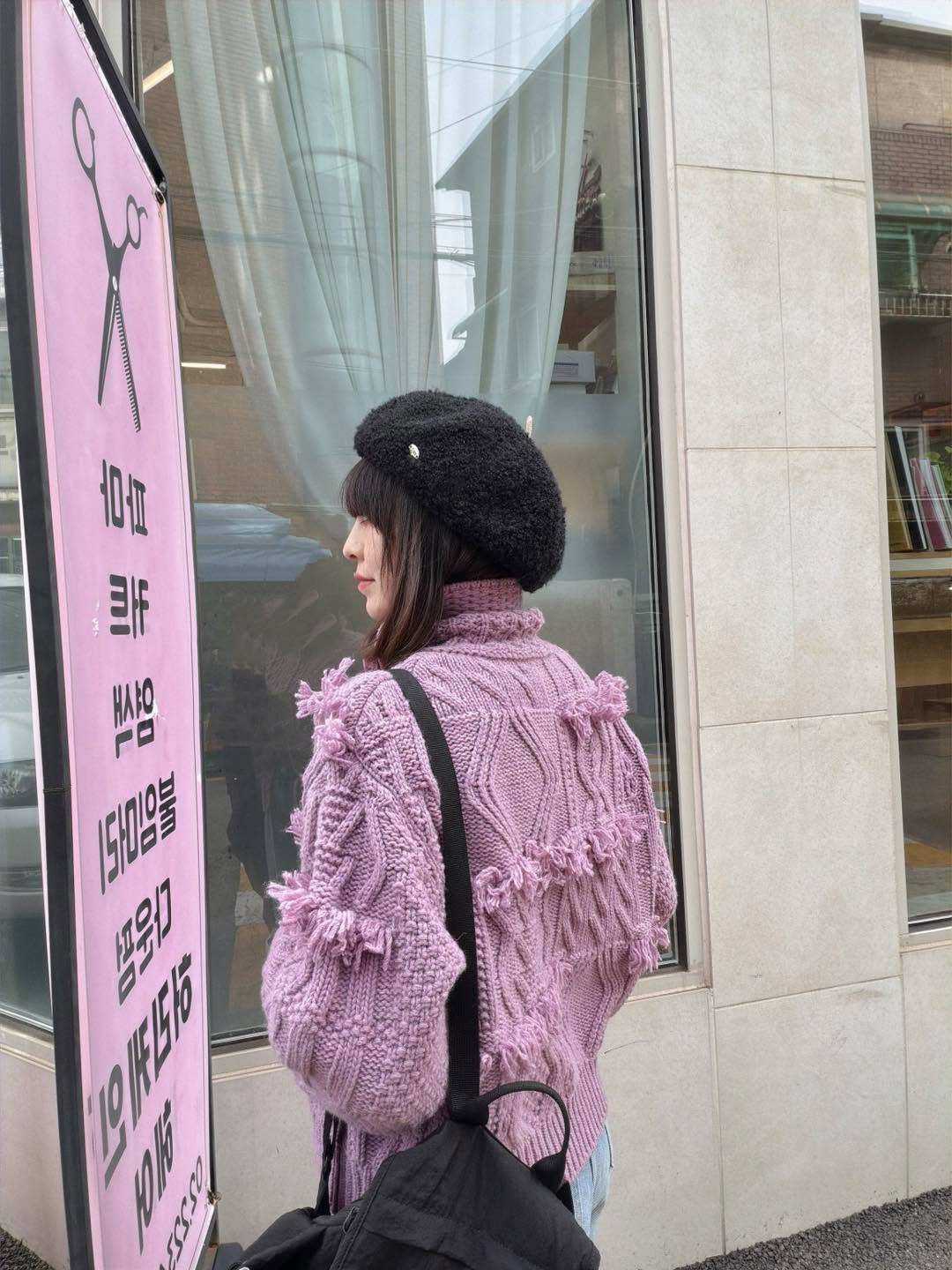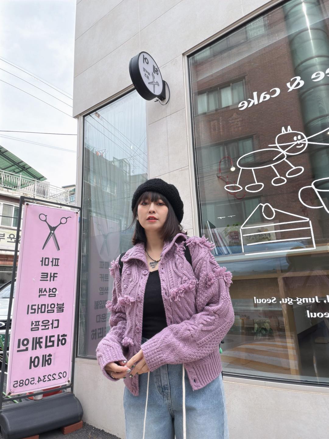 最特別的是那些隨性散落的毛線流蘇,微流蘇感氛圍!點到剛剛好,不會穿起來臃腫!這點超讚