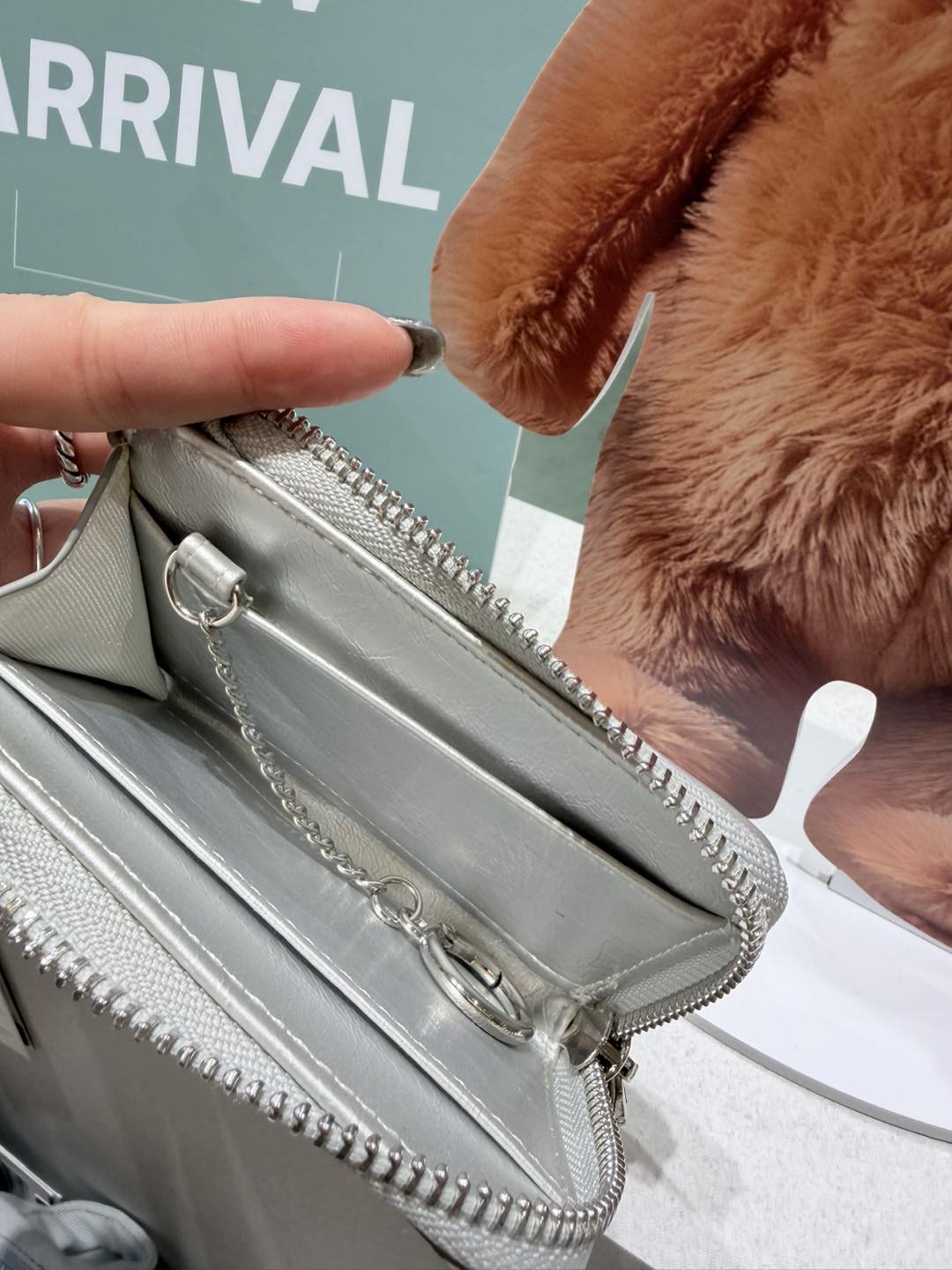 金屬部分使用銀色鏈條與環扣連接,可直接掛在包包或褲耳上,
