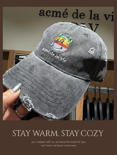 • 韓國專櫃品牌代購快閃 Bi350 ADLV 彩色熊刷破丹寧帽 s.o NT.$720