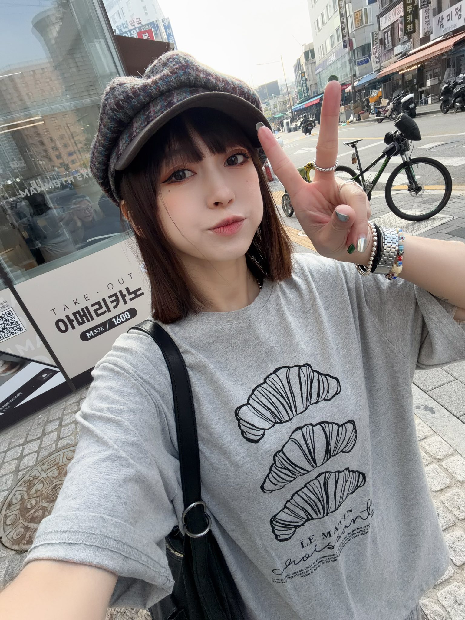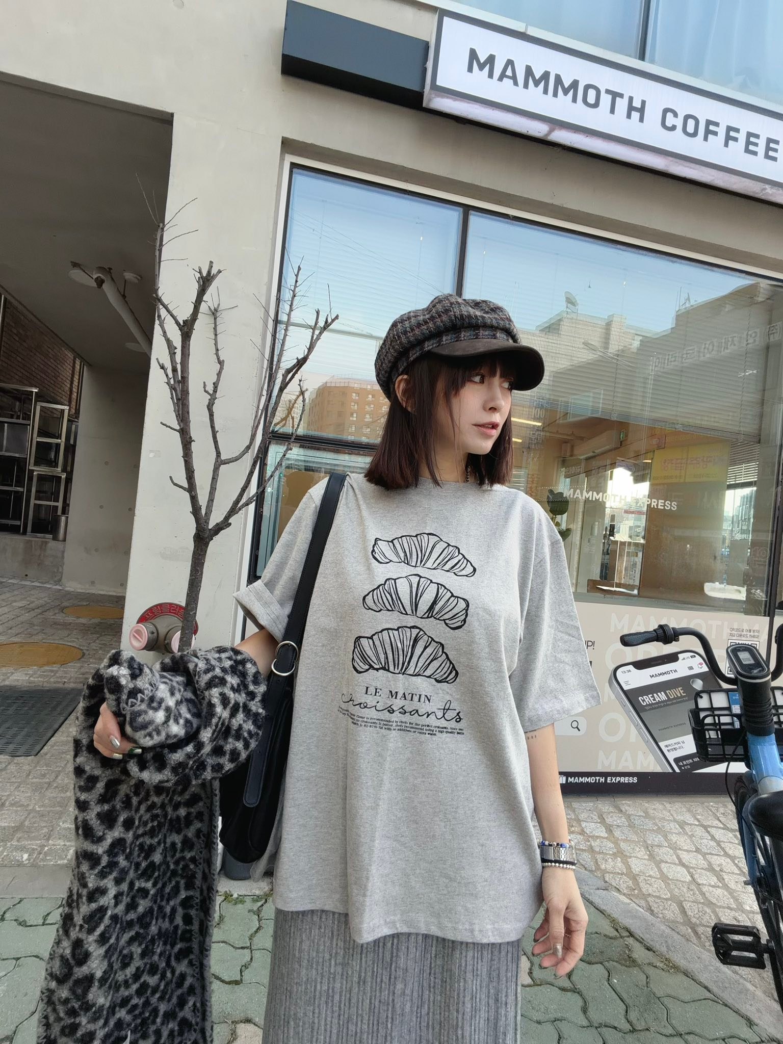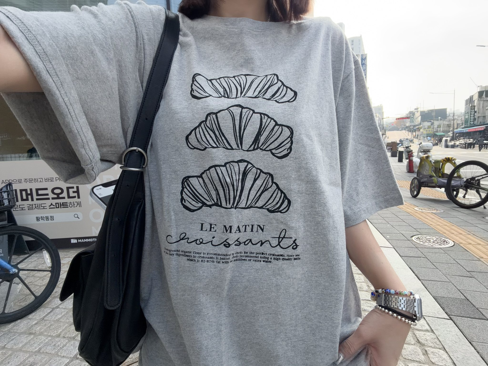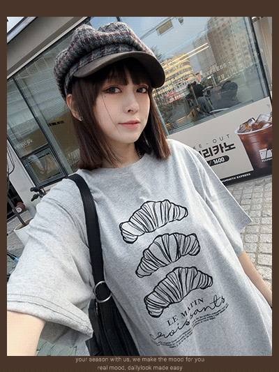 韓國連線 Bi124 法式可頌插畫寬版 Tee