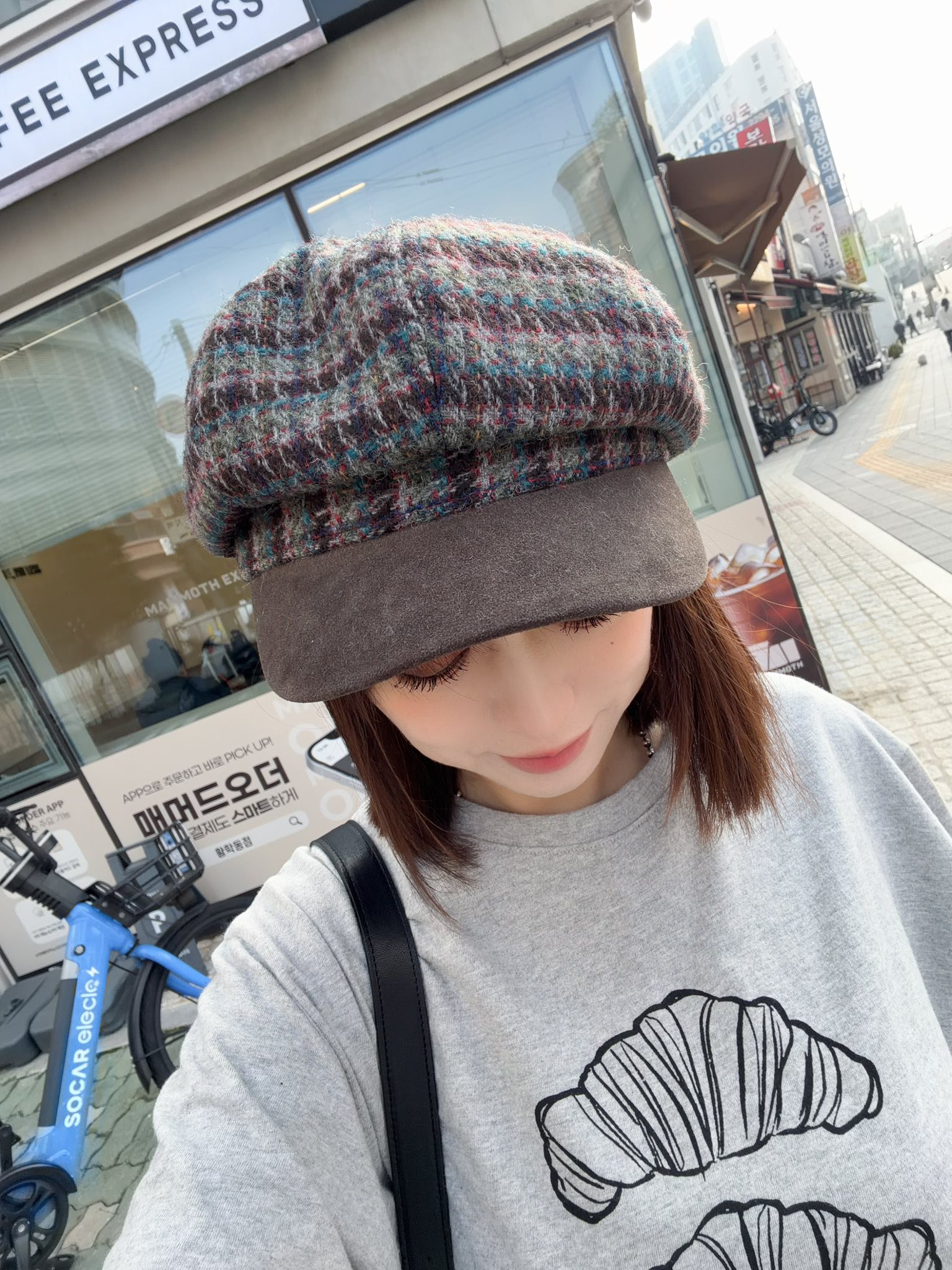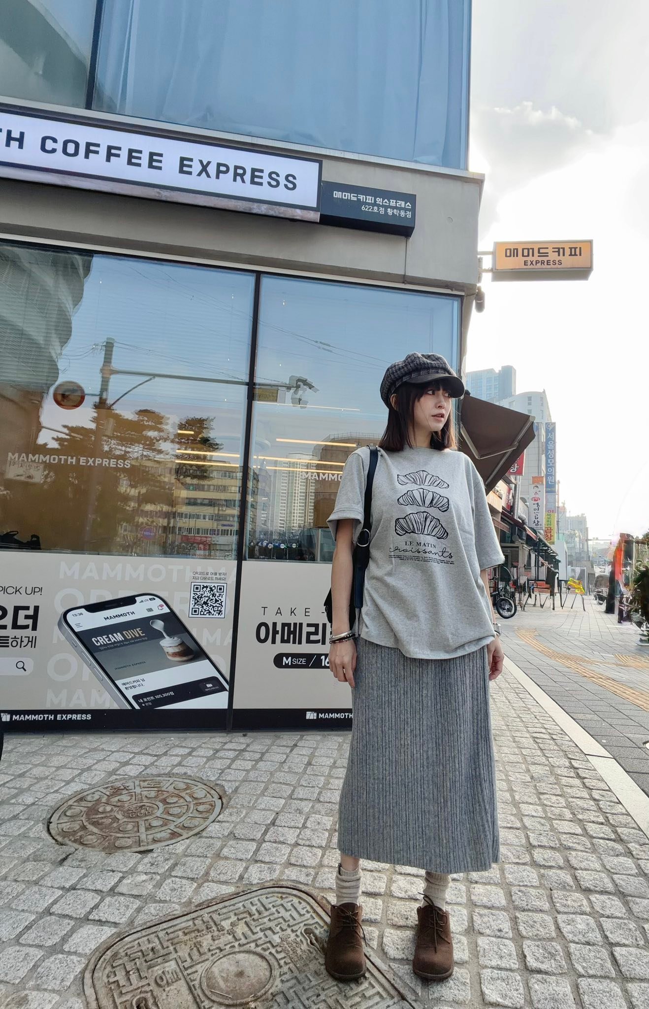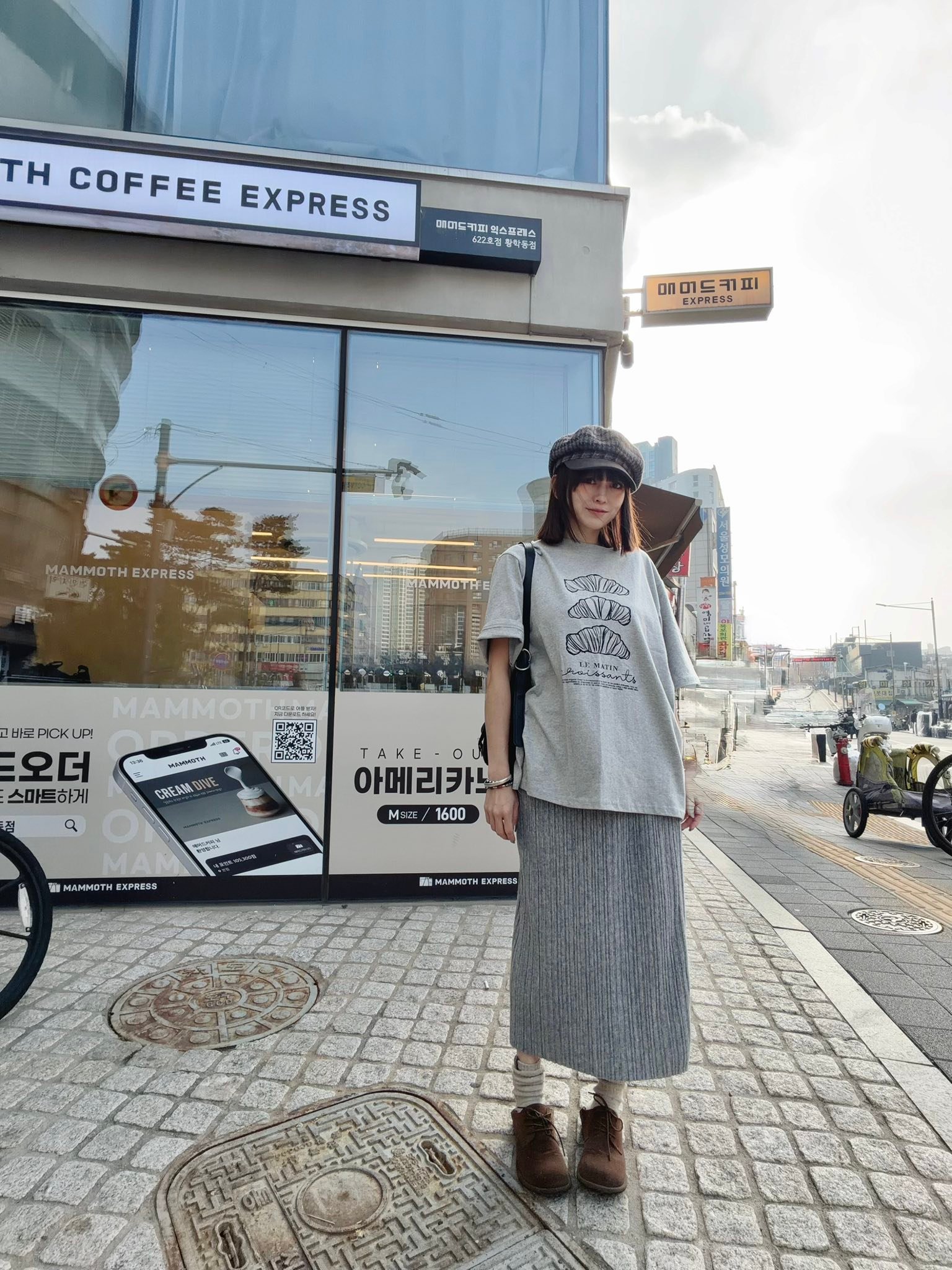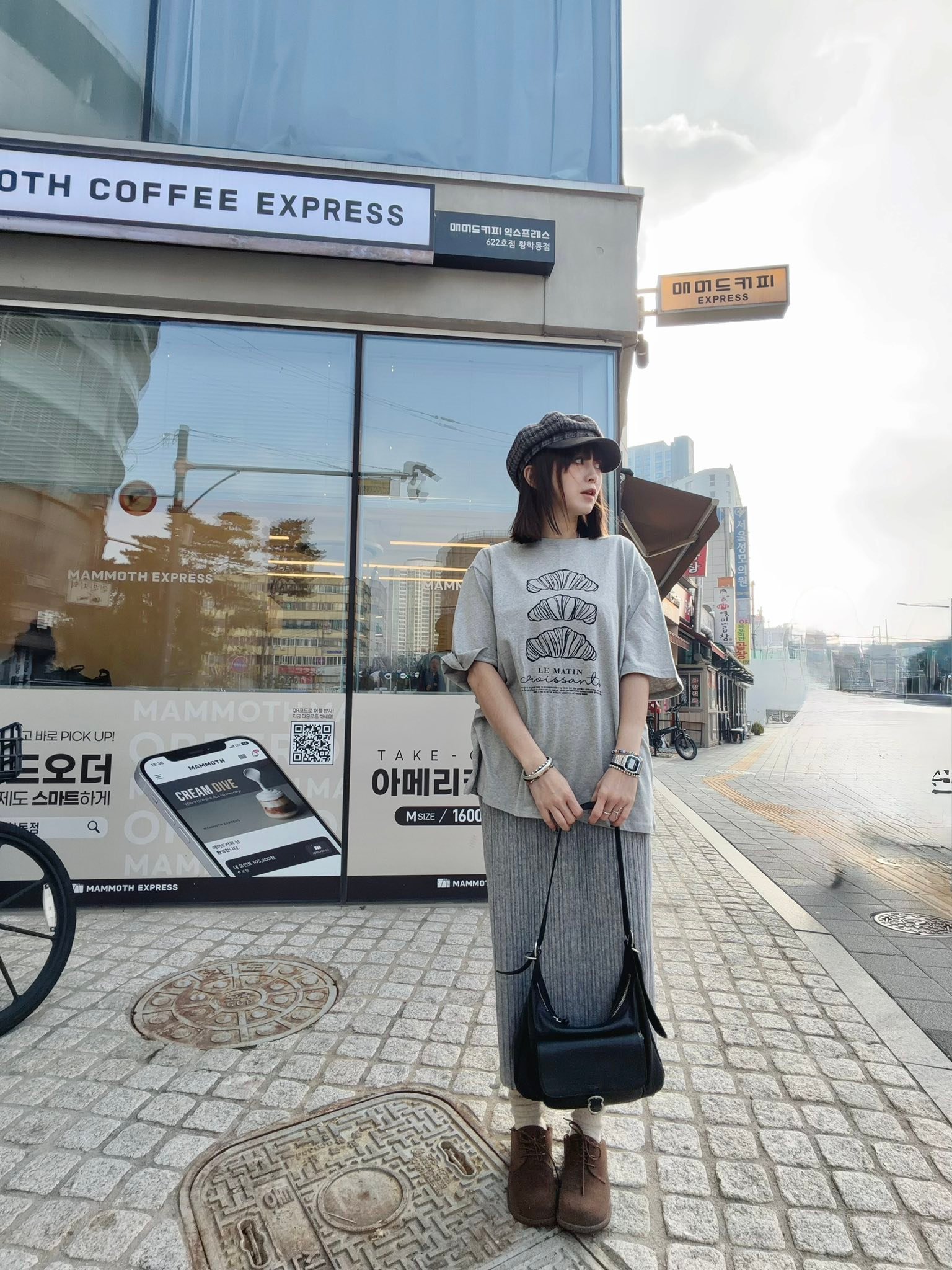 韓國連線 Bi124 法式可頌插畫寬版 Tee