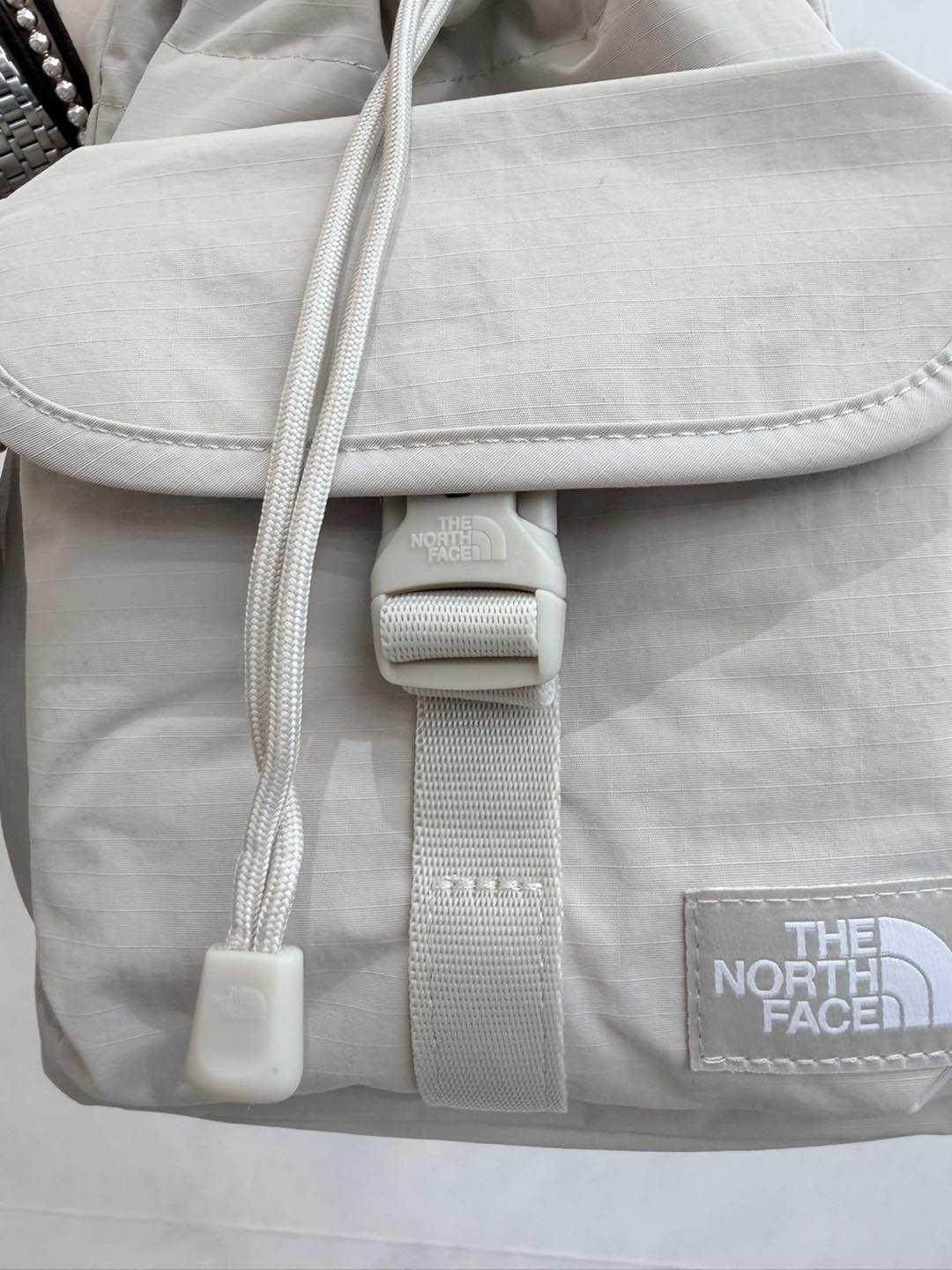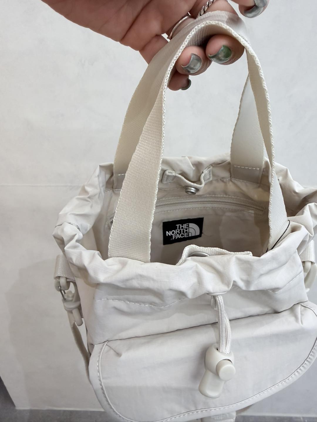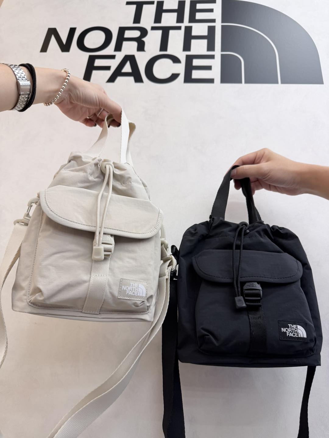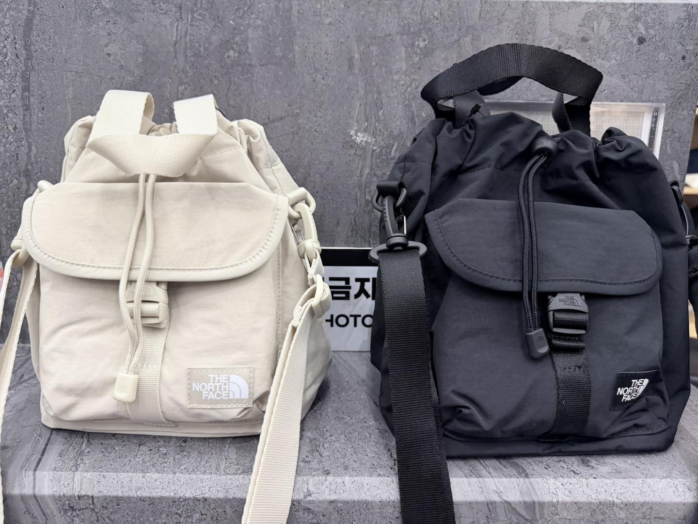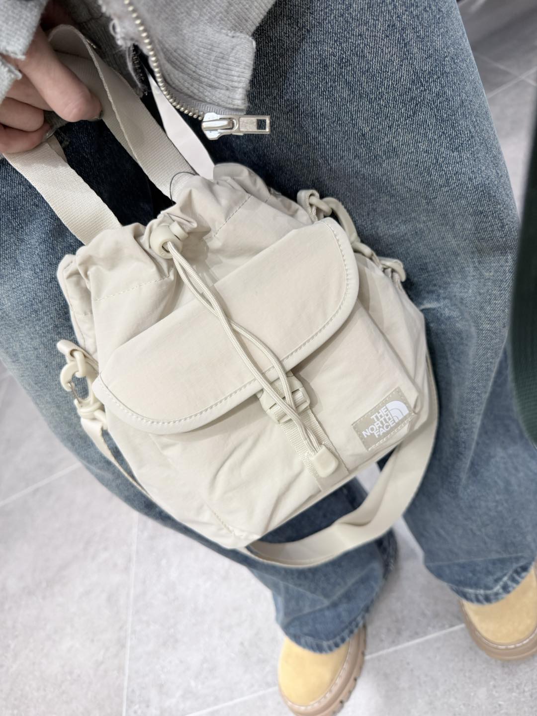 上方是 抽繩開口+壓扣設計,防潑水尼龍布料耐用又輕盈,