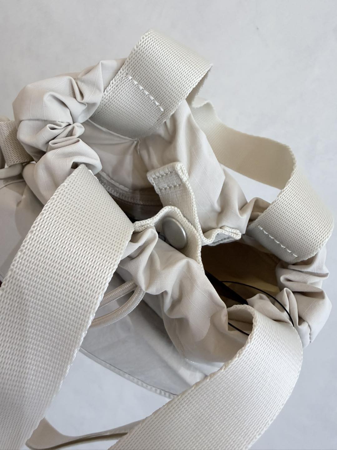 包型是小巧立體的水桶設計,容量剛好能放手機、錢包、小水瓶、太陽眼鏡等隨身物。