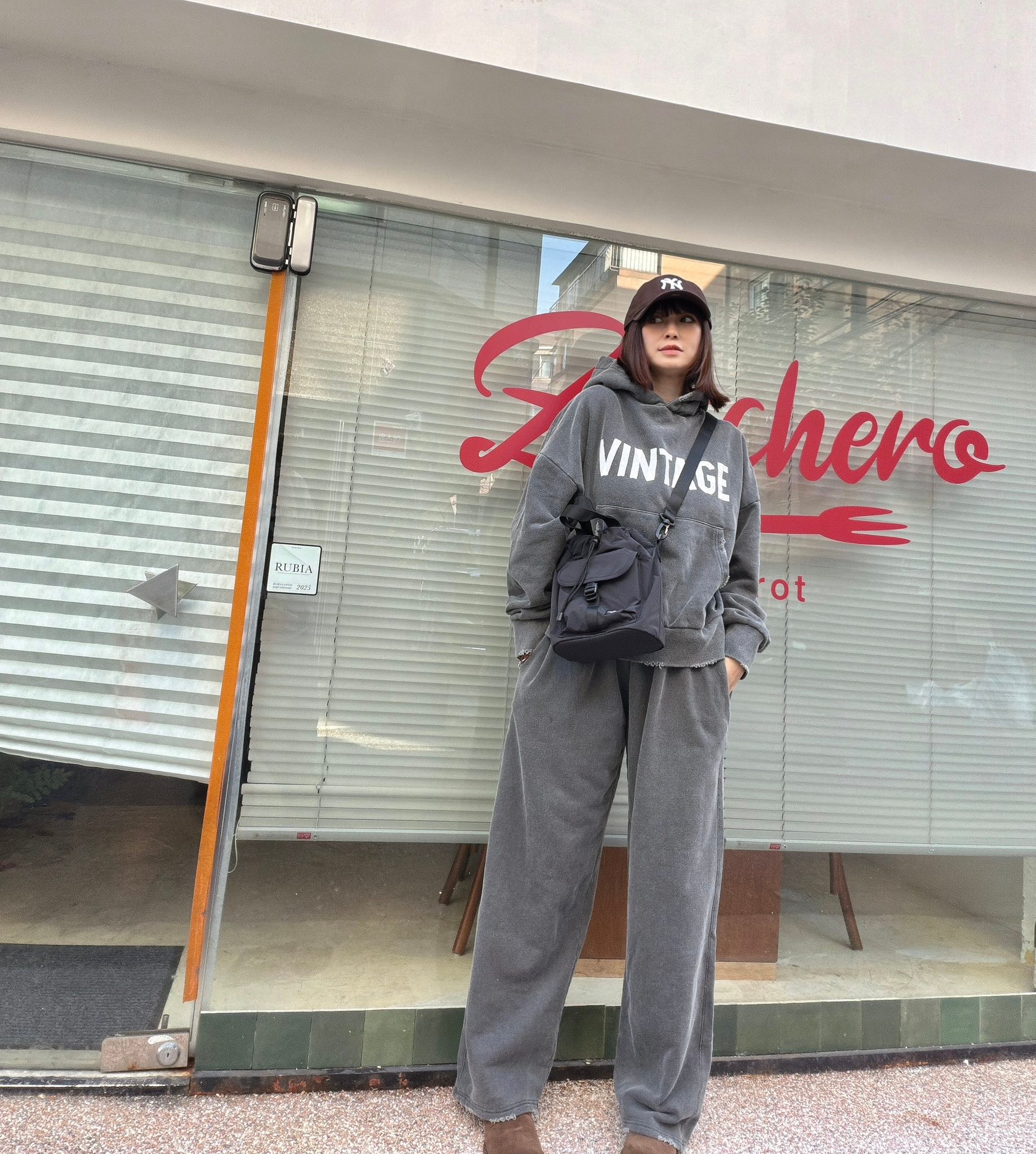 整體使用 霧化洗舊!灰色呈現霧霧的、帶復古感的質地,非常高級的顏色