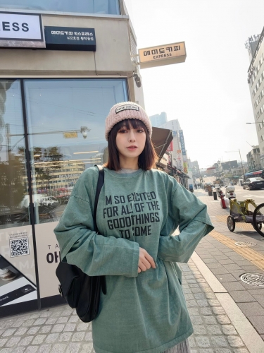• 韓國連線 Bi146 假兩件式水洗綠英文長T NT.$910