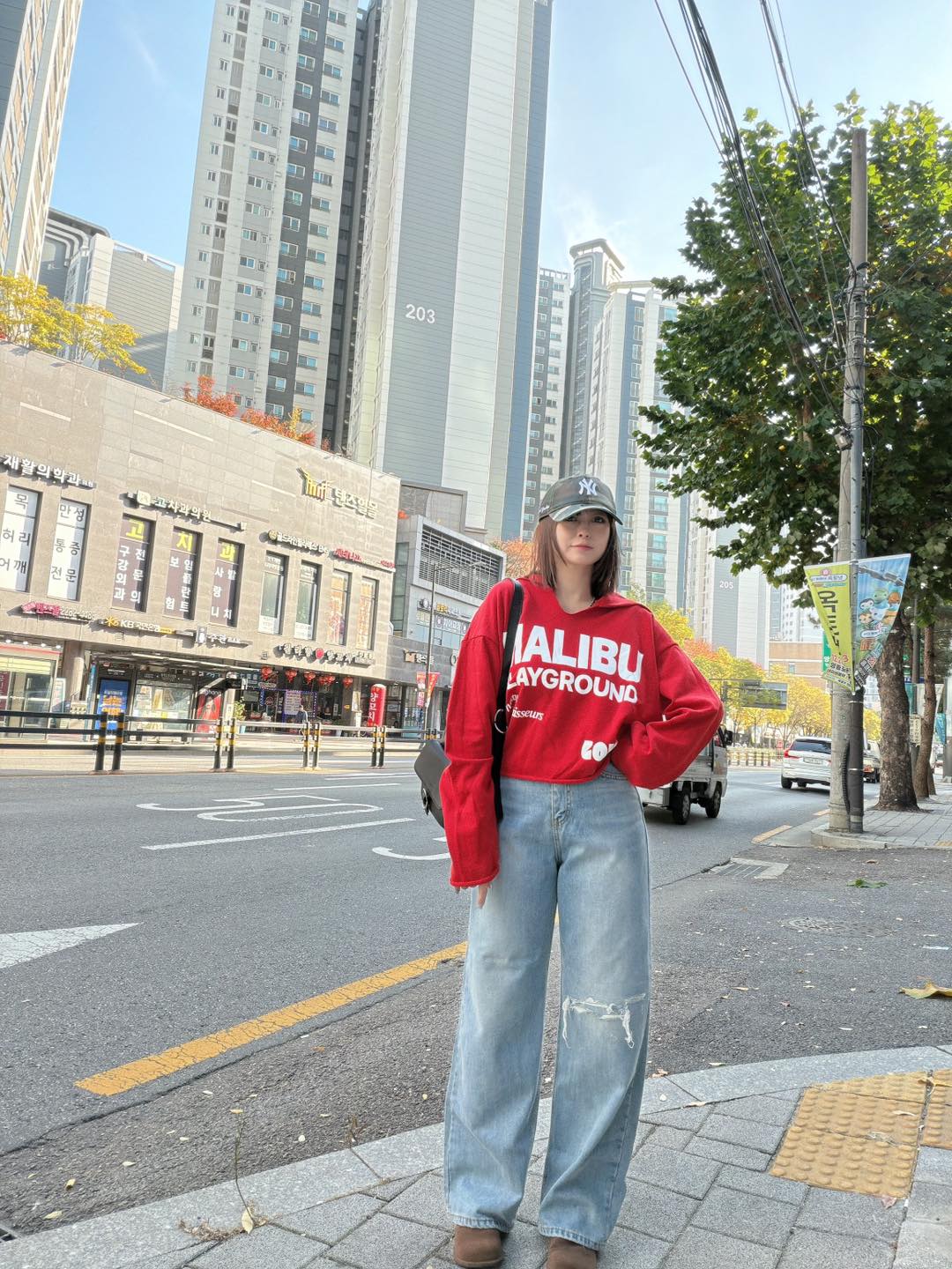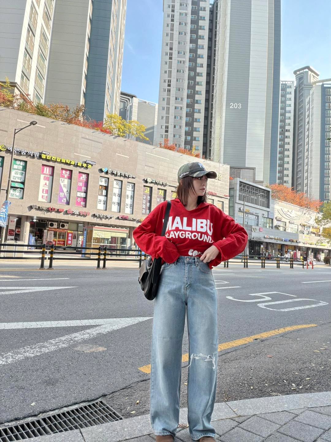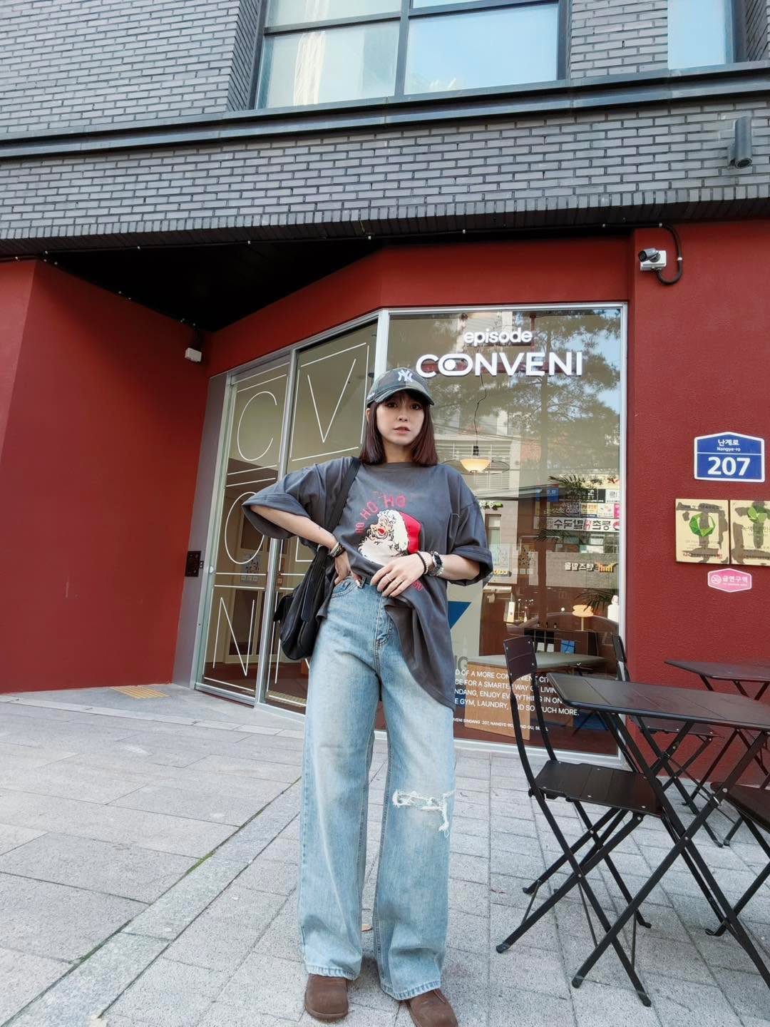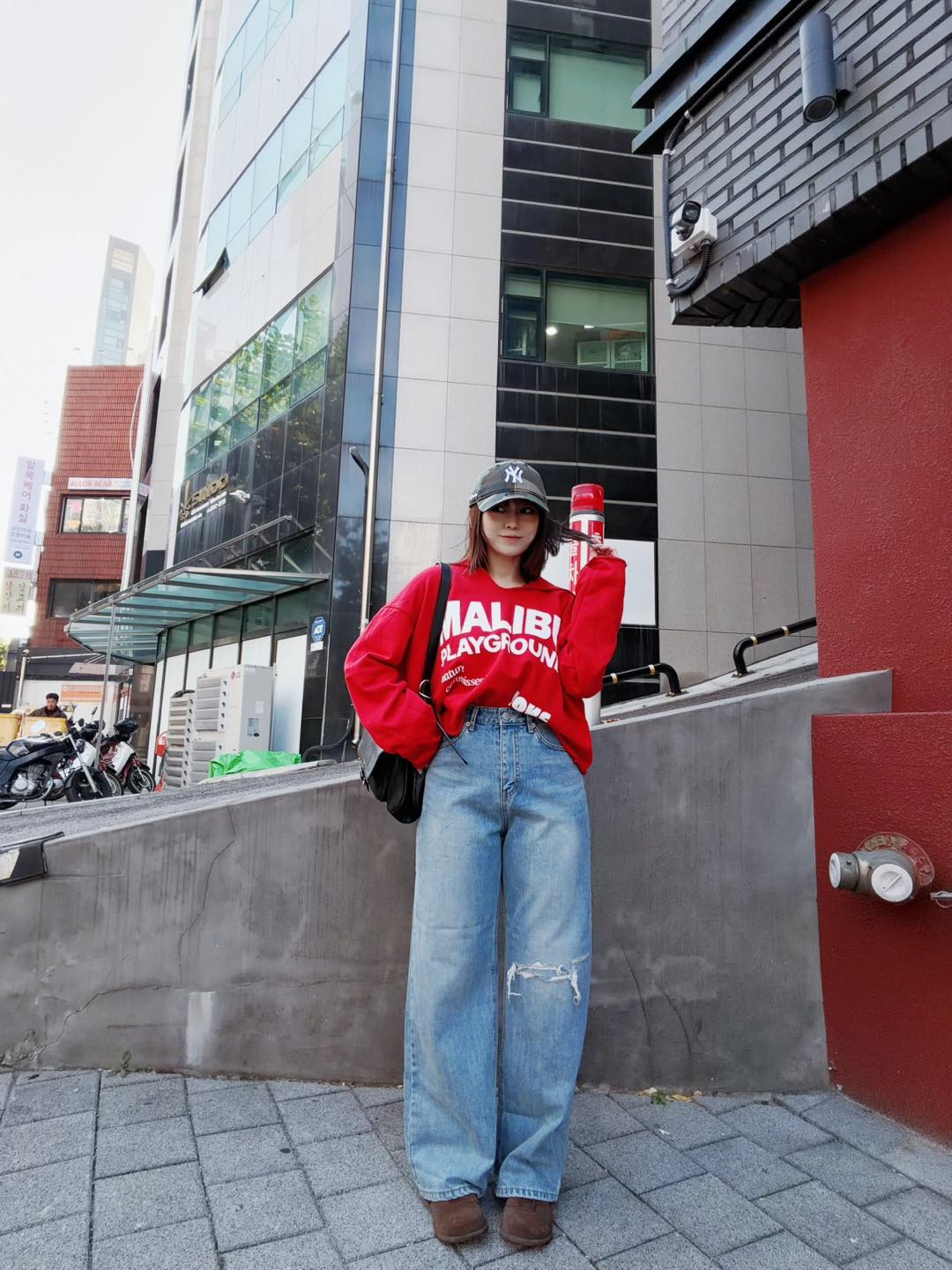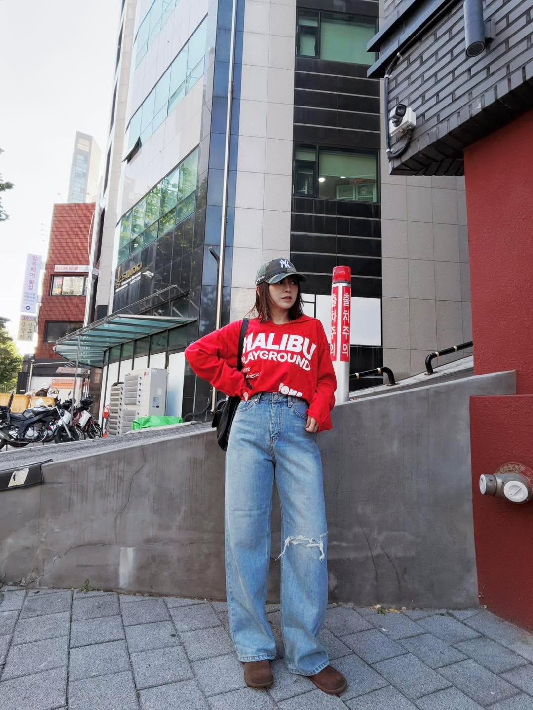 直筒的寬度抓得剛好,不會變成男友褲的臃腫感,