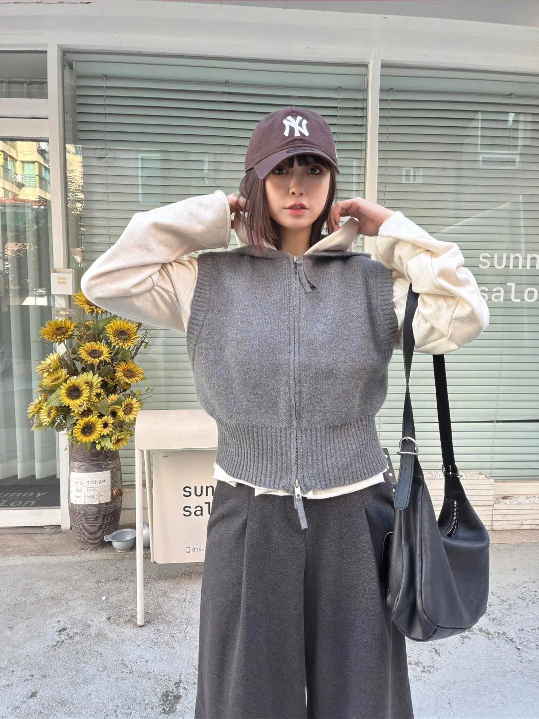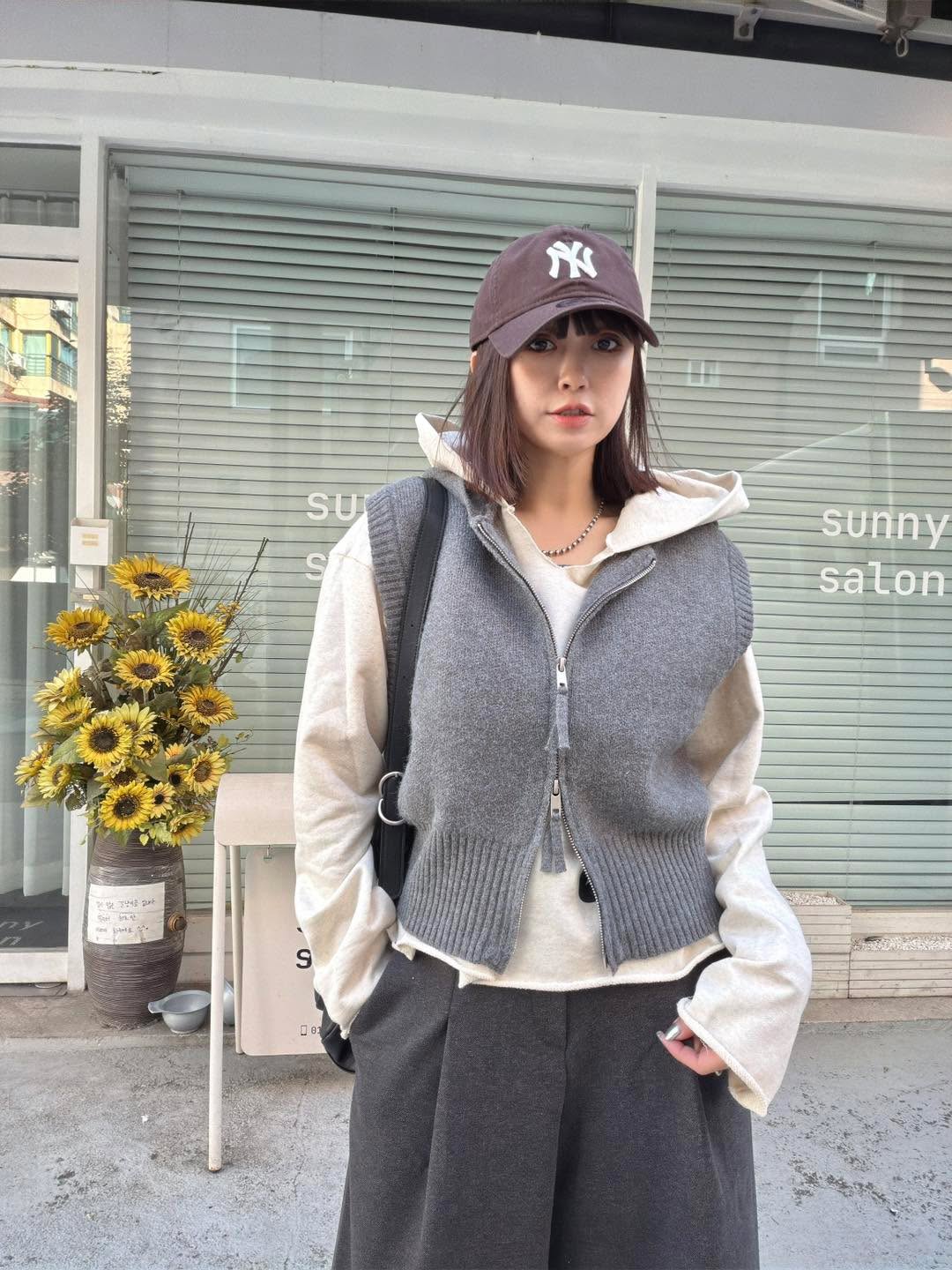韓國連線 Bi160 上下拉鍊連帽背心外套