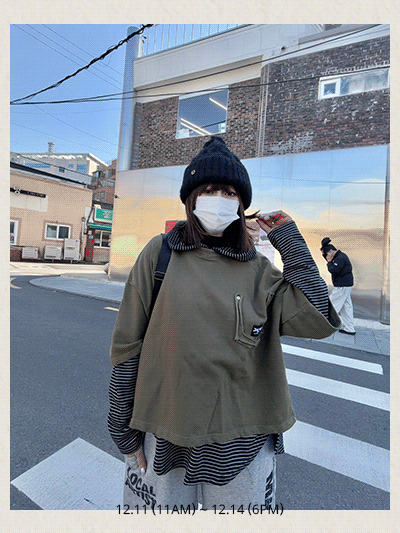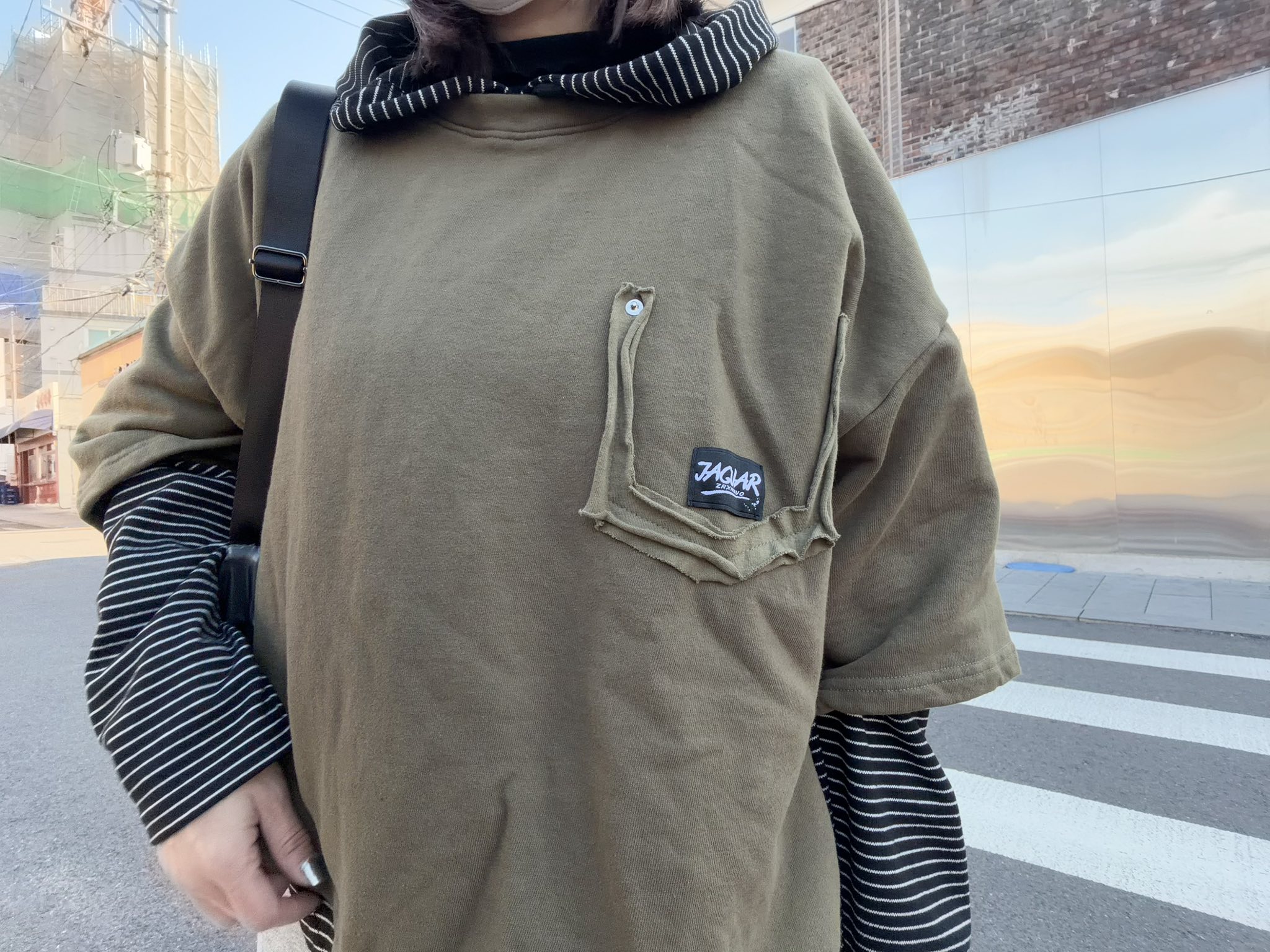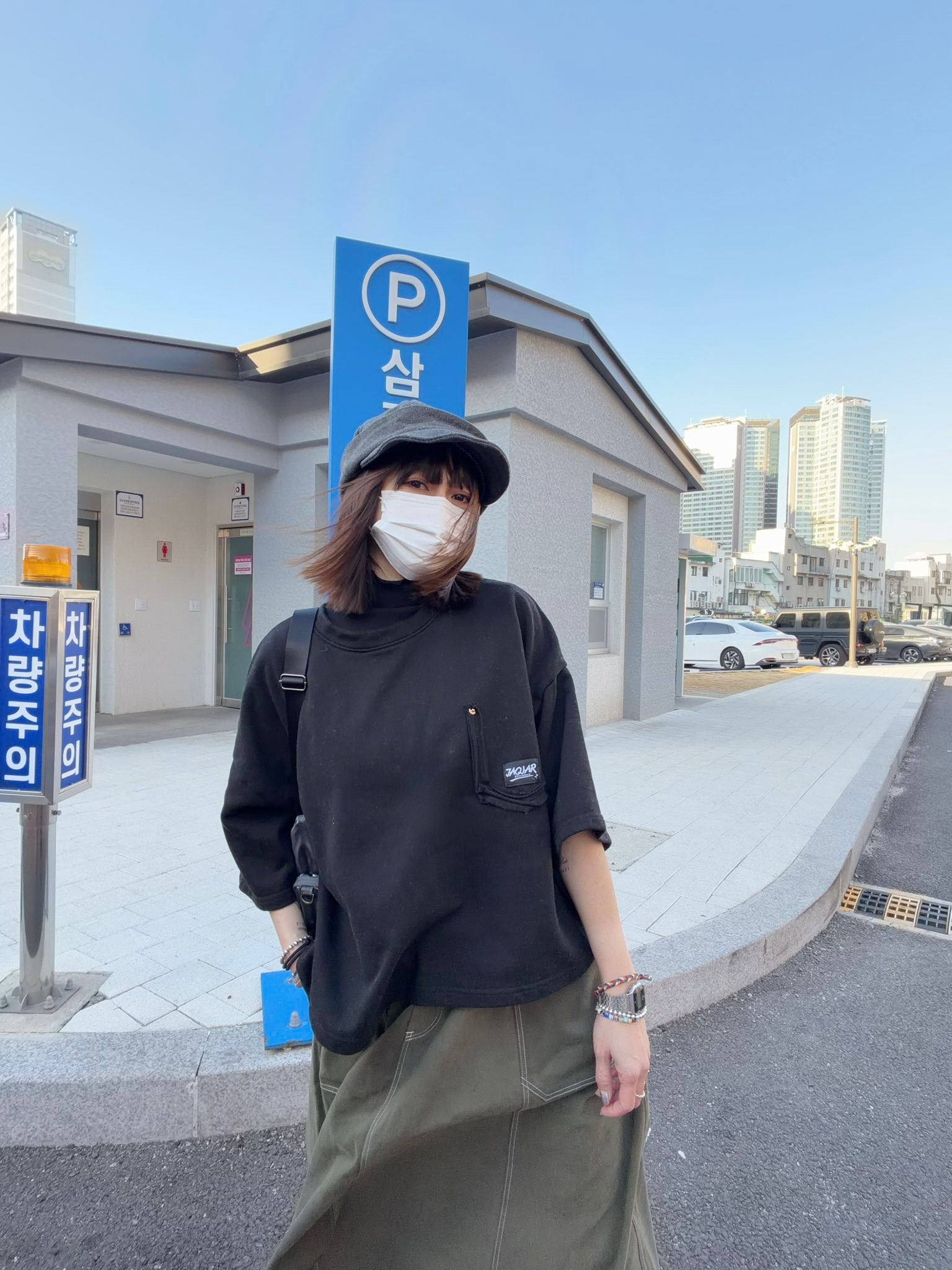 韓國連線 BJ21 口袋匡剪裁設計五分袖上衣