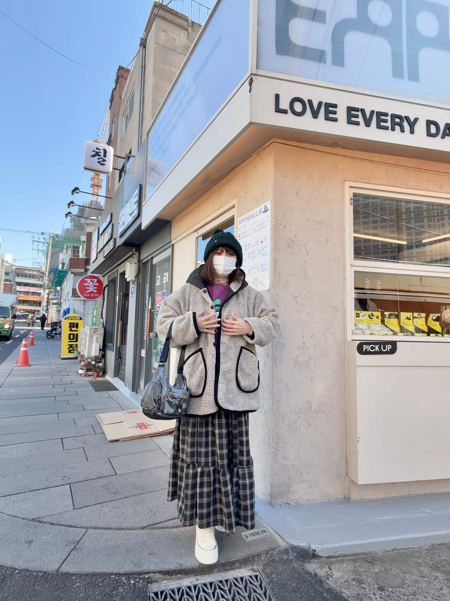 完全是韓國女生冬天最愛的那種 可愛+酷感自由切換的兩面穿外套。