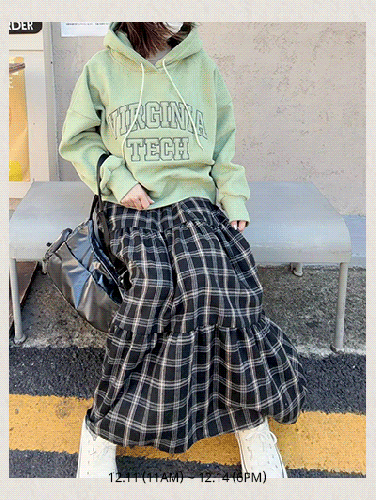 • 韓國連線 BJ13 暖系磨毛格紋三層超顯瘦長裙 NT.$680