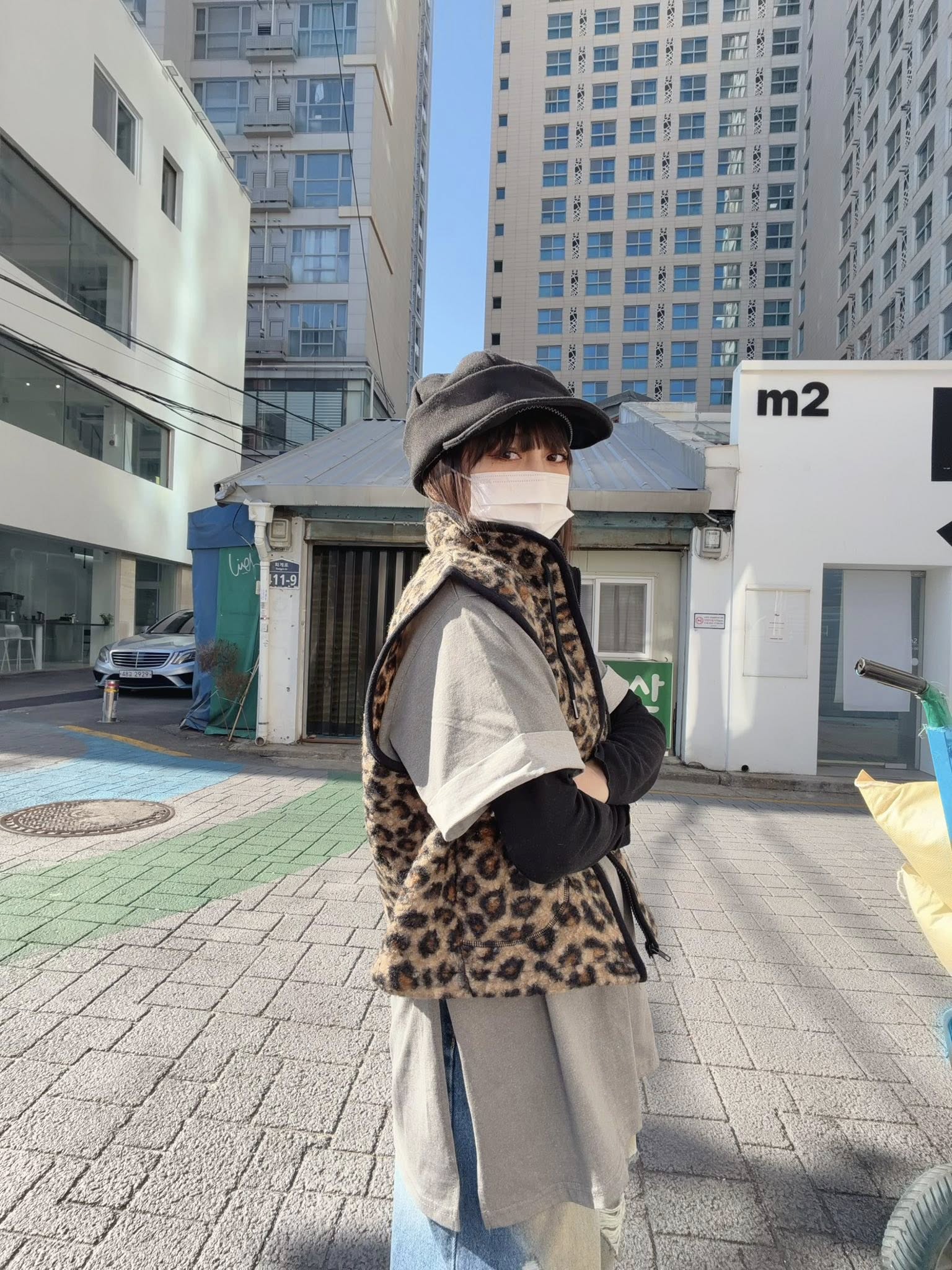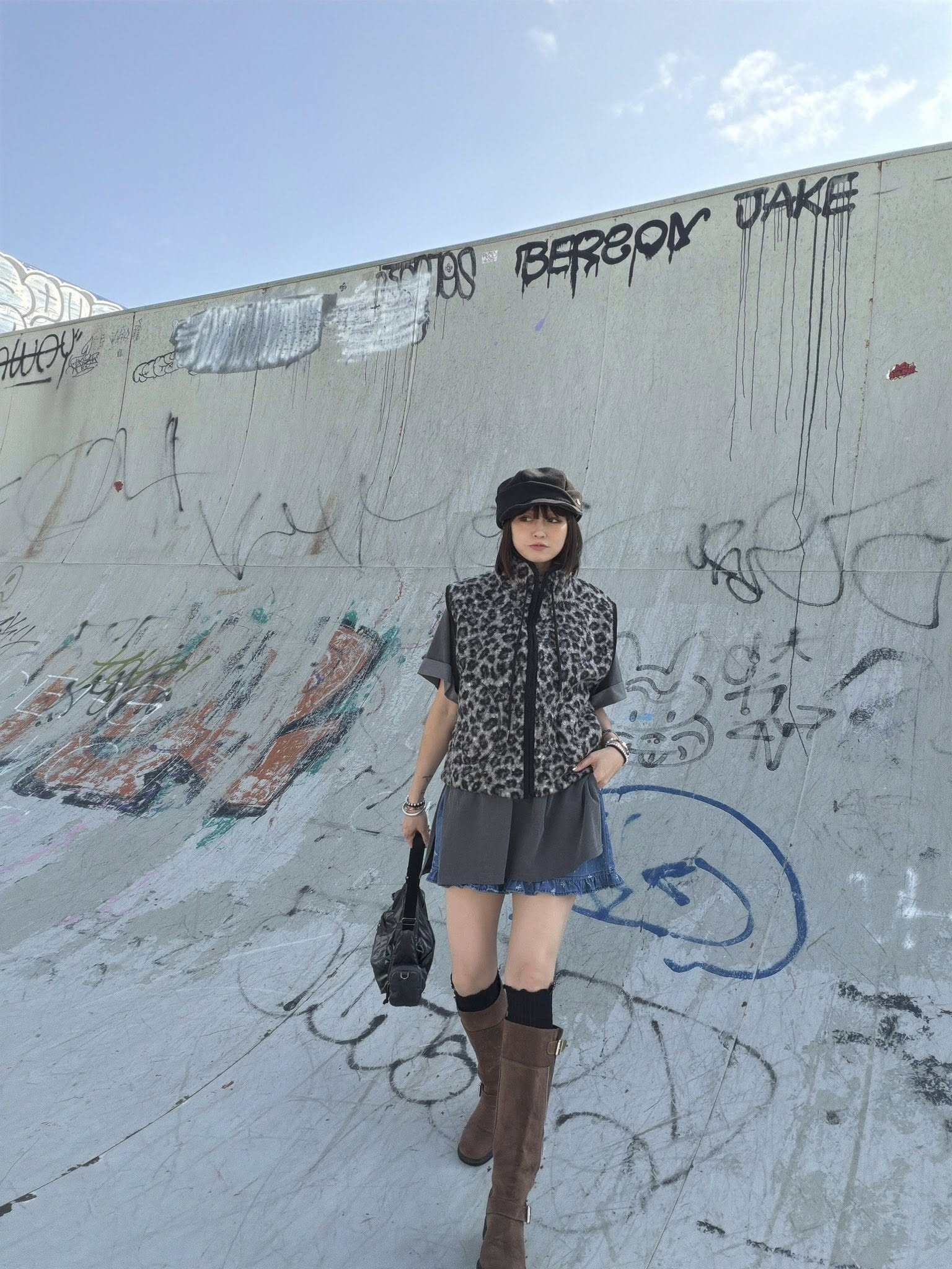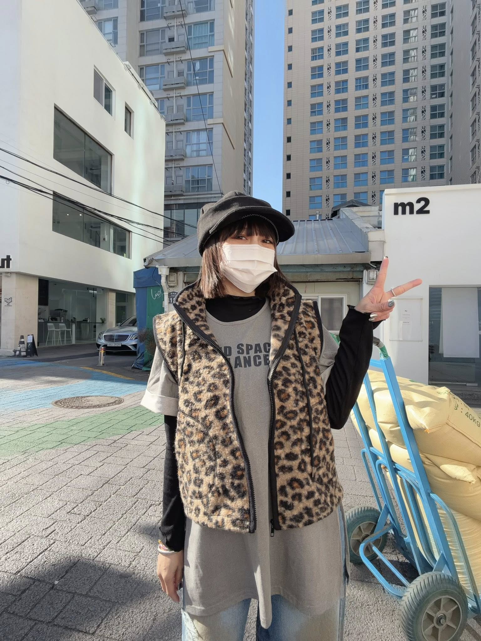 外罩大衣或羽絨 → 豹紋露出來直接加分