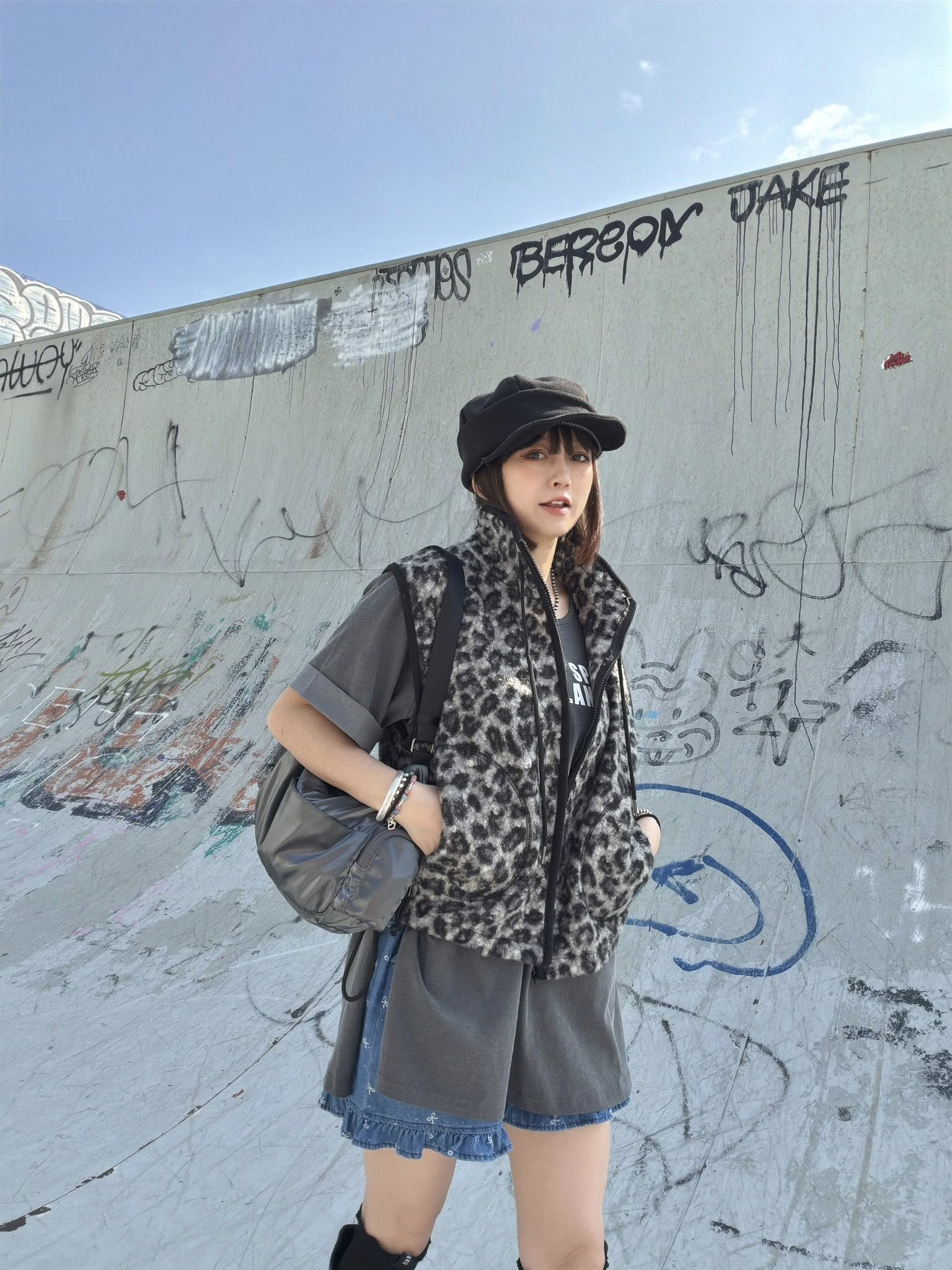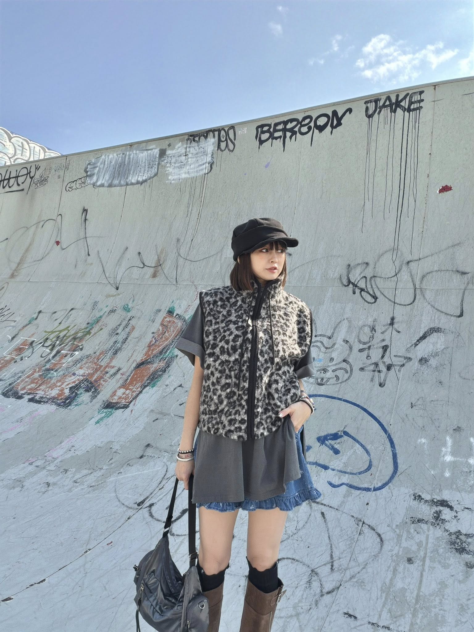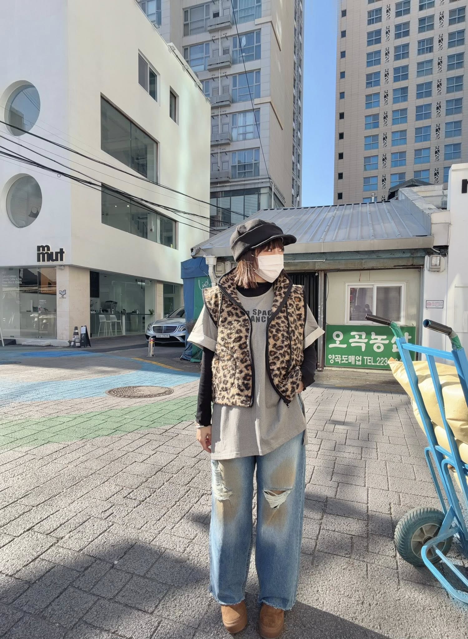 外罩大衣或羽絨 → 豹紋露出來直接加分
