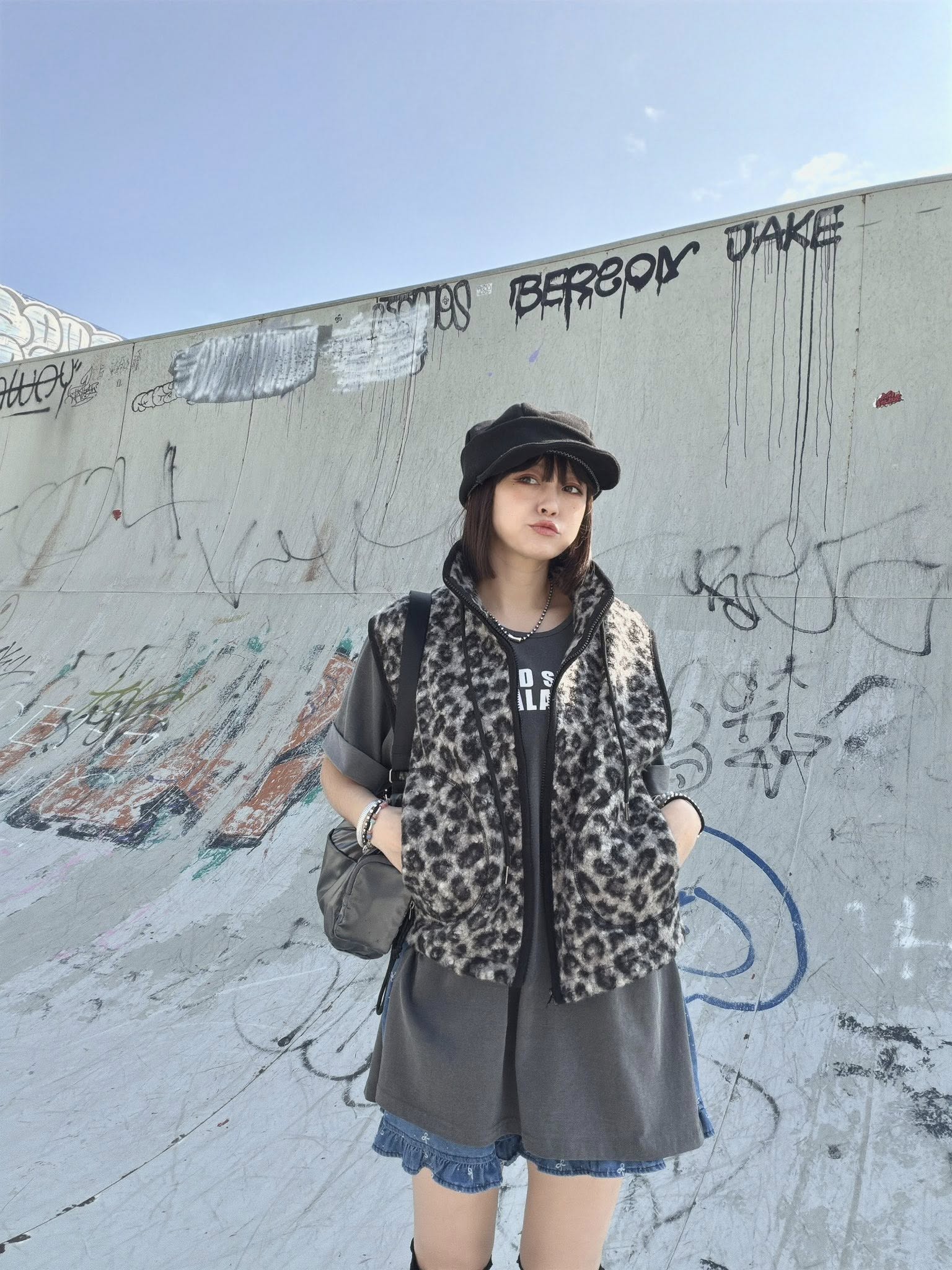 這是短毛絨豹紋,輕薄的布料讓你穿出風格卻完全不臃腫