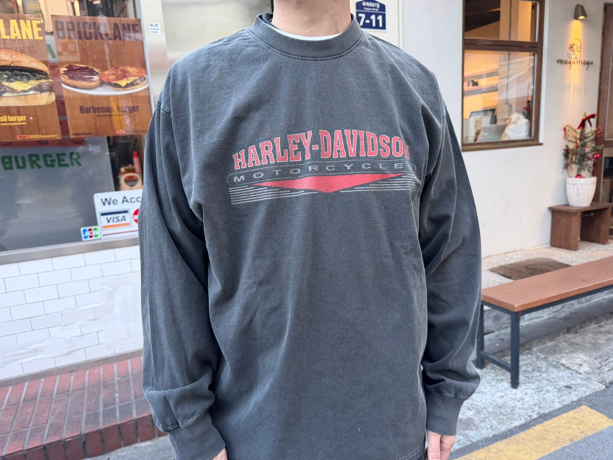 整體呈現自然偏舊的灰色調,布面有明顯的水洗層次感,不會太黑,也不會太白,顏色非常好搭。