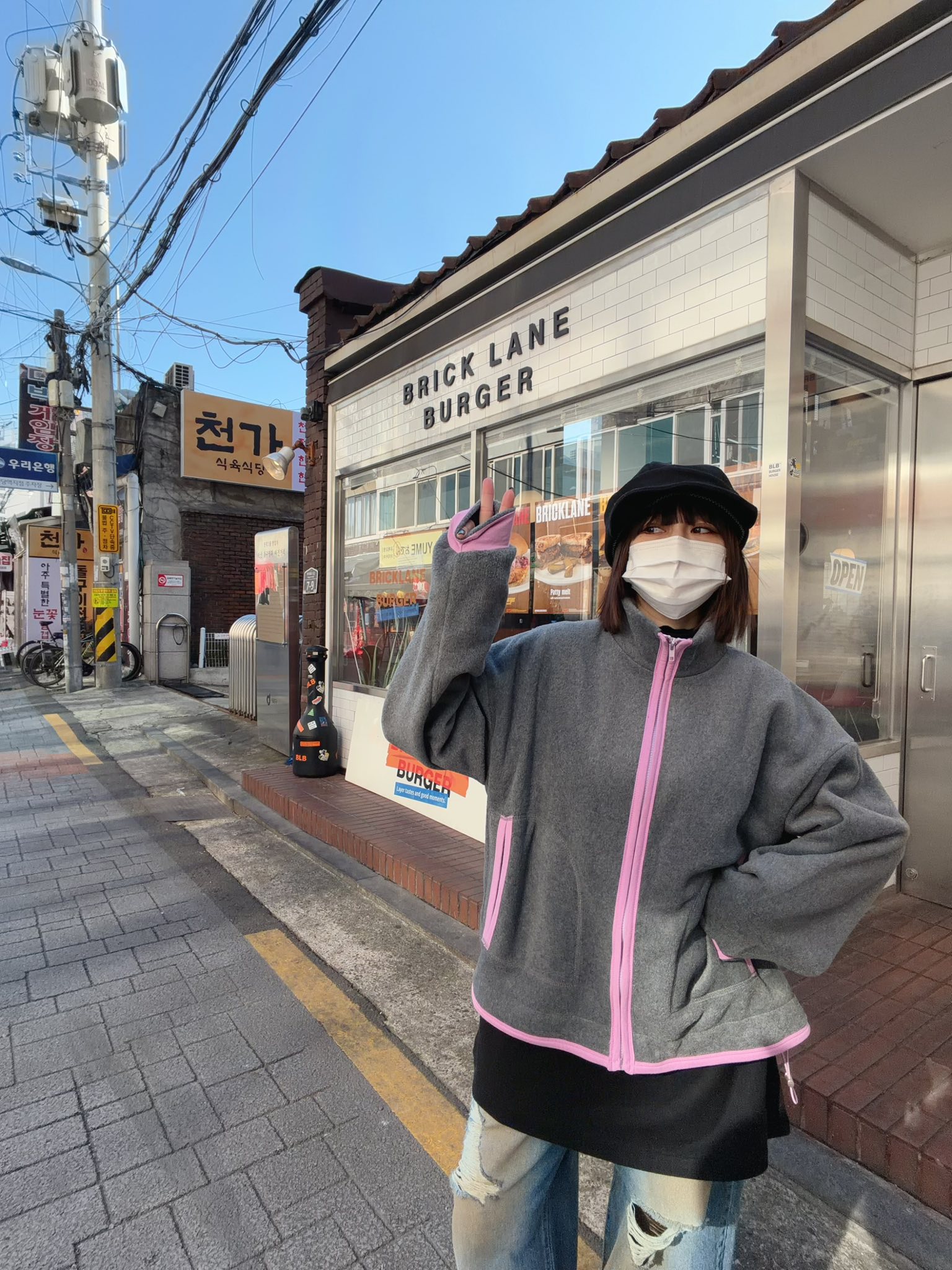 讓基本色外套多了一個很乾淨可愛的撞色重點。