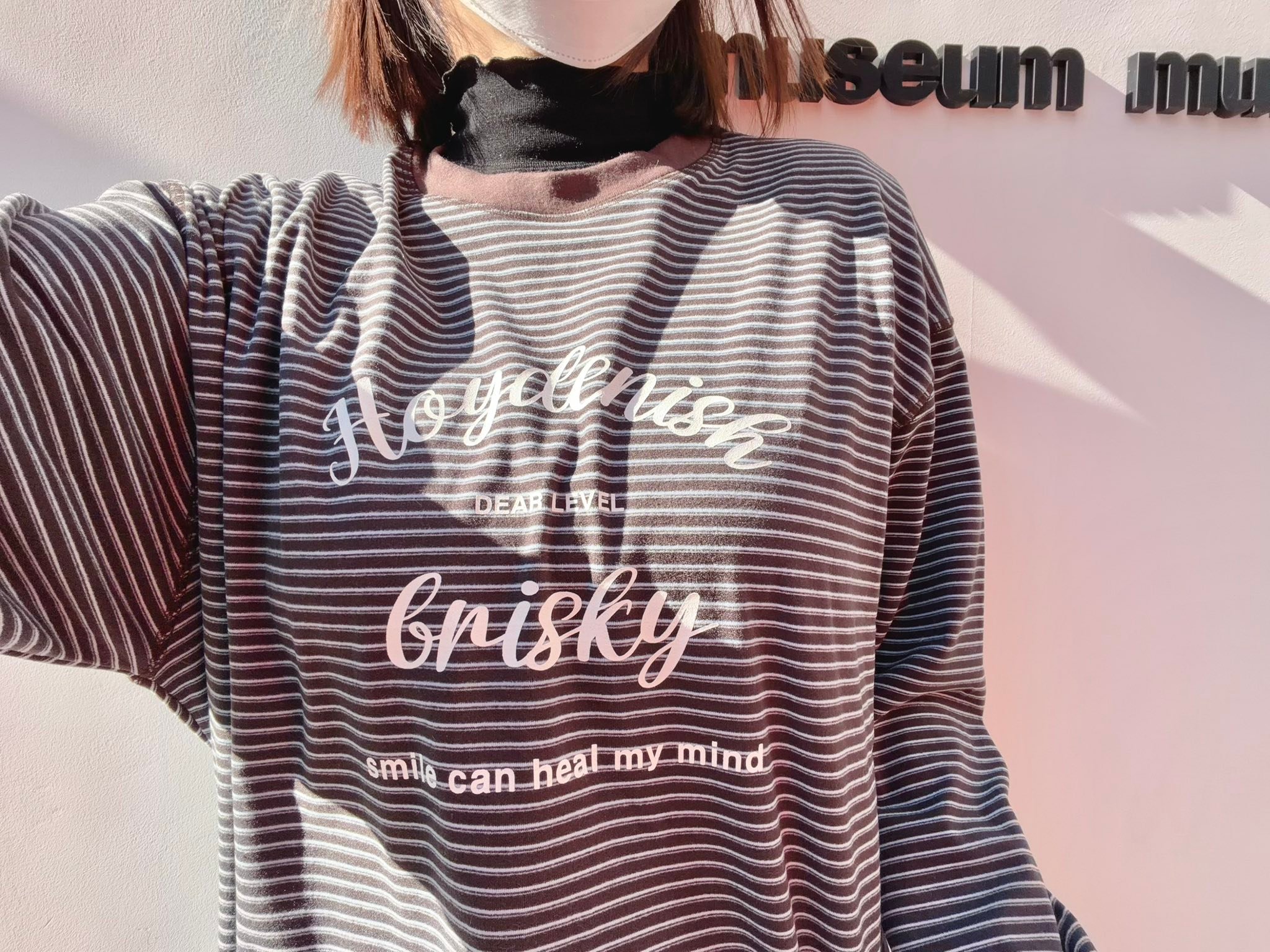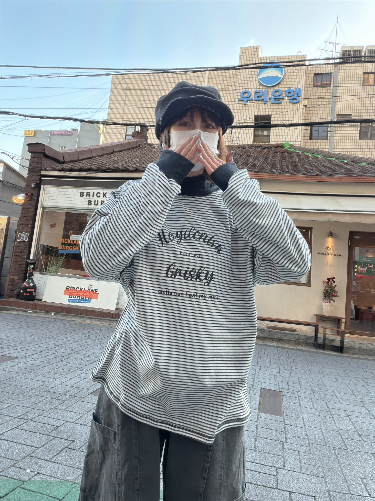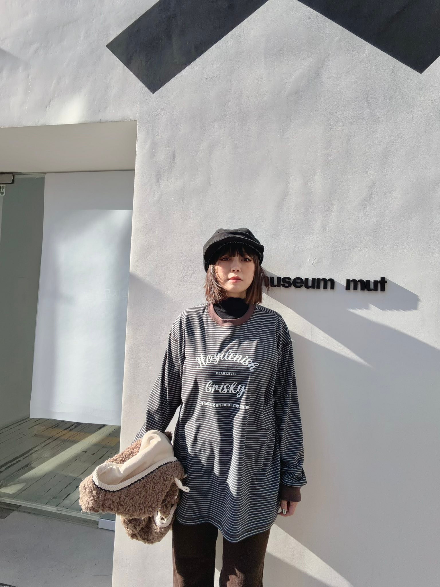 韓國連線 BK35 超舒服細條紋英文長上衣