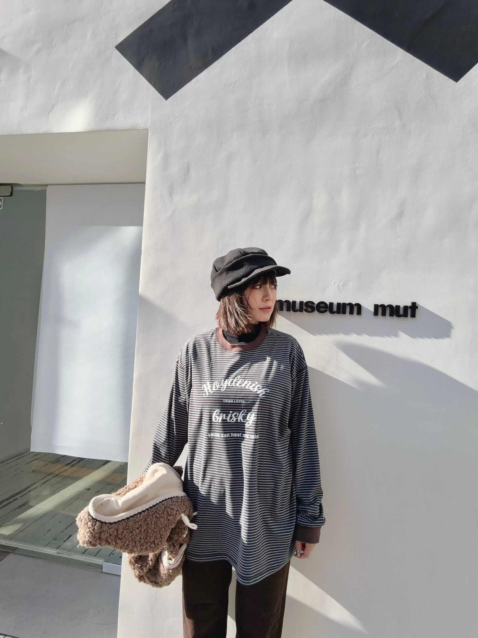 • 韓國連線 BK50 貓咪拚條文袖超舒服T NT.$799